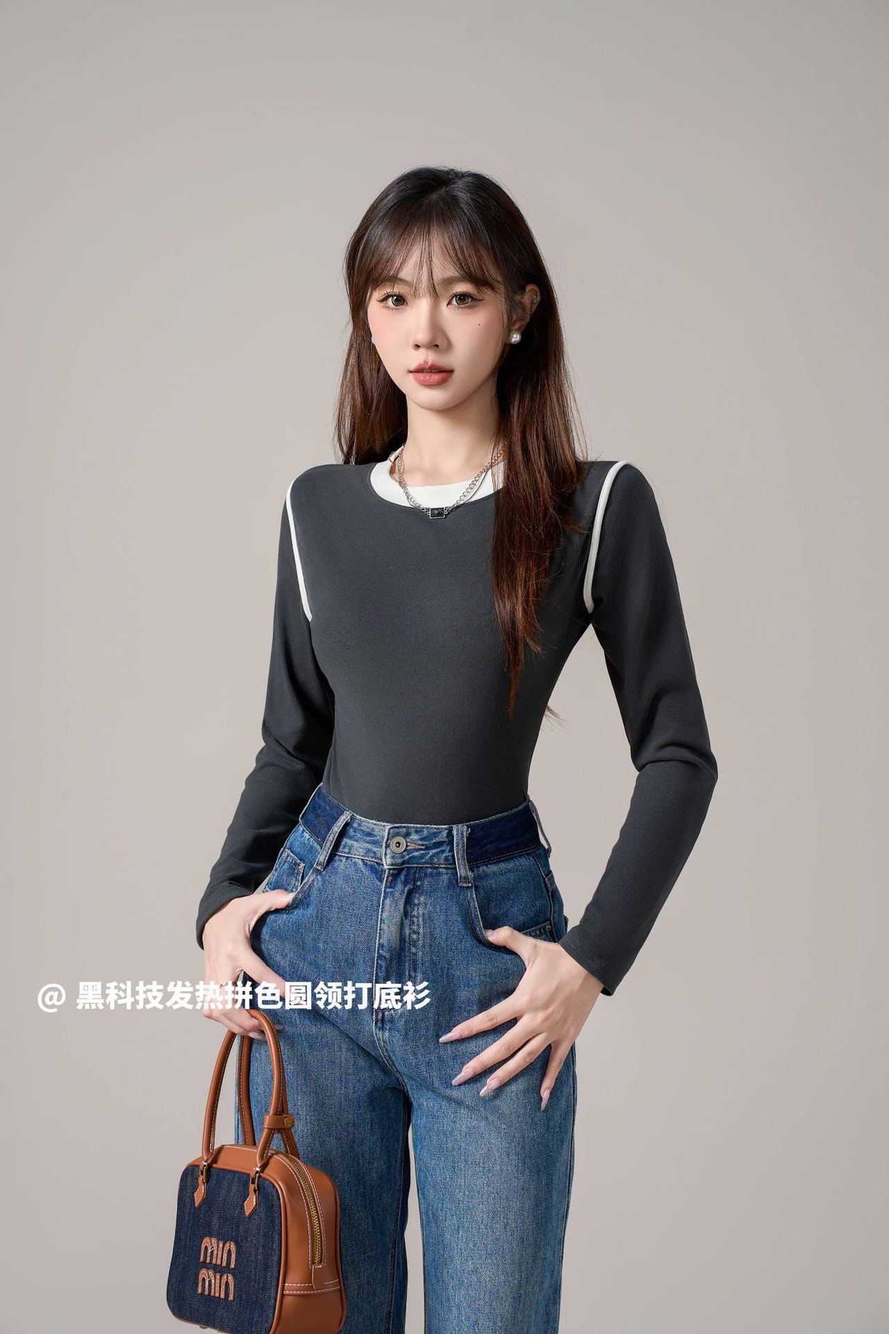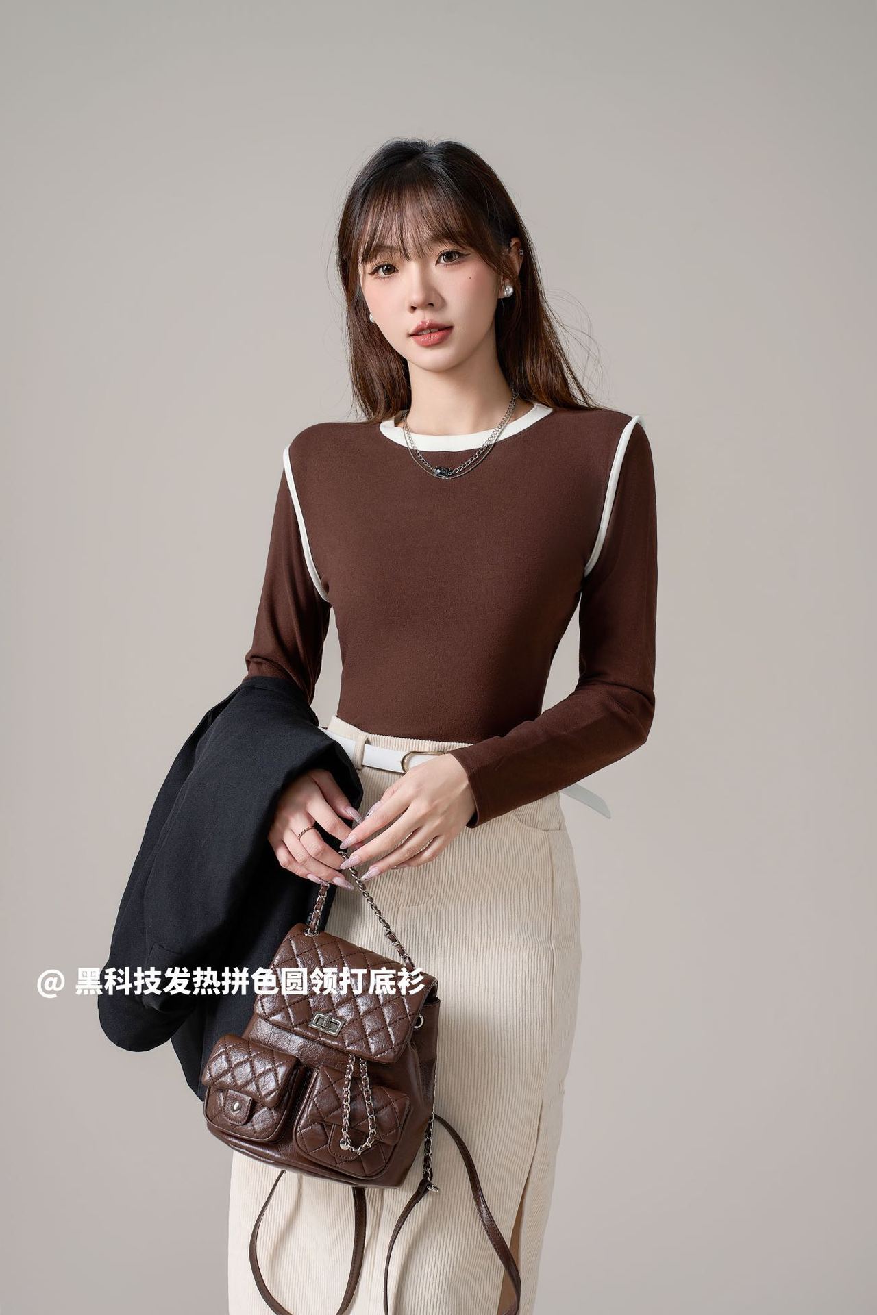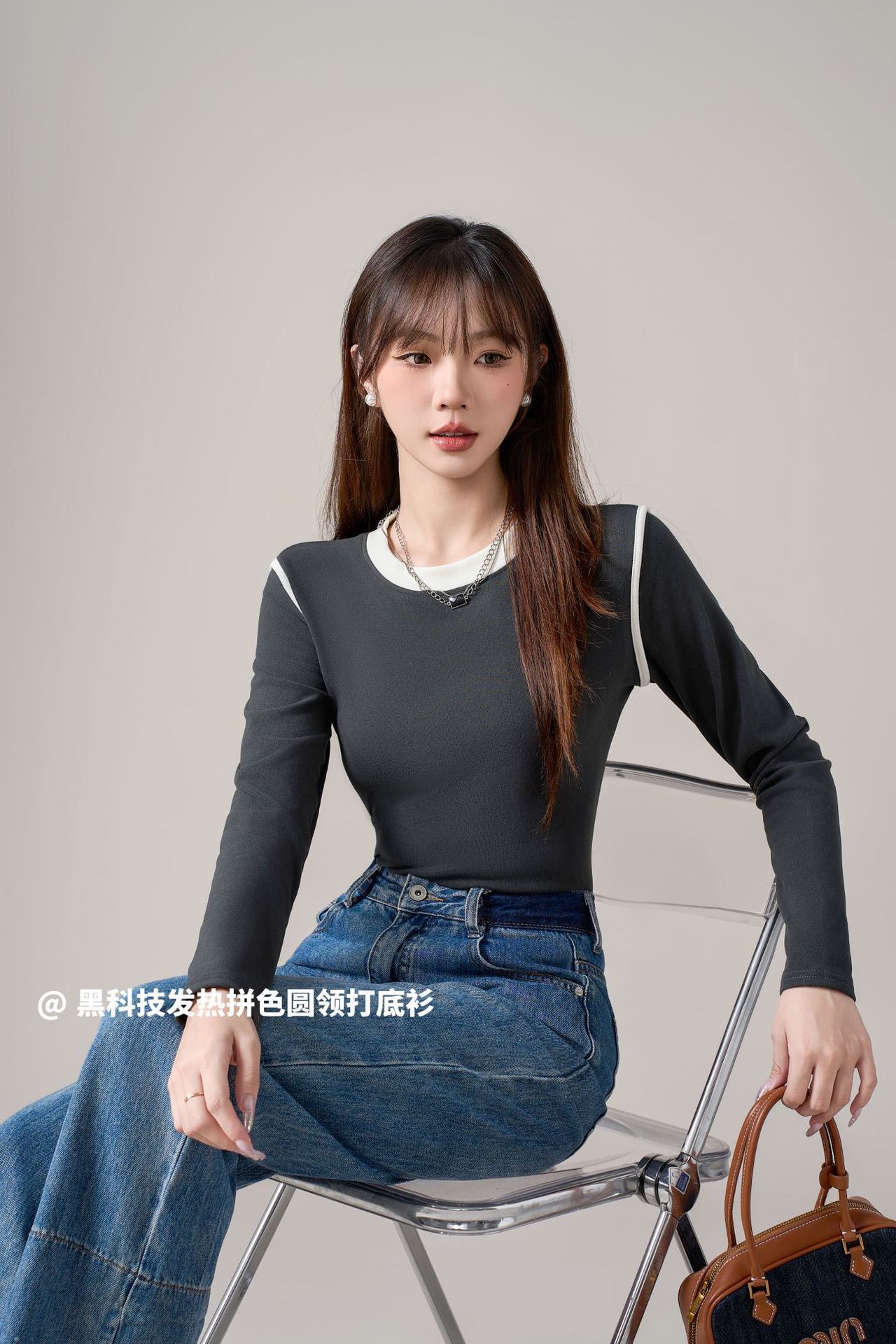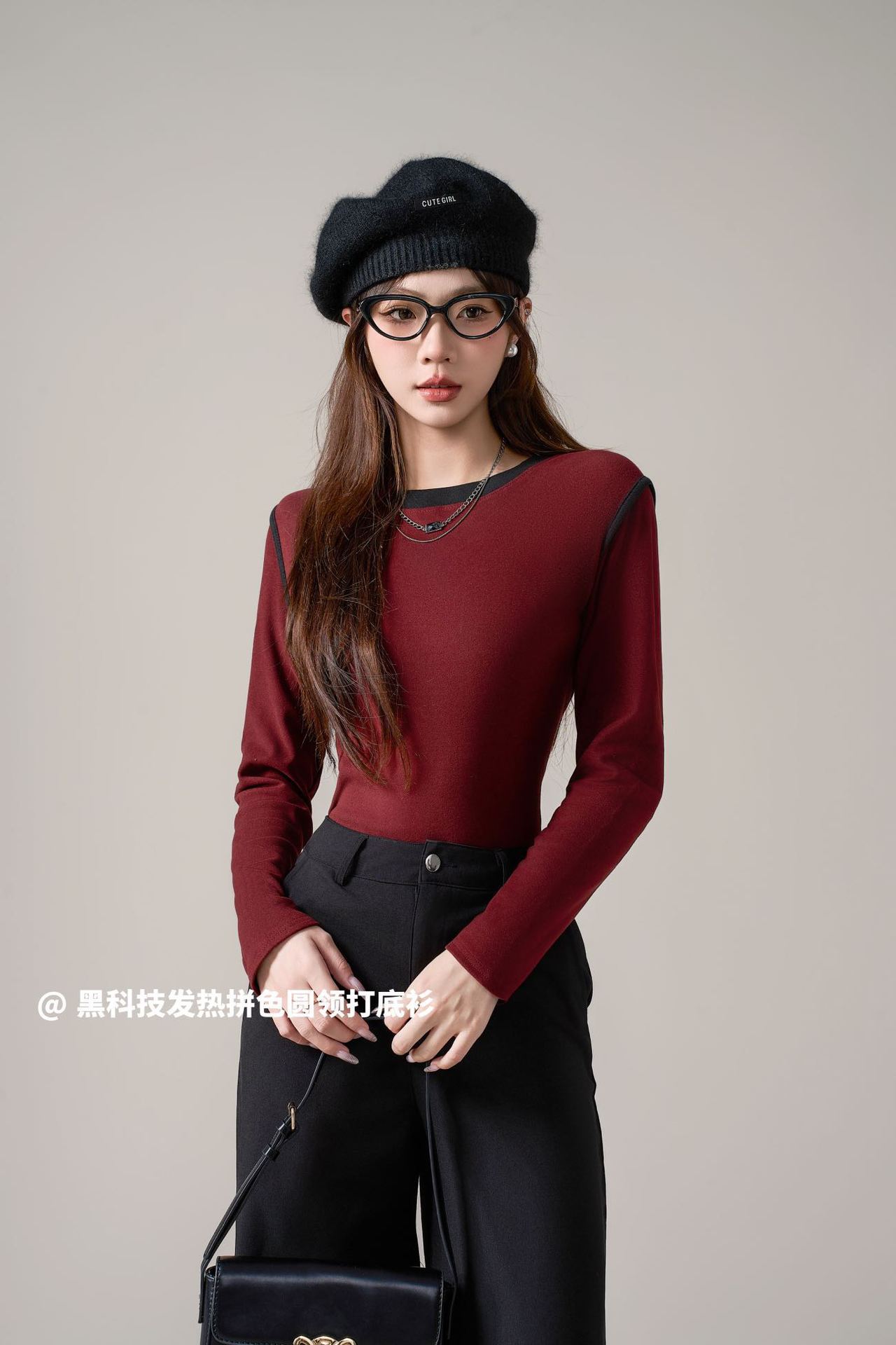 미국 복고풍 색상 일치하는 어깨 긴팔 티셔츠 여성의 봄과 가을 샌딩 디자인 센스 니치베이스 셔츠 내부 탑스토어 가기