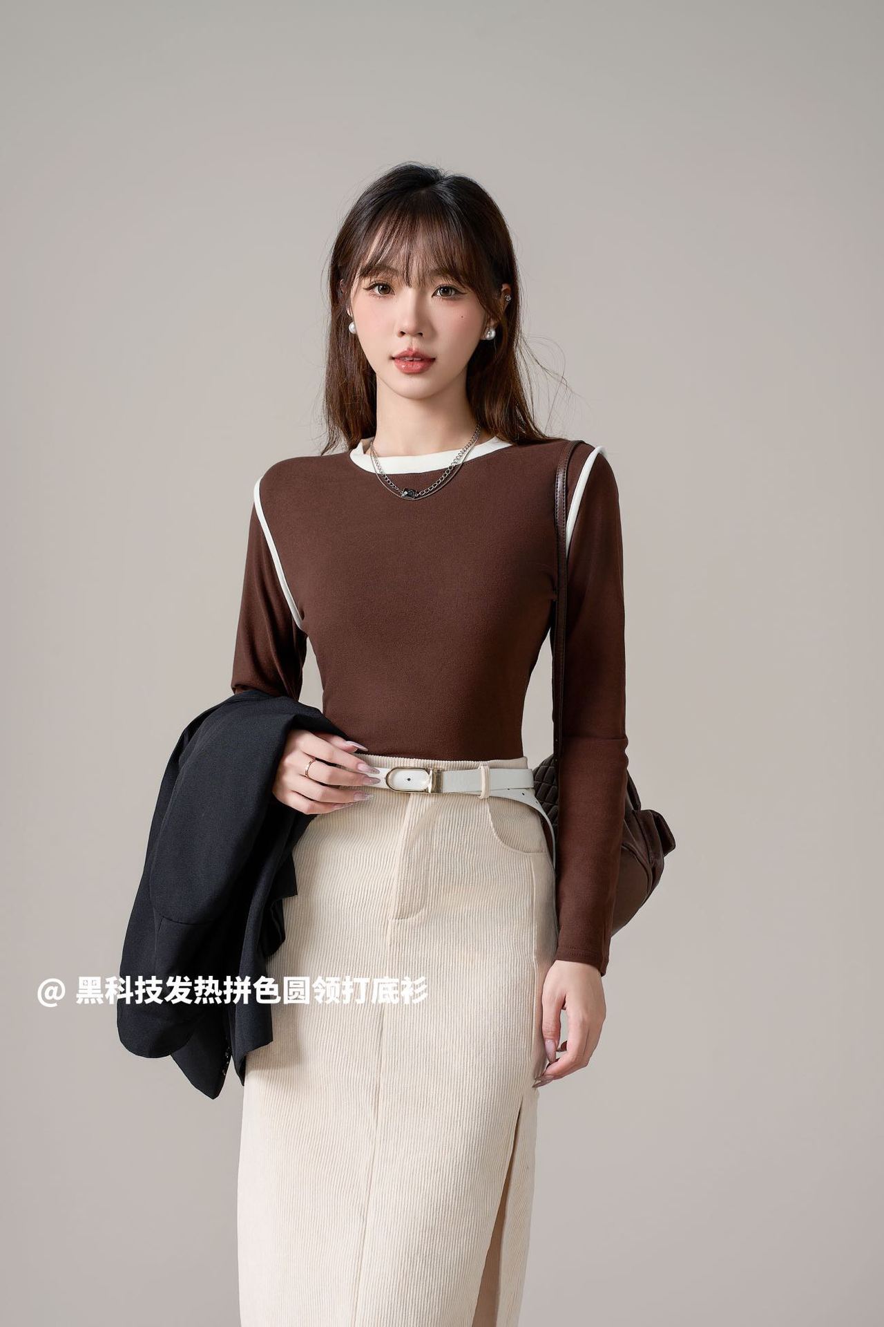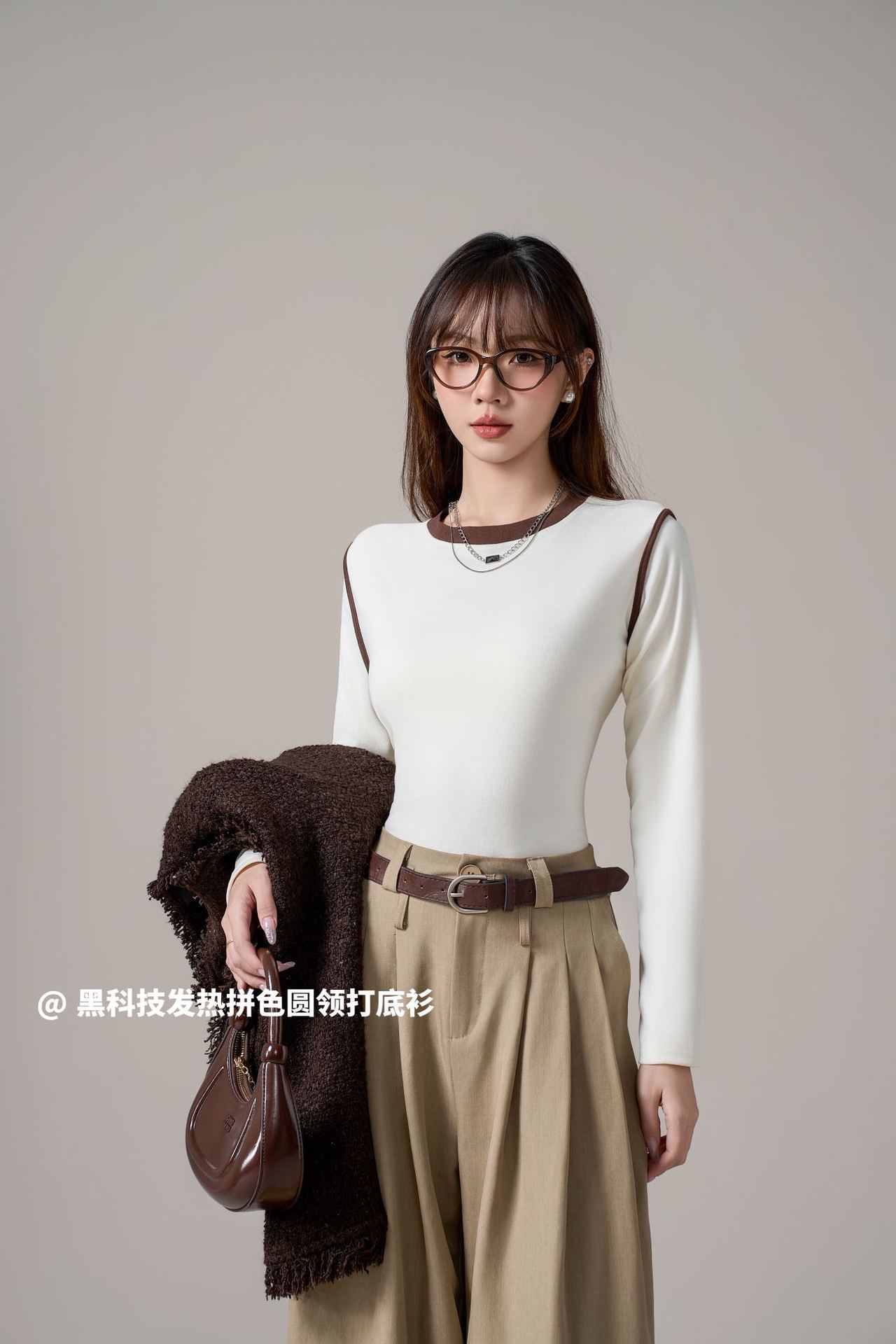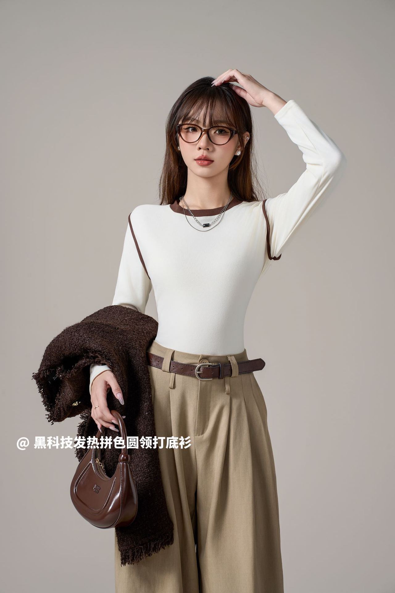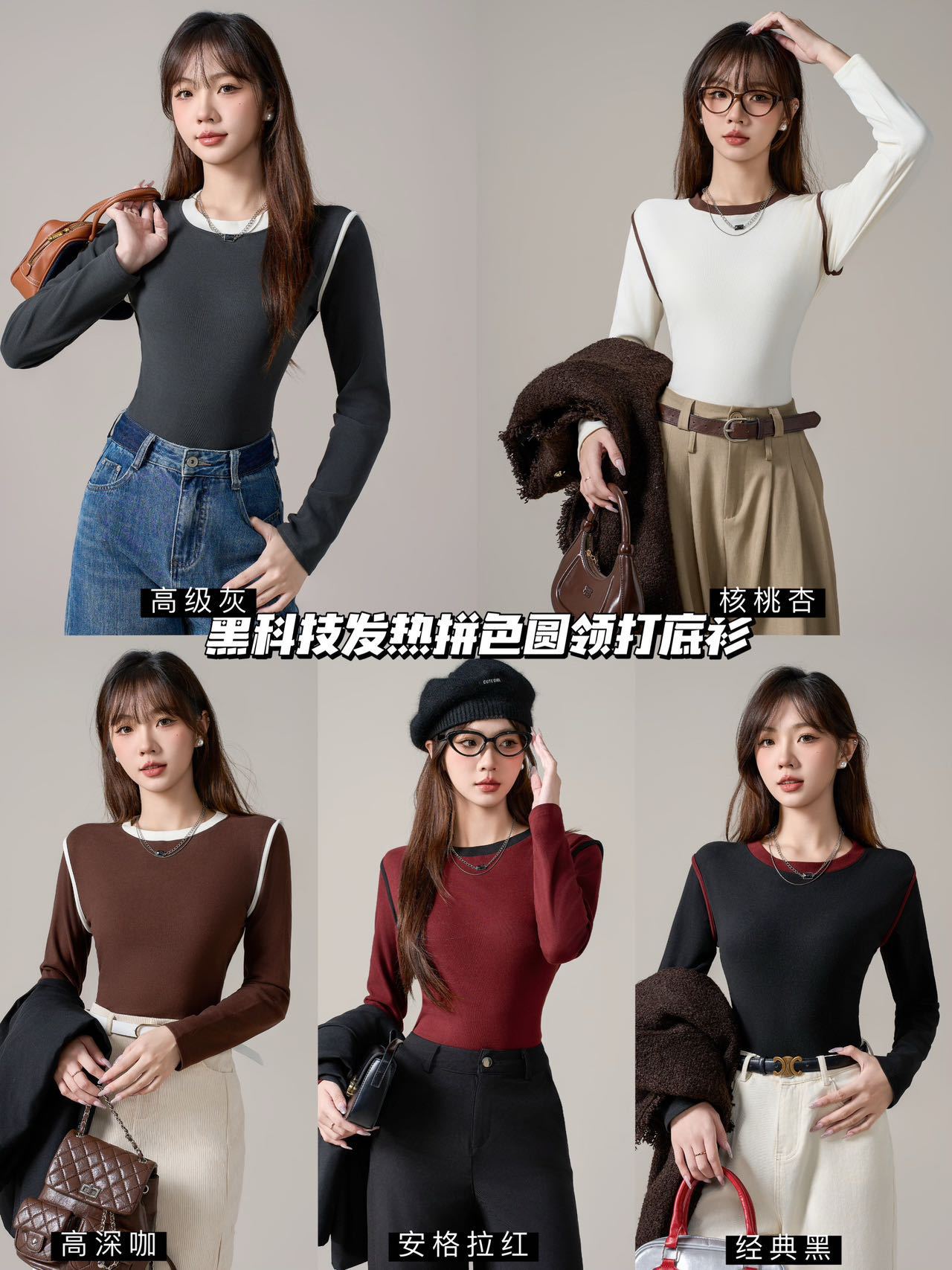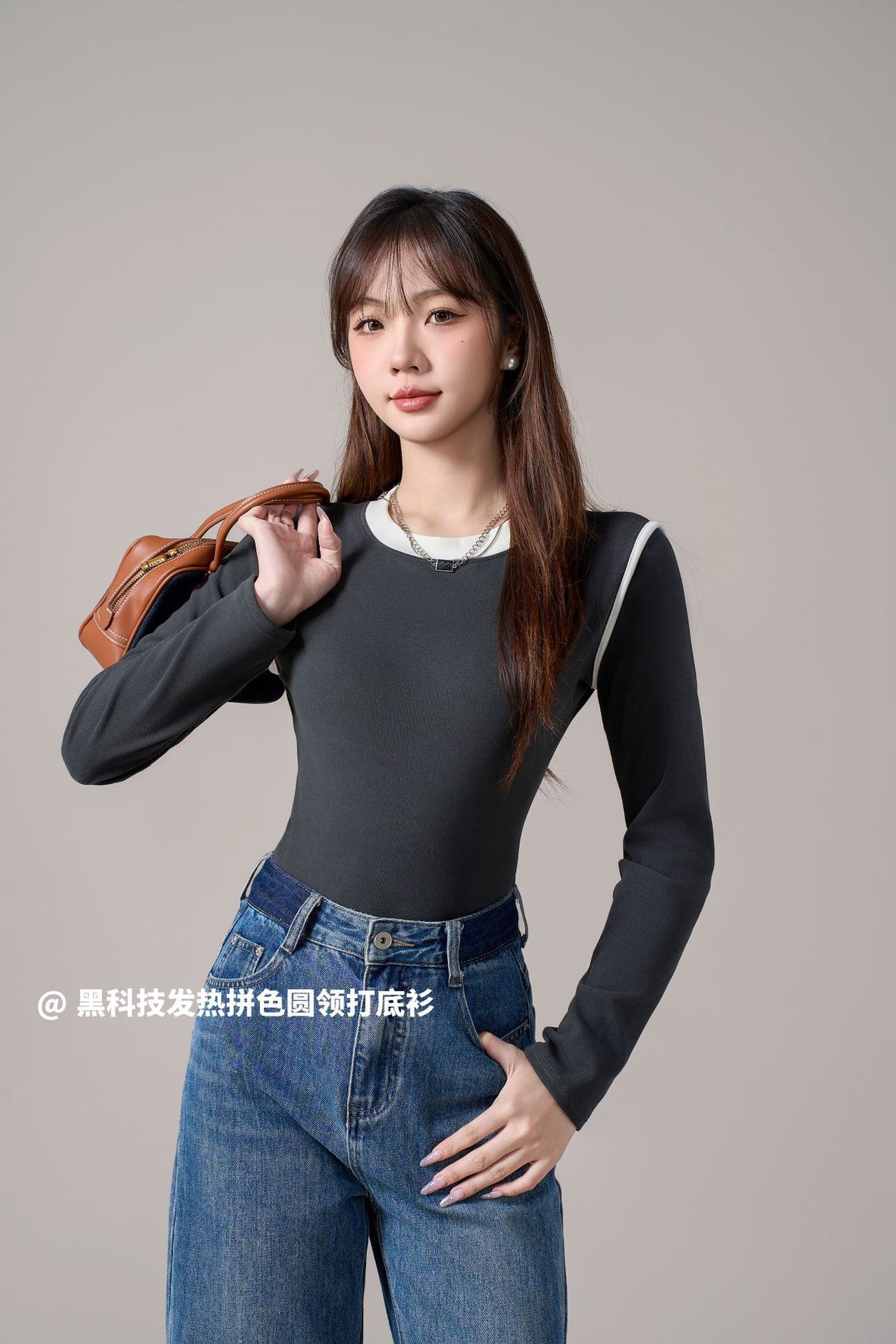 미국 복고풍 색상 일치하는 어깨 긴팔 티셔츠 여성의 봄과 가을 샌딩 디자인 센스 니치베이스 셔츠 내부 탑스토어 가기