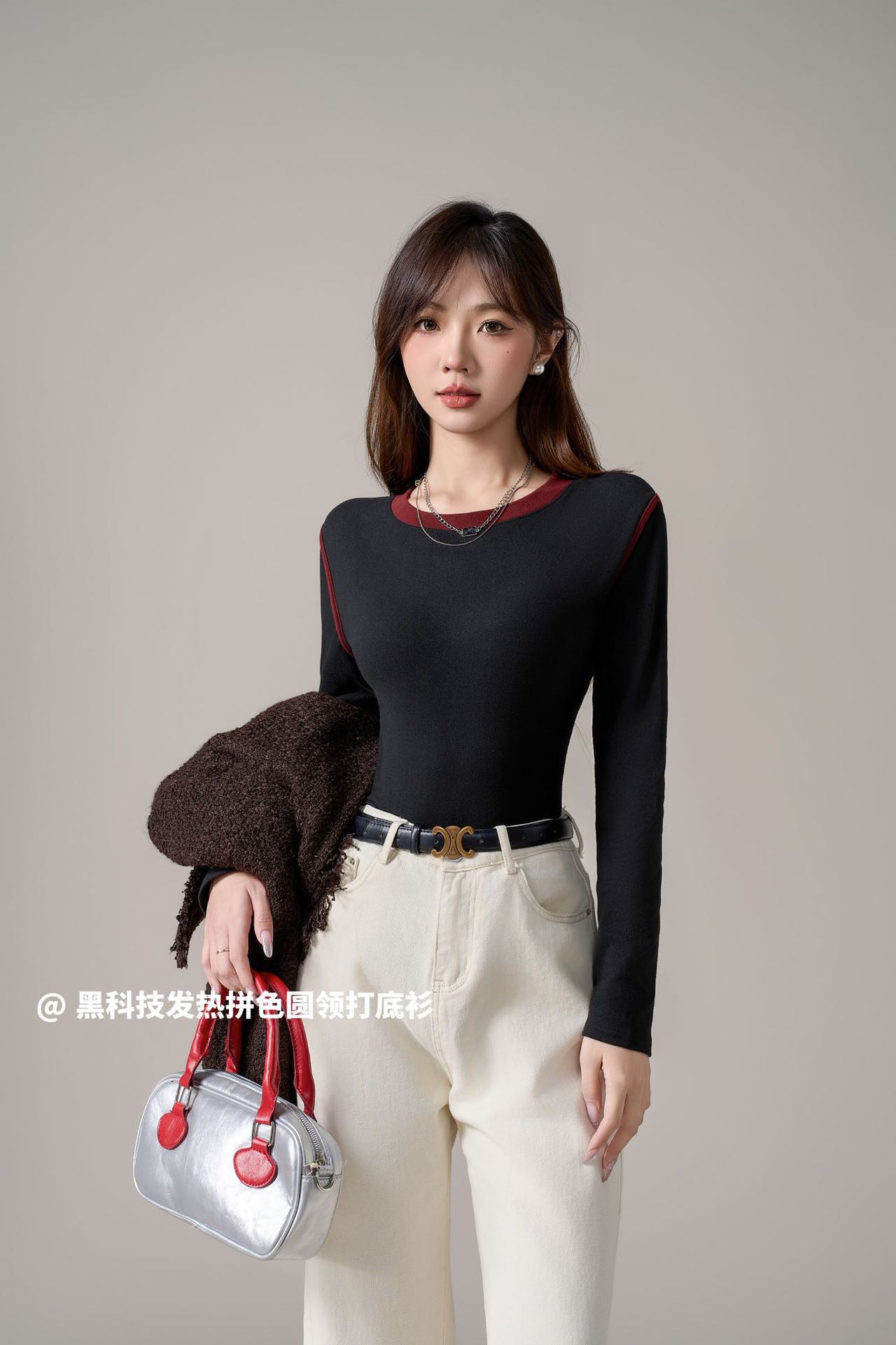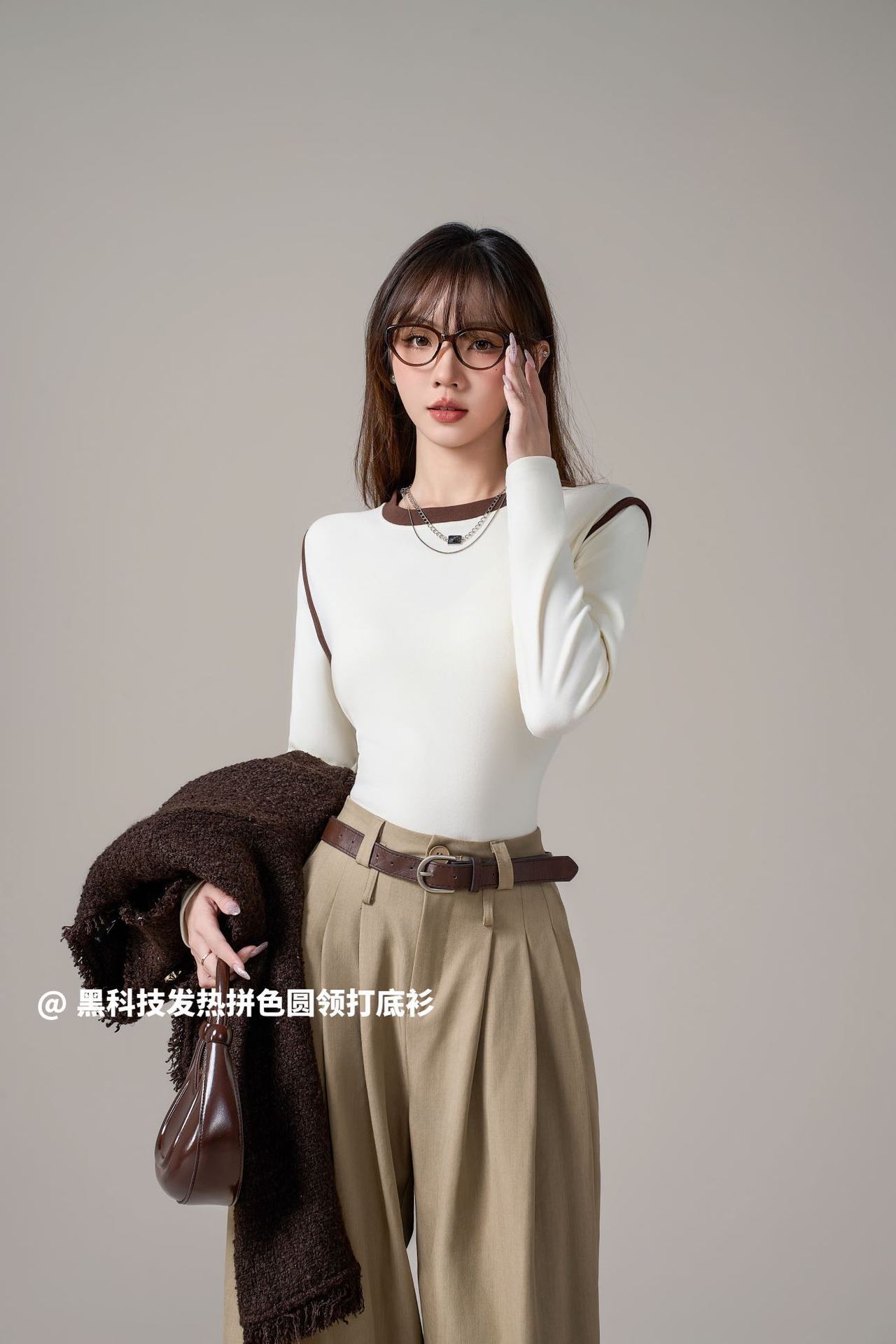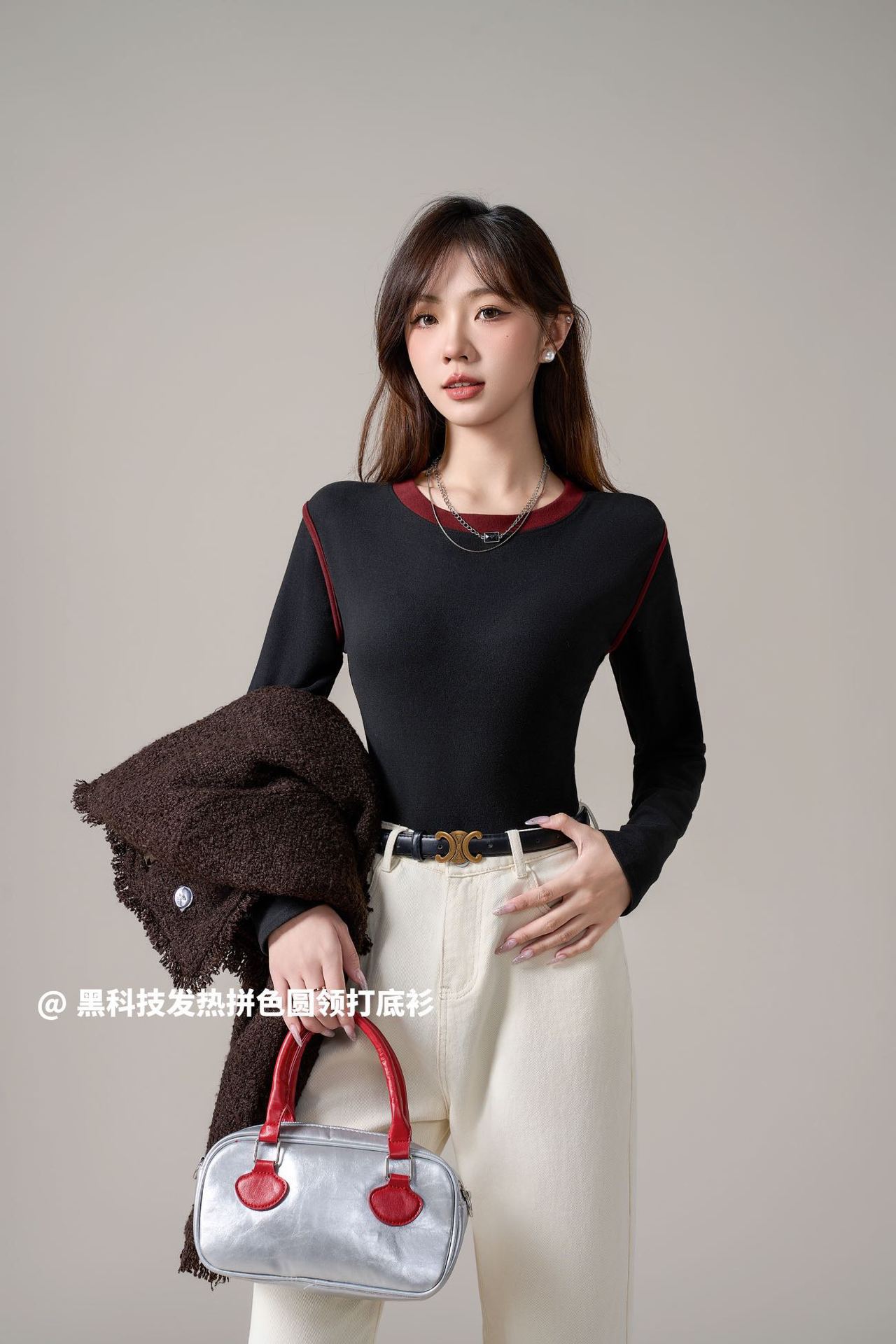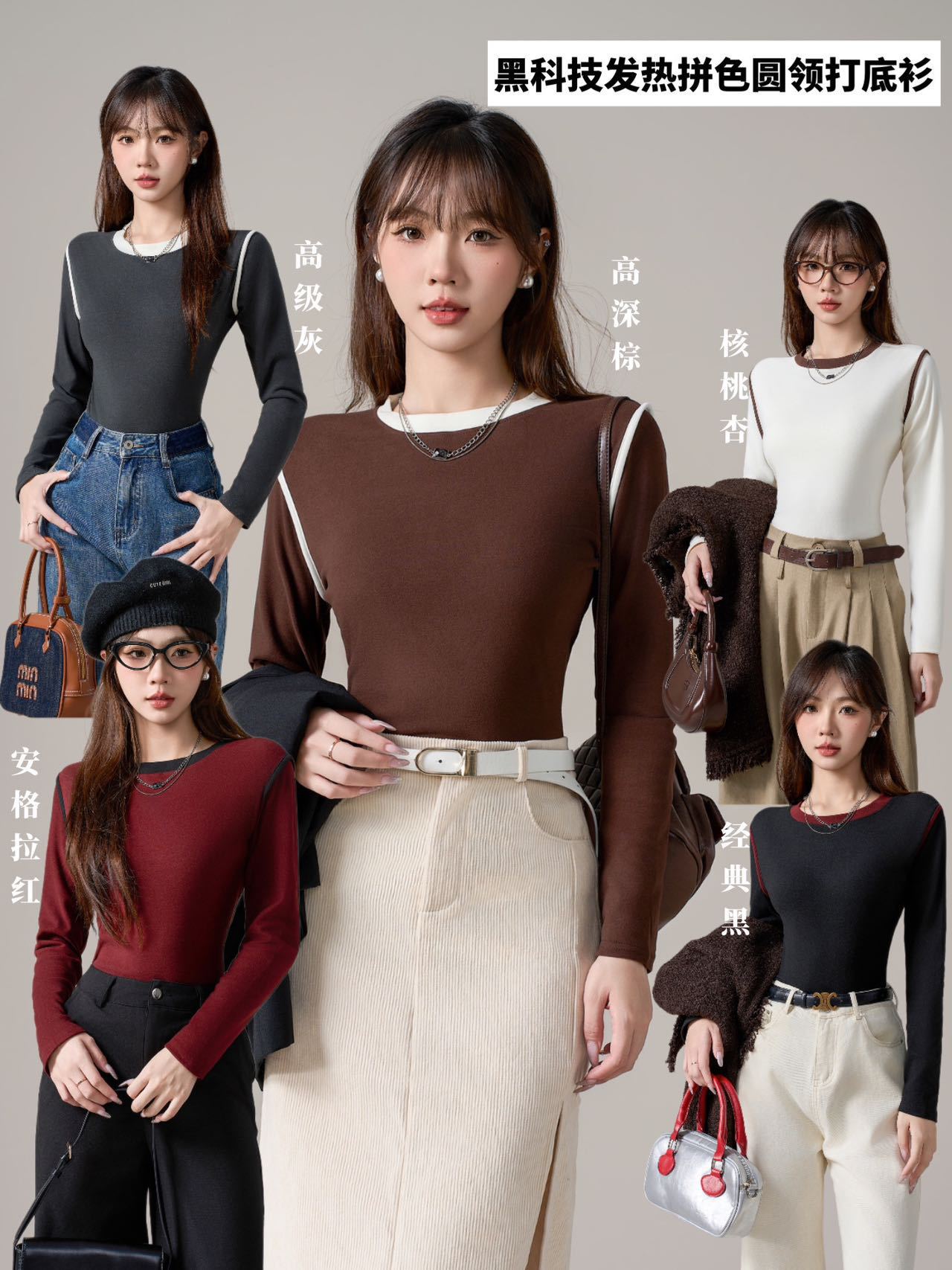 미국 복고풍 색상 일치하는 어깨 긴팔 티셔츠 여성의 봄과 가을 샌딩 디자인 센스 니치베이스 셔츠 내부 탑스토어 가기