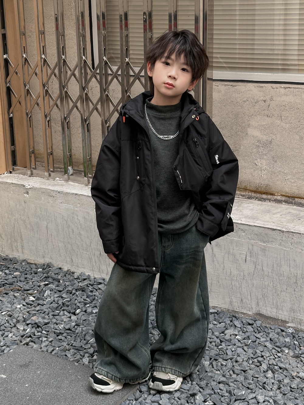 Xiner 2024 Winter New Boys 'Functional Charge Clothes 면화 패딩 재킷 코트 야외 3 가지 방지 따뜻한 작업복 면화 패딩 의류 타이드