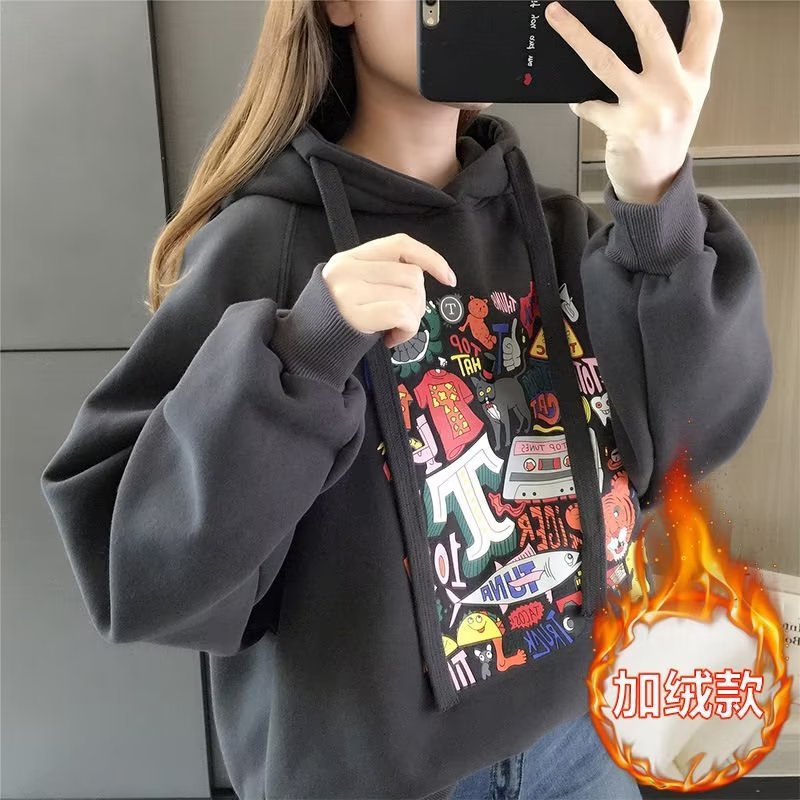 어린이 의류 여아 가을 의류 땀 중 · 대형 어린이 가을과 겨울 서양식 느슨한 땀 소녀들의 가을과 겨울 기모 탑스토어 가기
