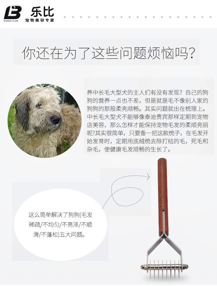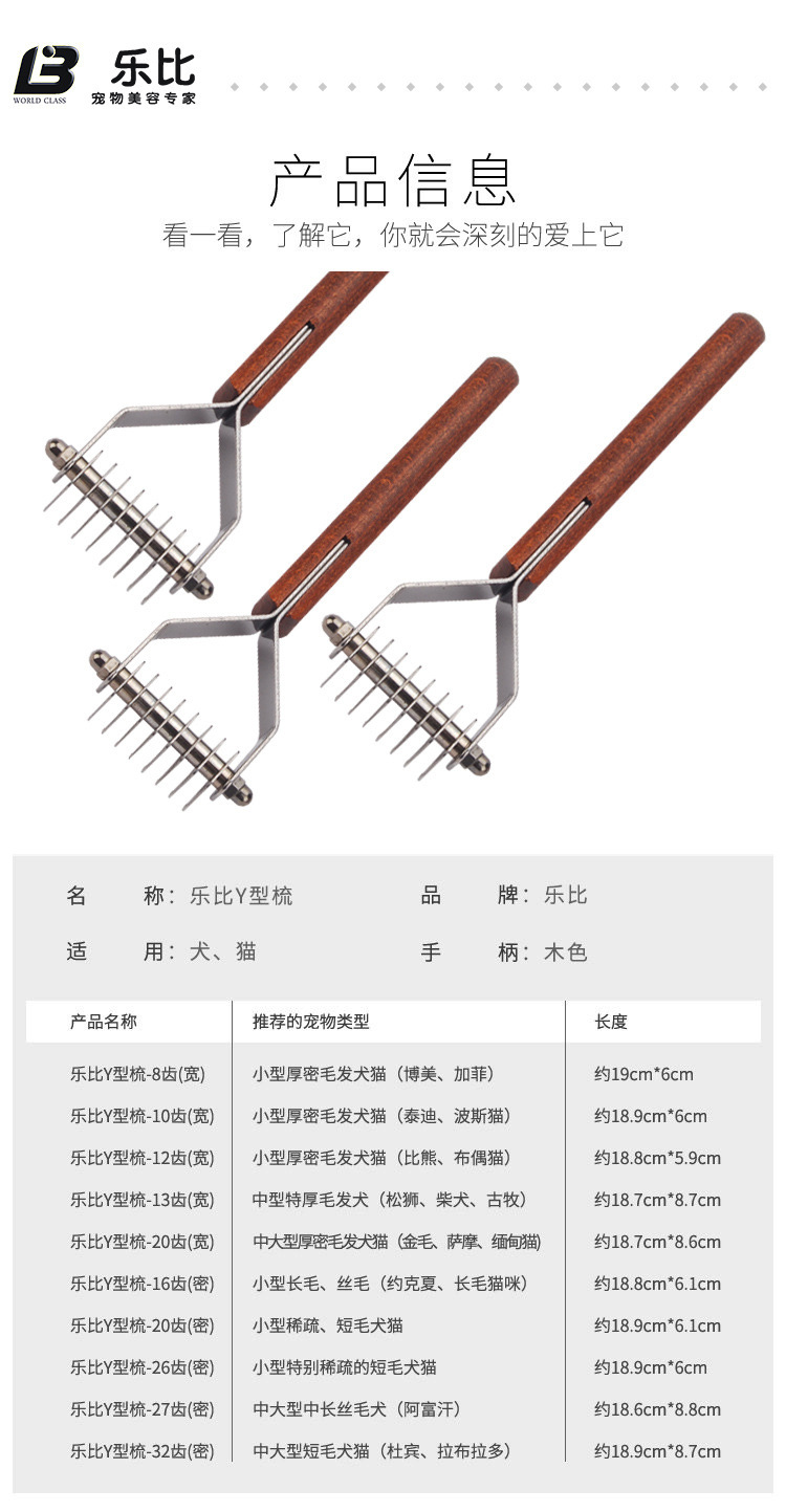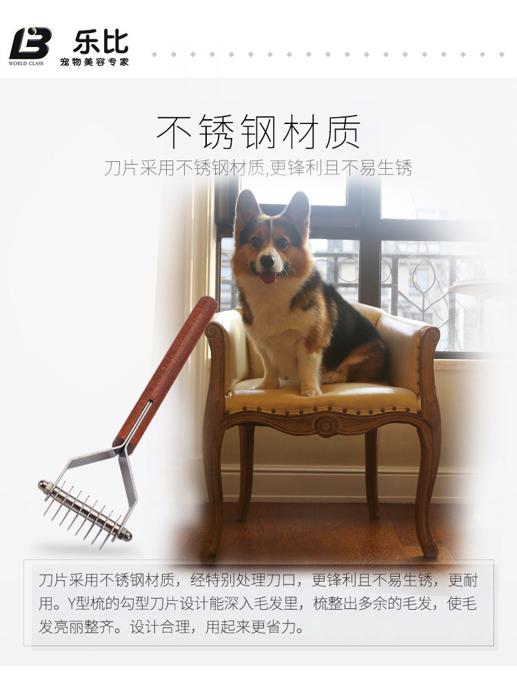 Lebi Pet Open-knot Comb Y 자형 하단 제거 빗 개 브러시 면도 칼로 긴 머리 고양이 향기 유물스토어 가기