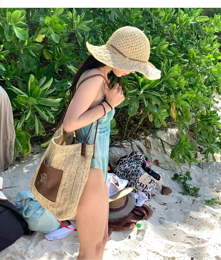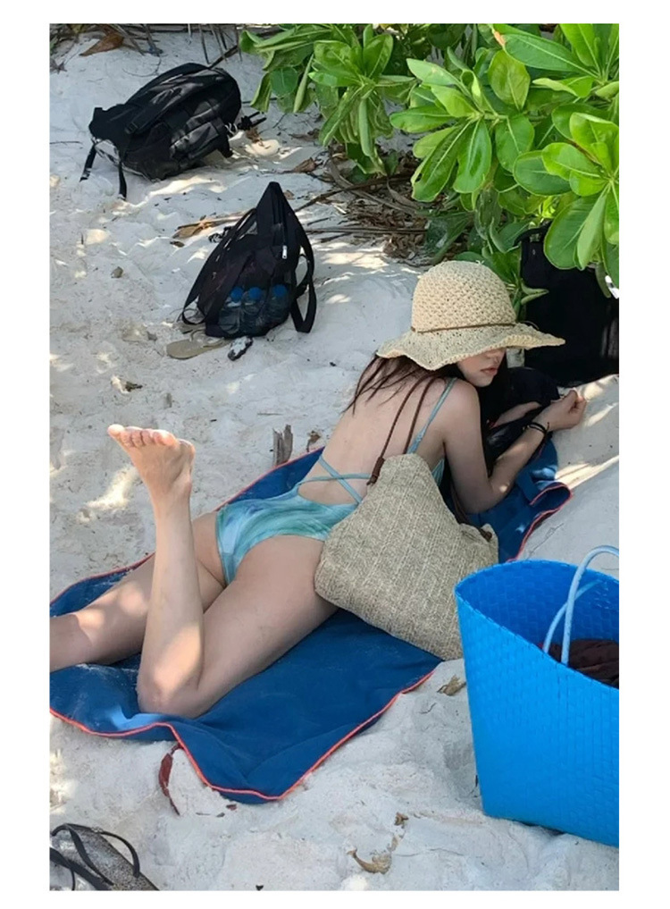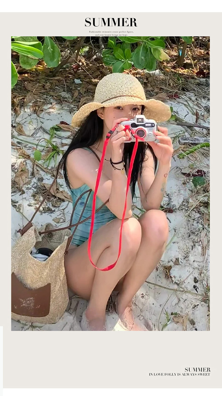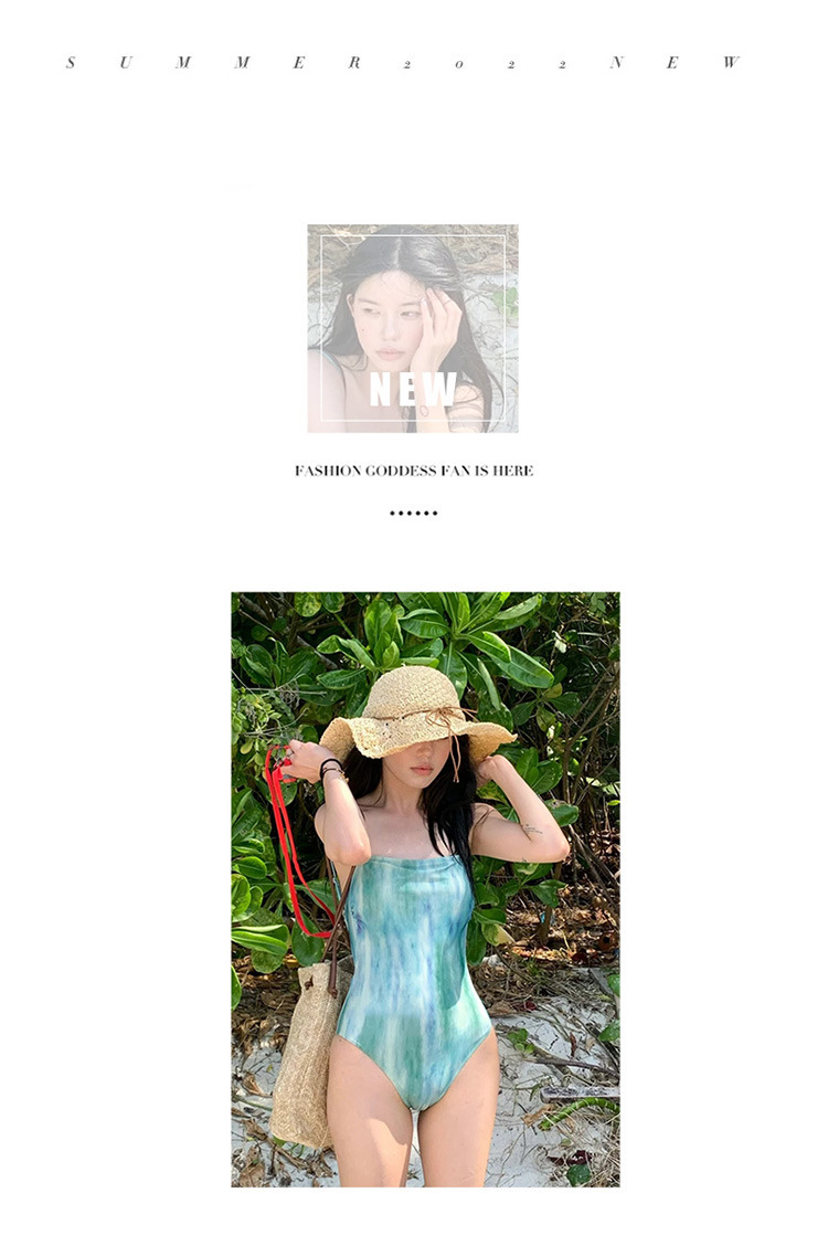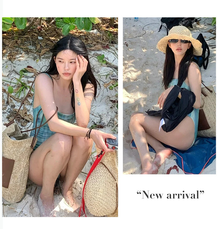 한국식 유행 여성 원피스 얇은 어깨 스트랩 수영복 염색 컬러 블록 고급 라이트 럭셔리 인터넷 트렌디 비치 온천 비치 휴가