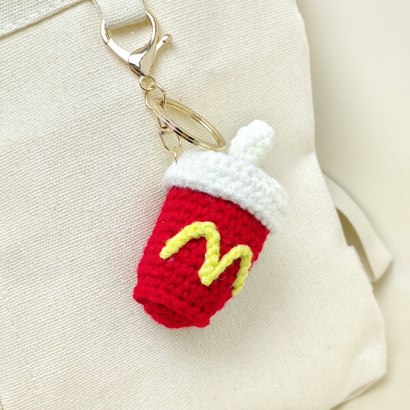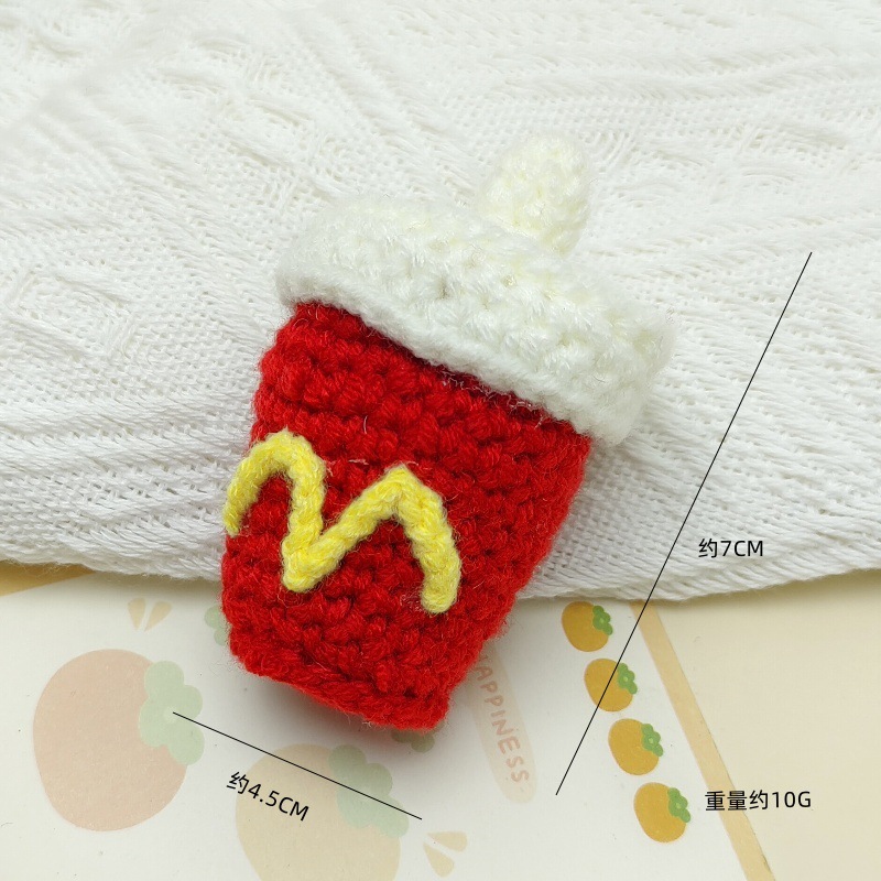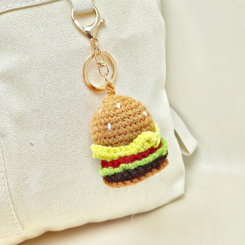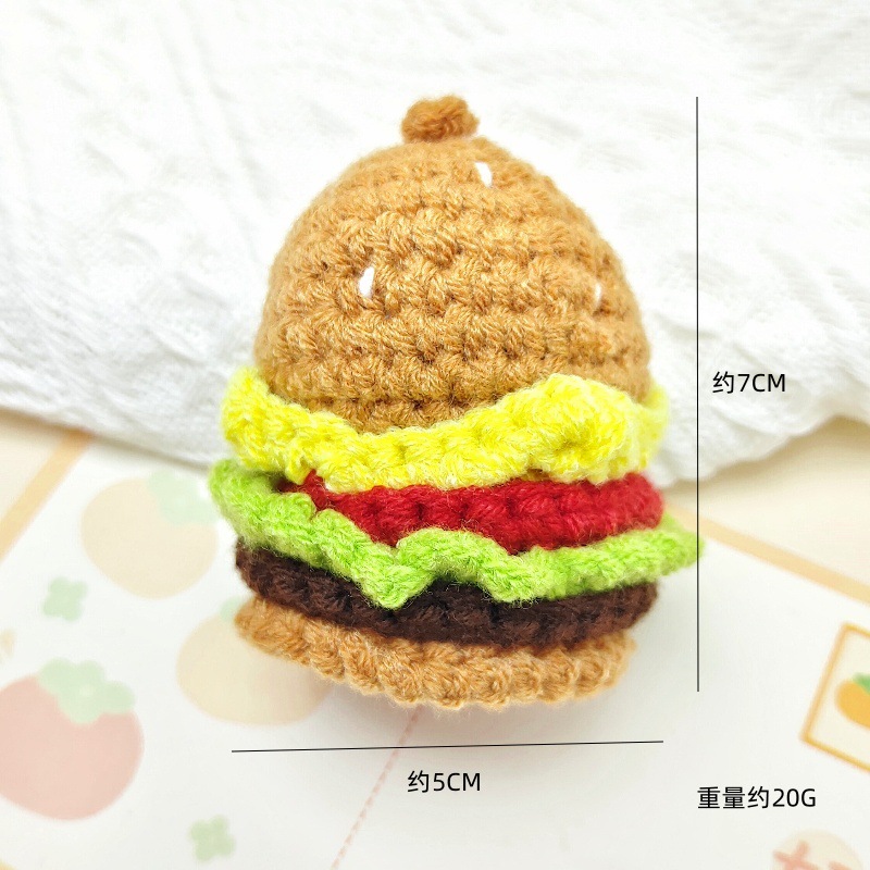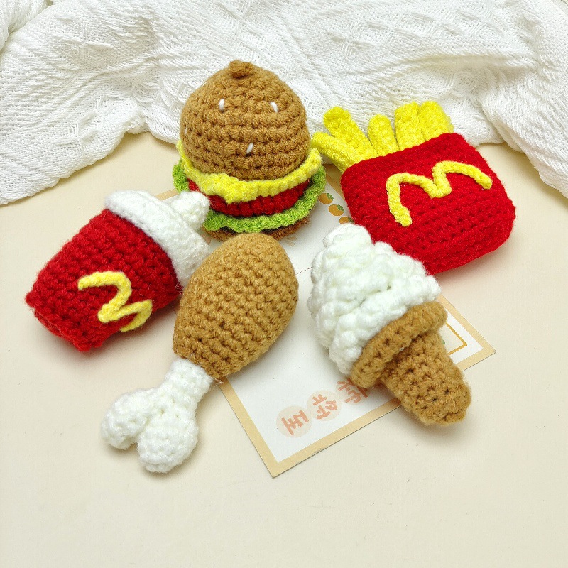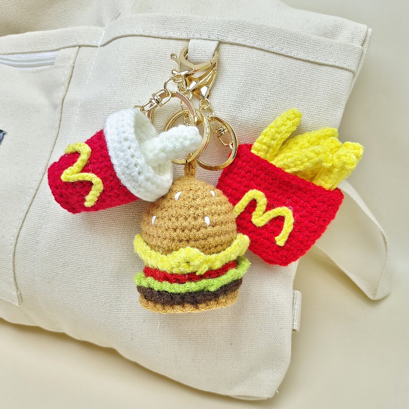 창의적인 재미 수제 크로 셰 뜨개질 햄버거 프라이 아이스크림 프라이 콜라 키 체인 펜던트 DIY 선물 액세서리