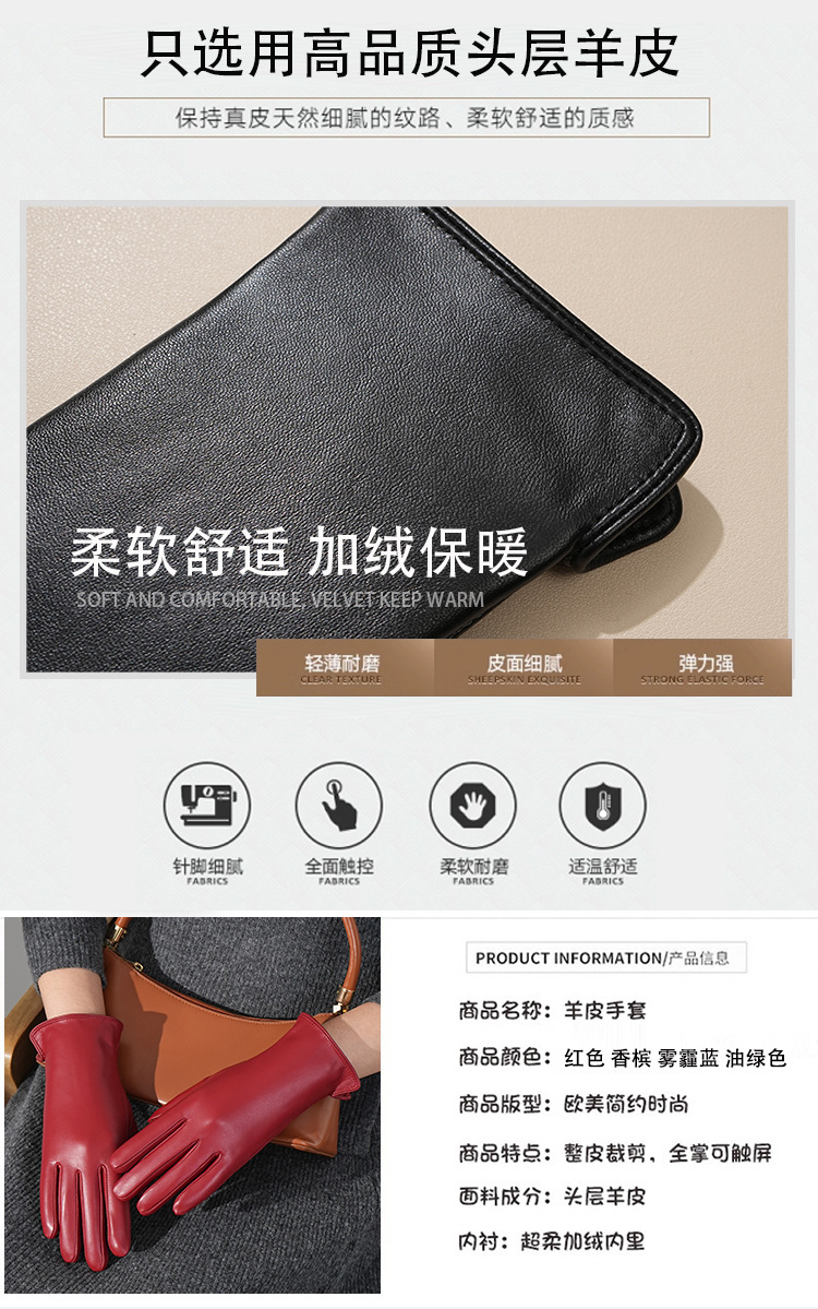 정품 가죽 장갑 여자의 겨울 기모 두꺼운 따뜻한 터치 스크린 운전 타고 패션 손 수리 방풍 머리 양가죽스토어 가기