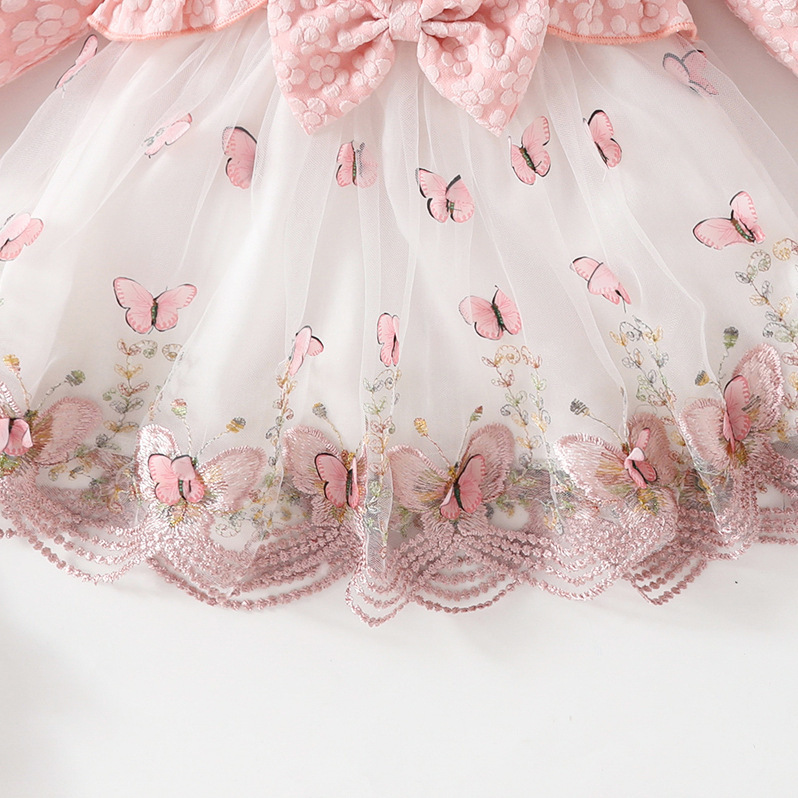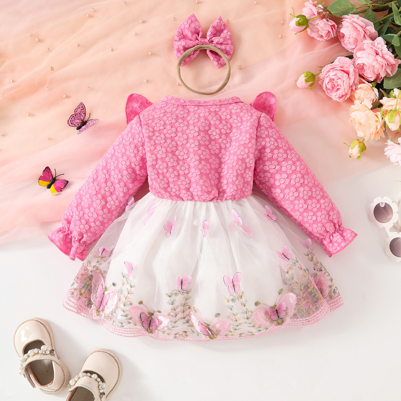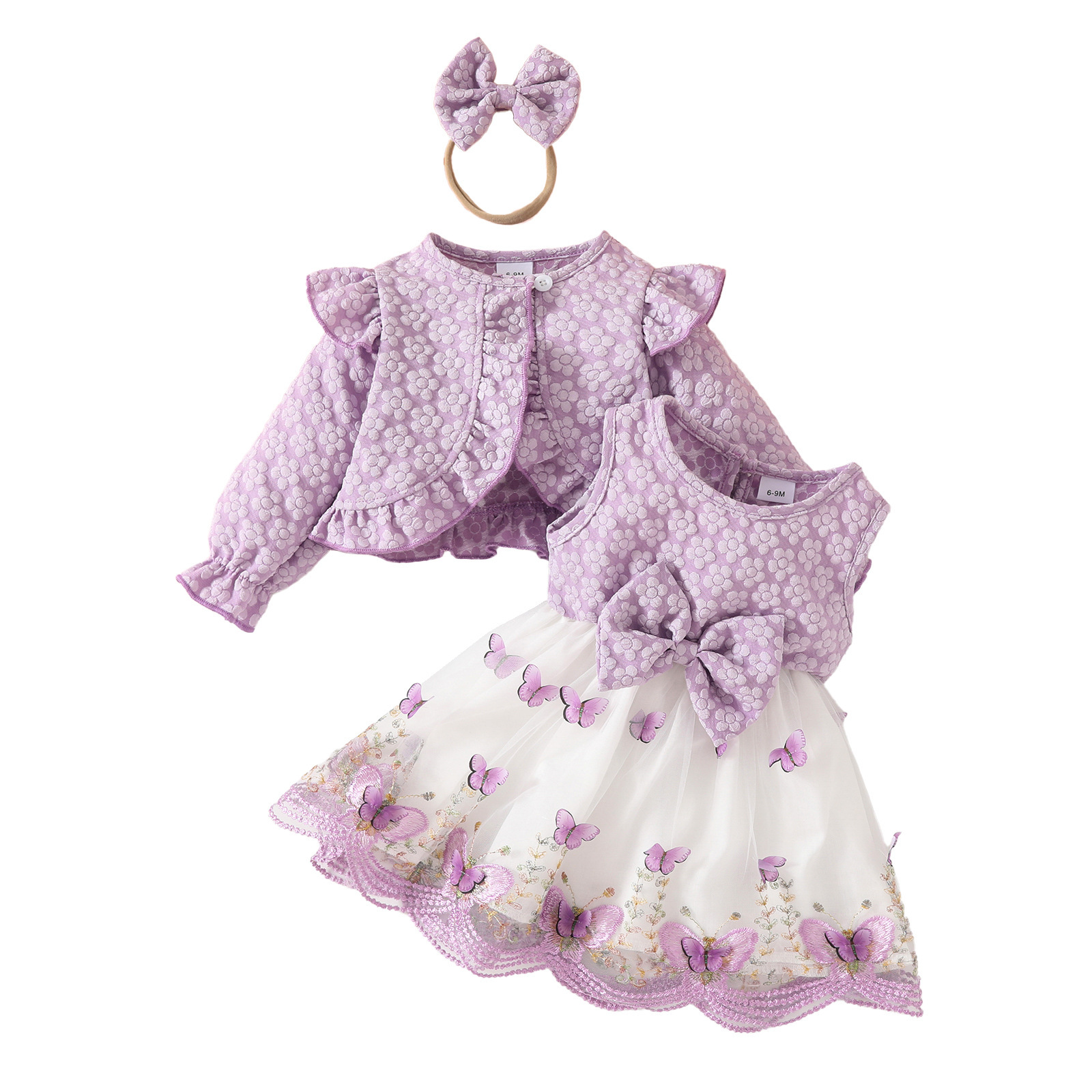 유아 소녀 달콤한 메쉬 세트 원피스 가을과 겨울 긴 소매 코트 나비 메쉬 조끼 원피스 헤어 밴드