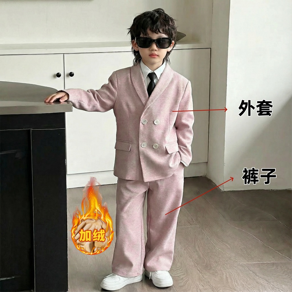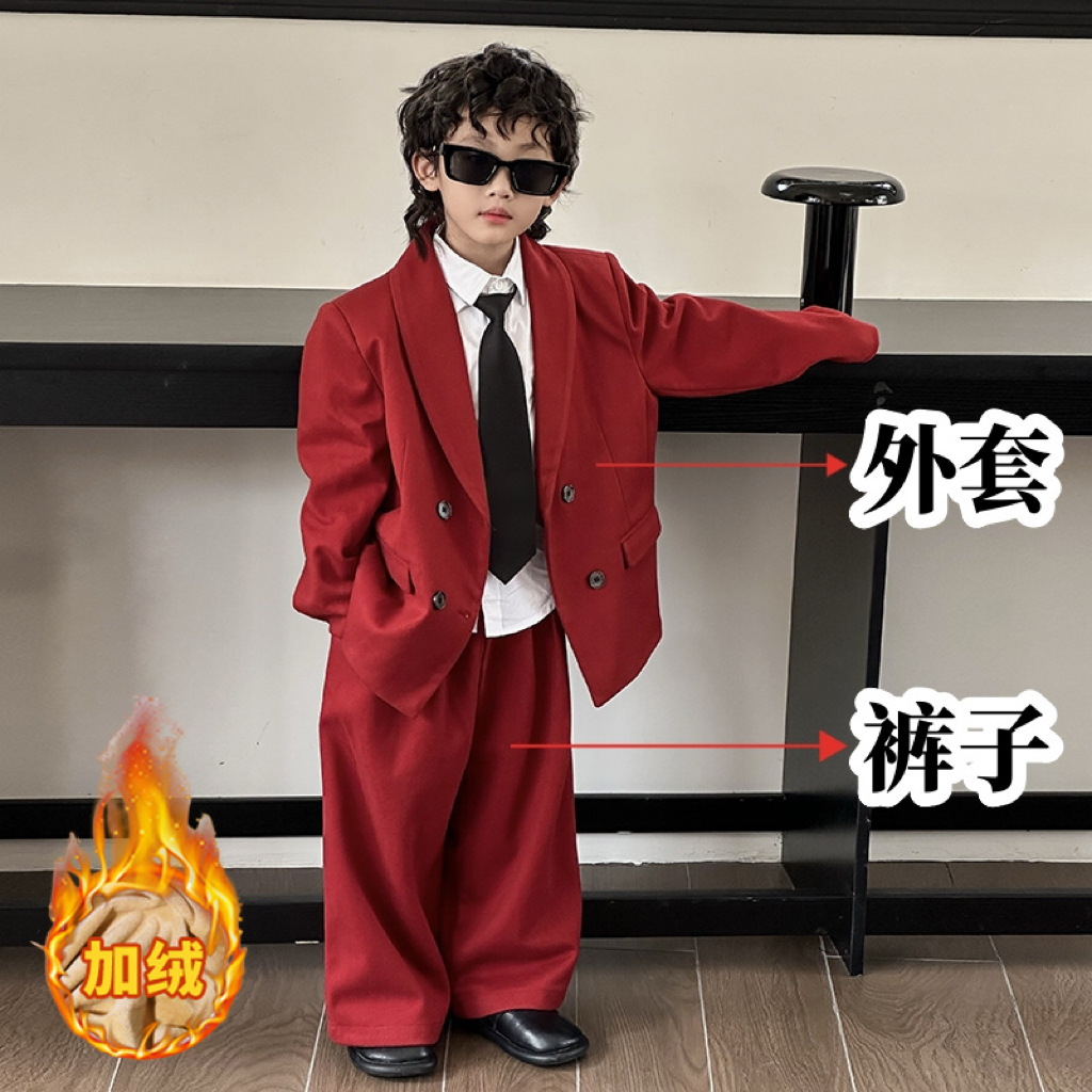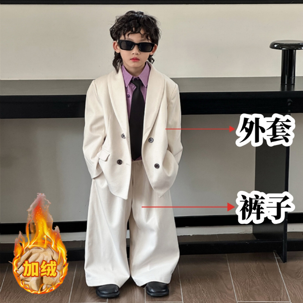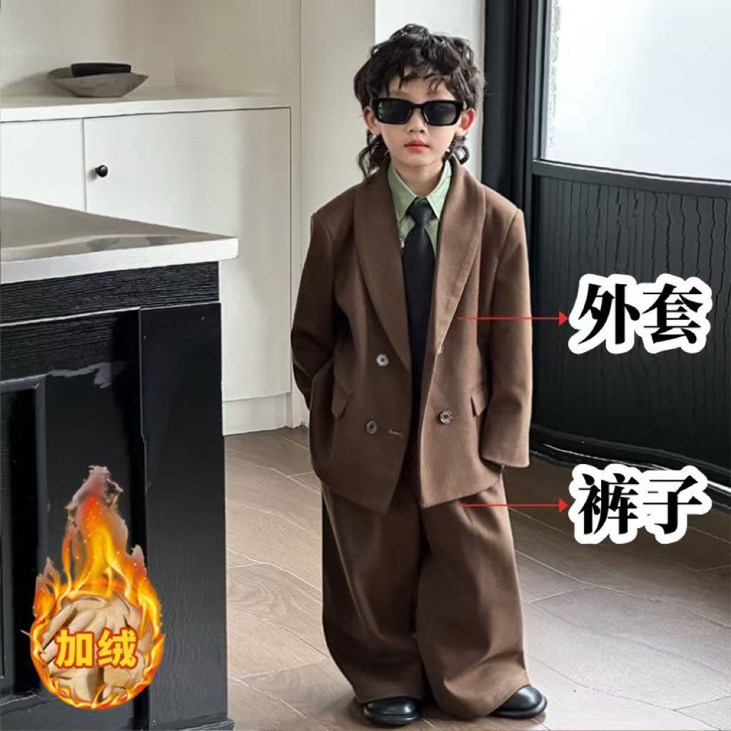 모직 남학생 세트 세트 러피 잘 생긴 모직 코트 어린이 세트 소년 캐주얼 플라워 소녀 호스트 의상스토어 가기