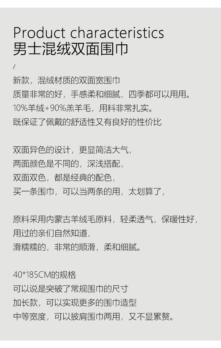 남성용 솔리드 컬러 양면 양모 스카프 가을 겨울 두꺼운 보온 혼합 모직 신상 비즈니스스토어 가기