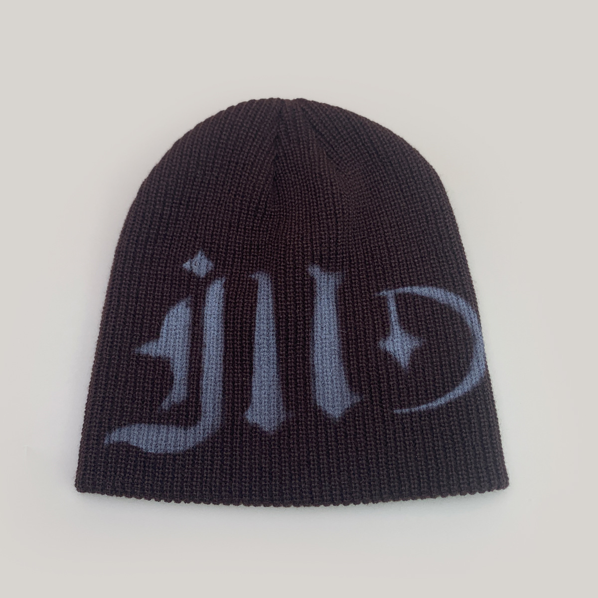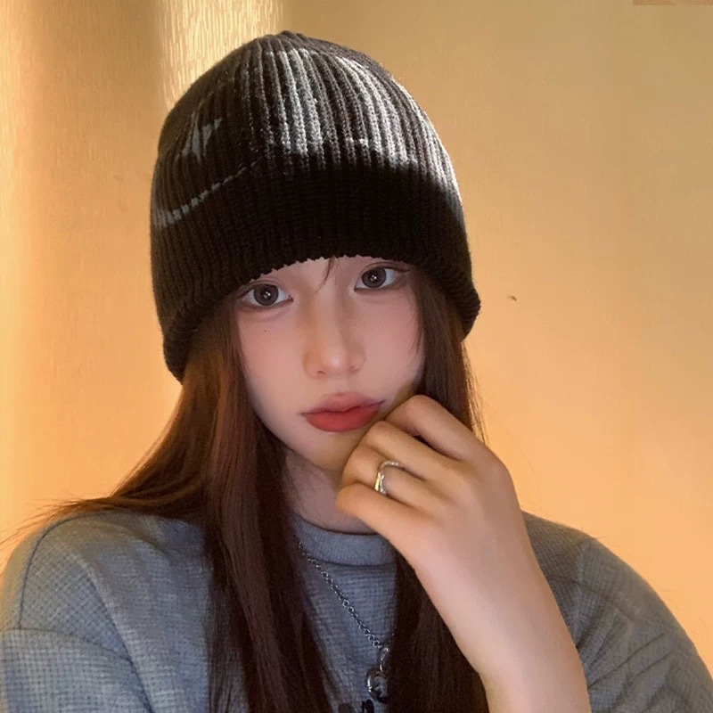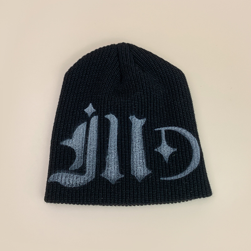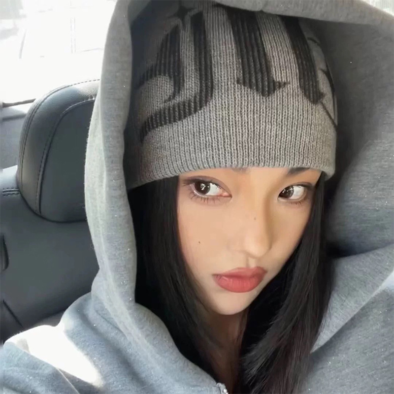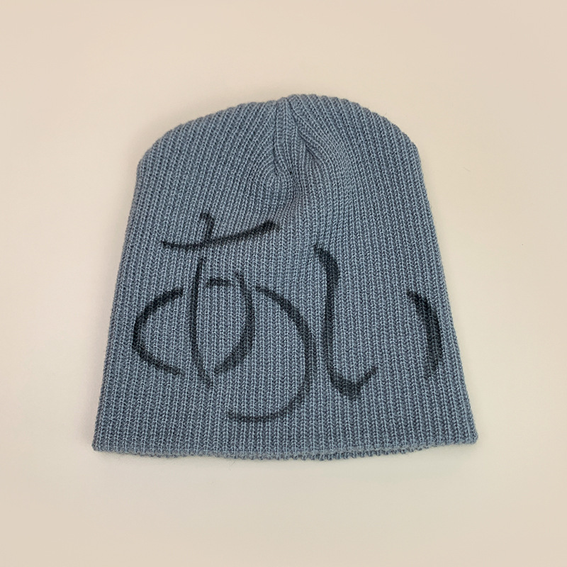 남성과 여성을위한 새로운 개인화 된 일본 산스크리트어 크로스 프린트 니트 모자 따뜻한 Y2K 거리 풀오버 모자 도매