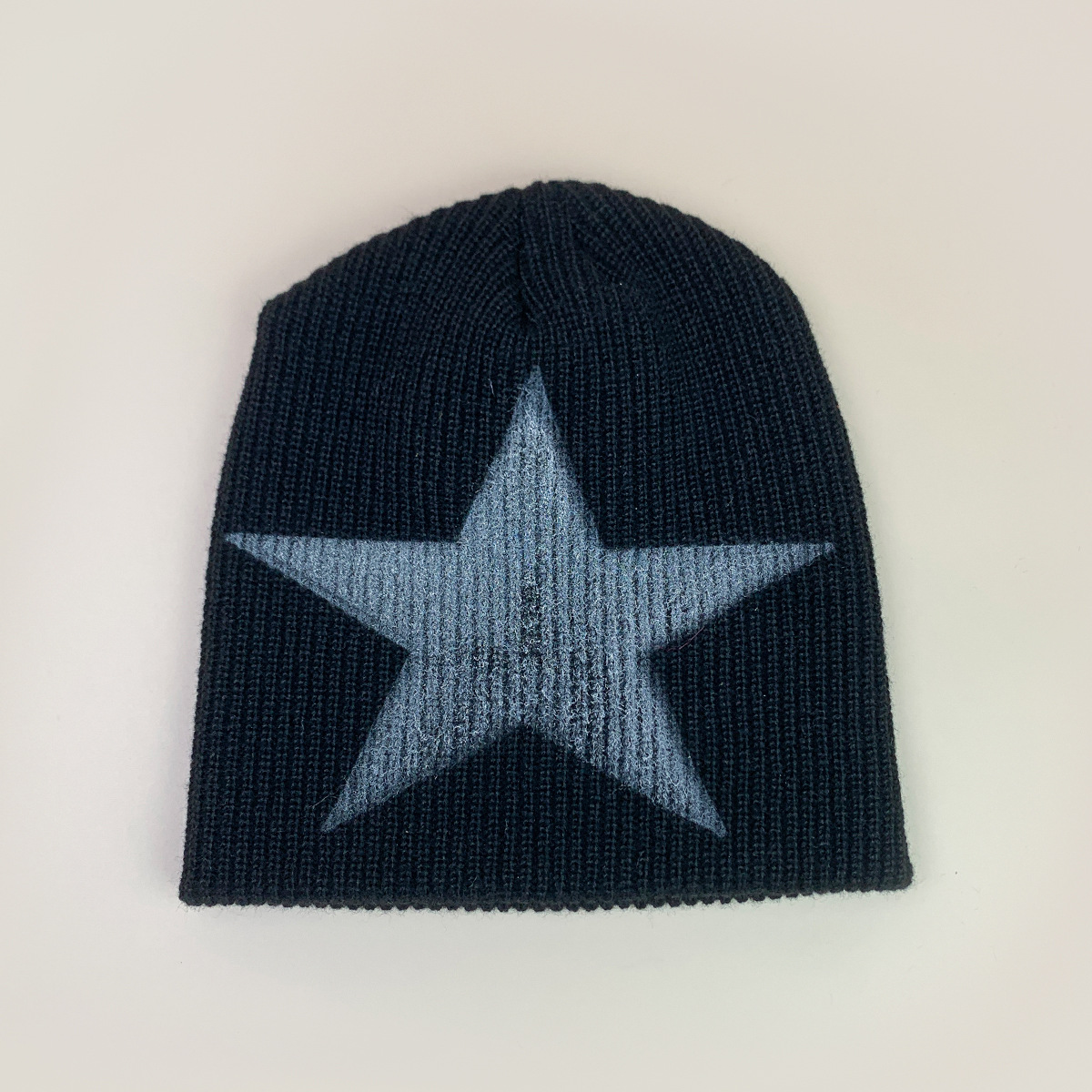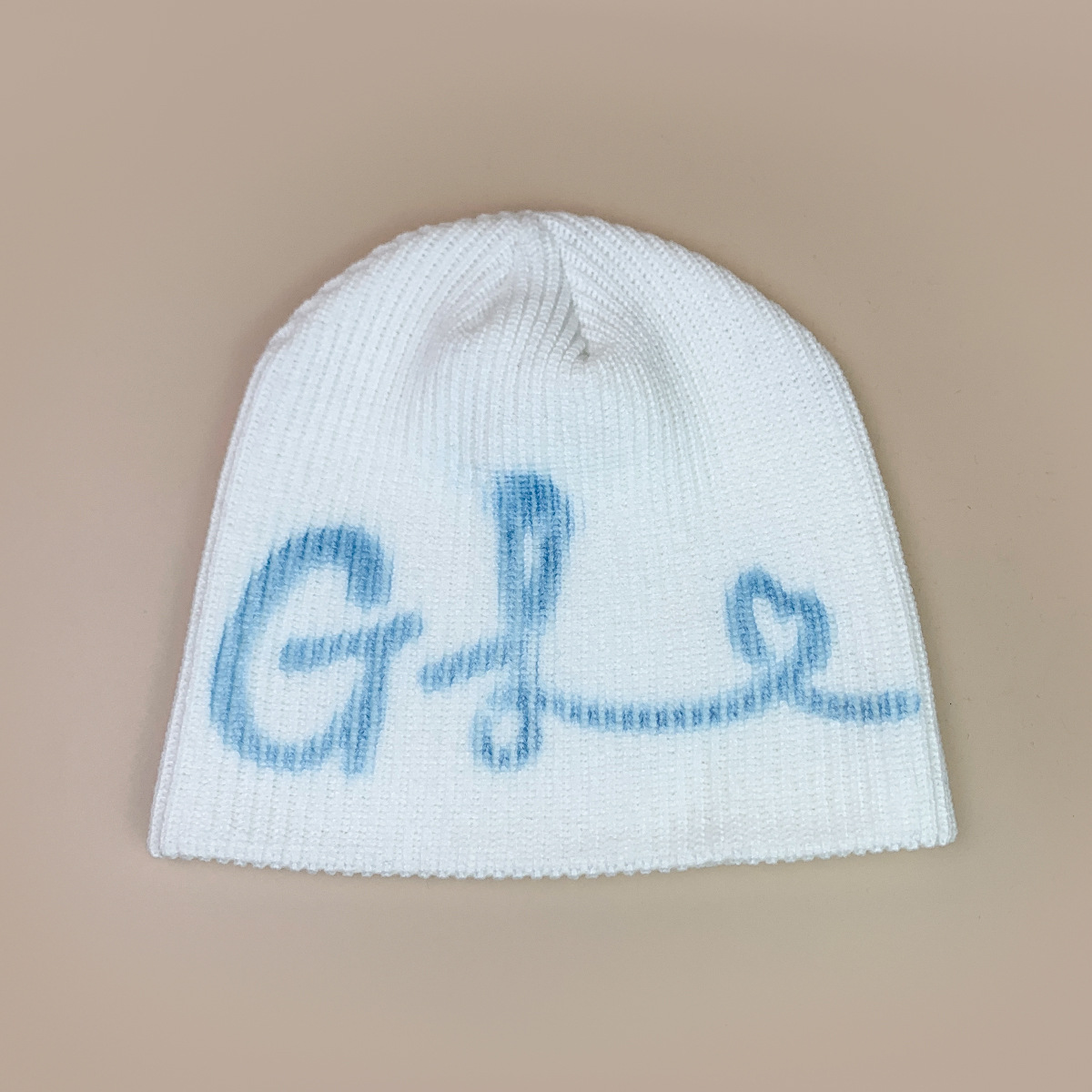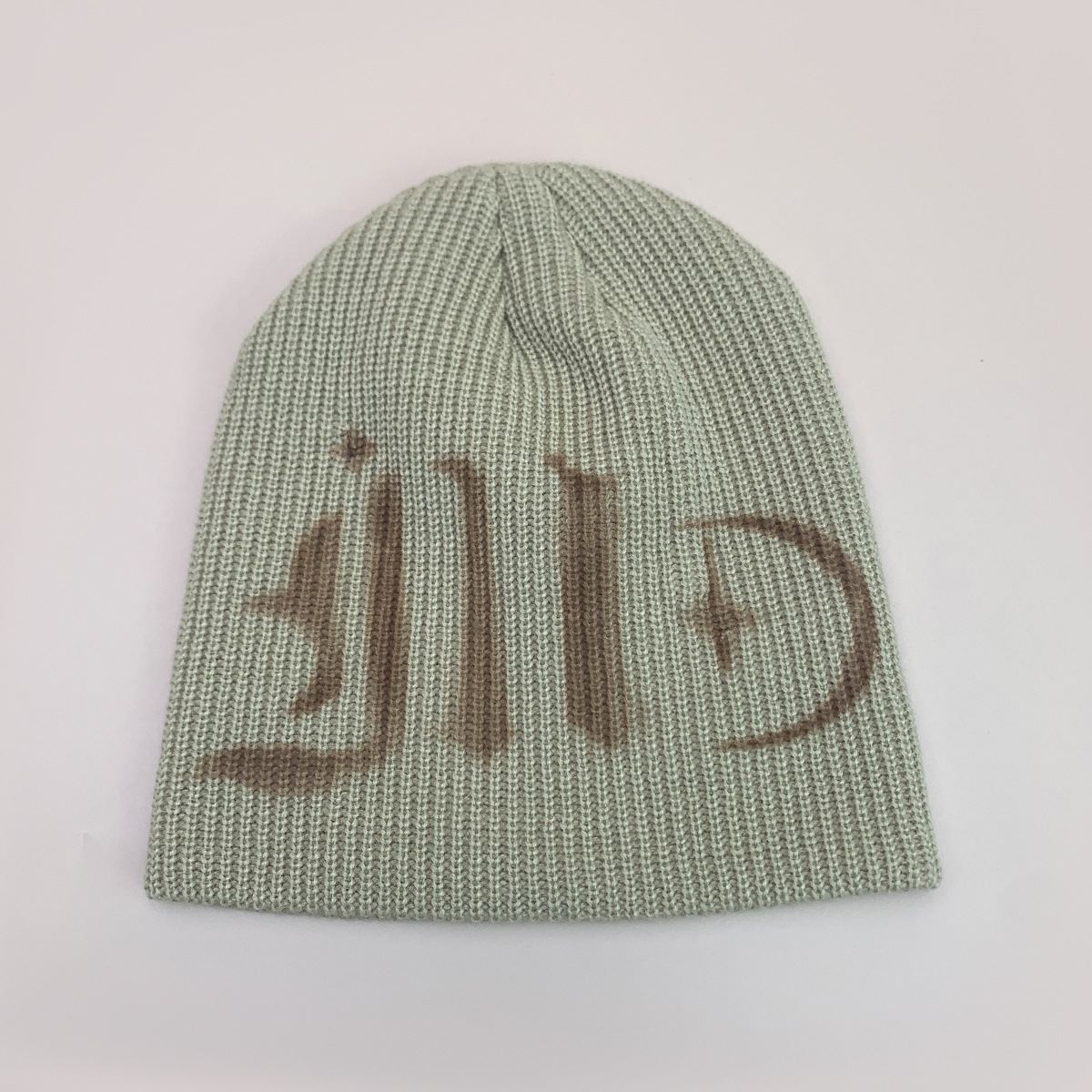 남성과 여성을위한 새로운 개인화 된 일본 산스크리트어 크로스 프린트 니트 모자 따뜻한 Y2K 거리 풀오버 모자 도매