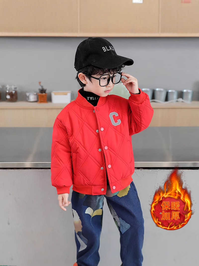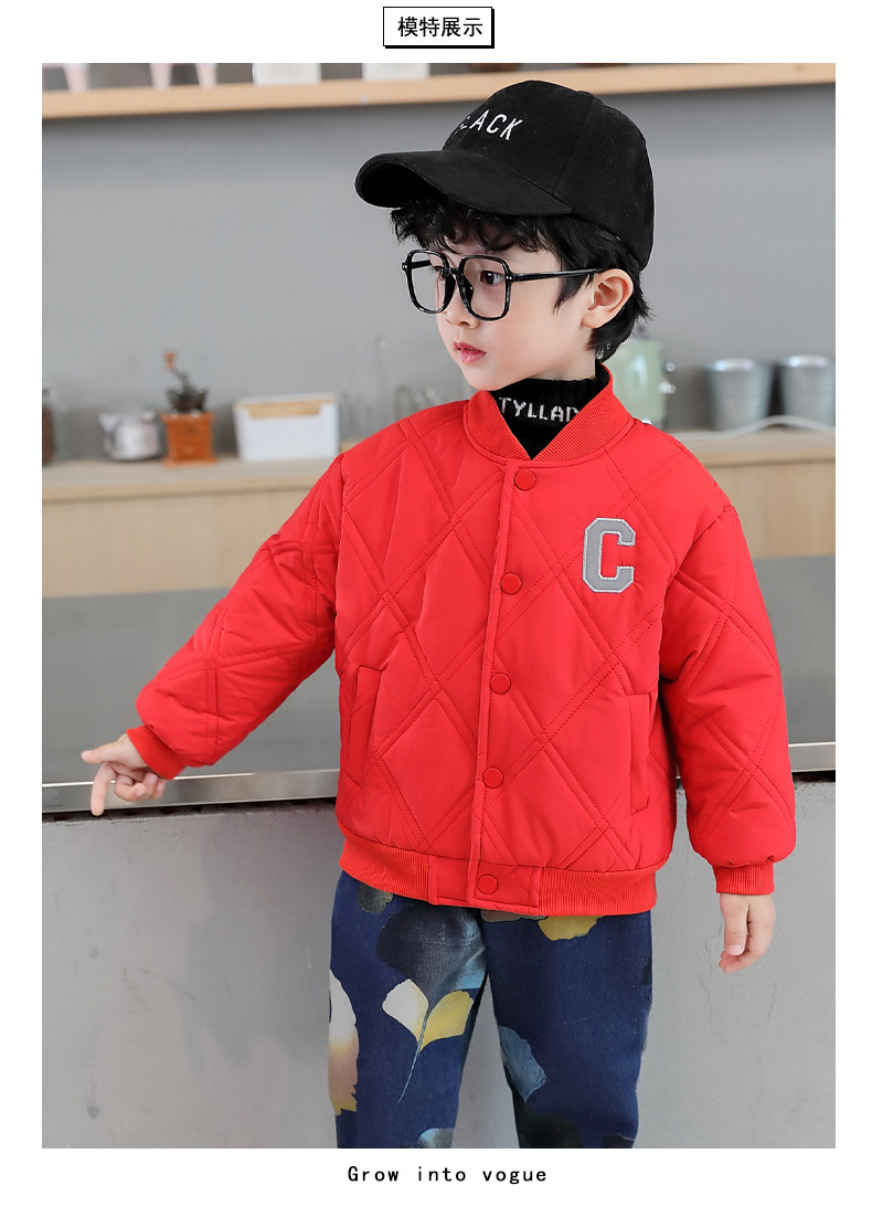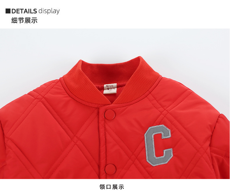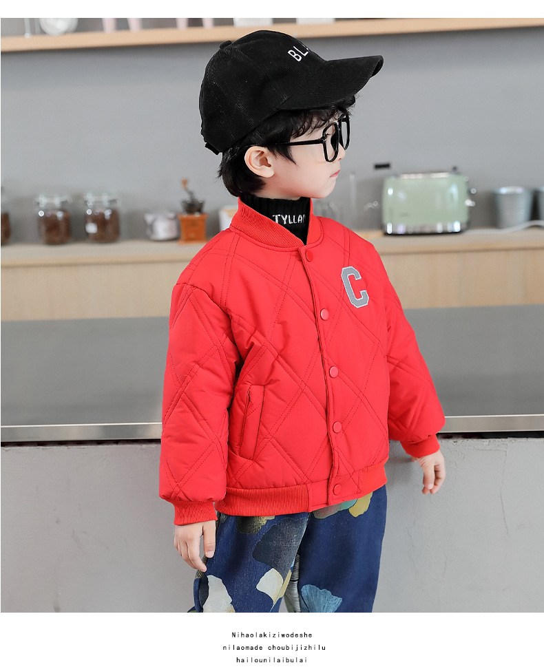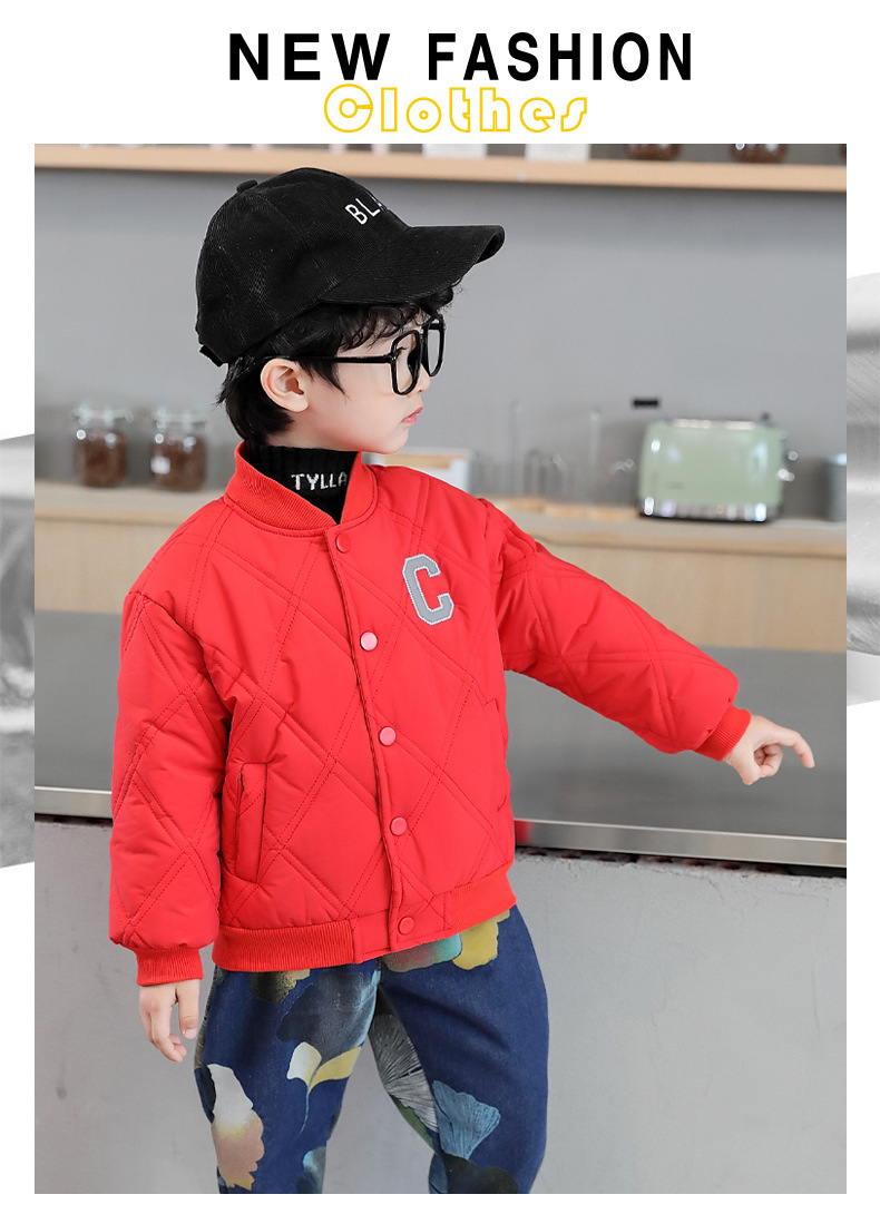 남아용 반사재가 있는 대형 C 자수 야구점퍼, 가을 겨울용 아동용 짧은 면옷, 멋진 아기용 두꺼운 면옷스토어 가기