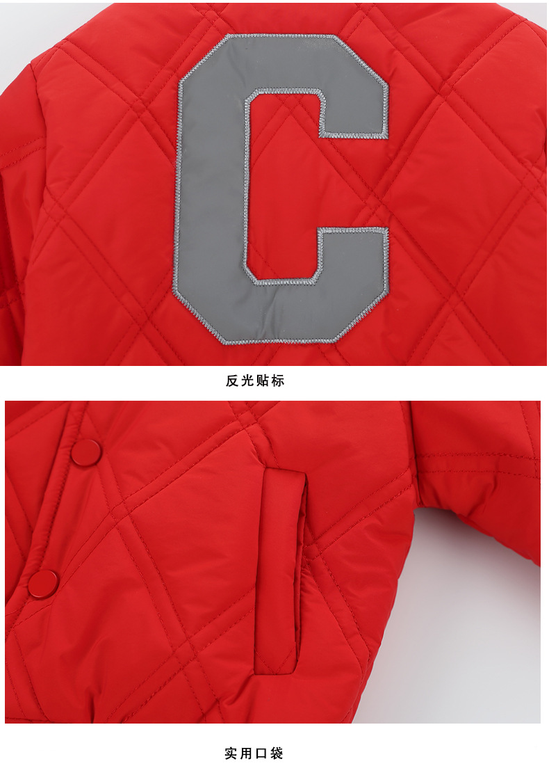 남아용 반사재가 있는 대형 C 자수 야구점퍼, 가을 겨울용 아동용 짧은 면옷, 멋진 아기용 두꺼운 면옷