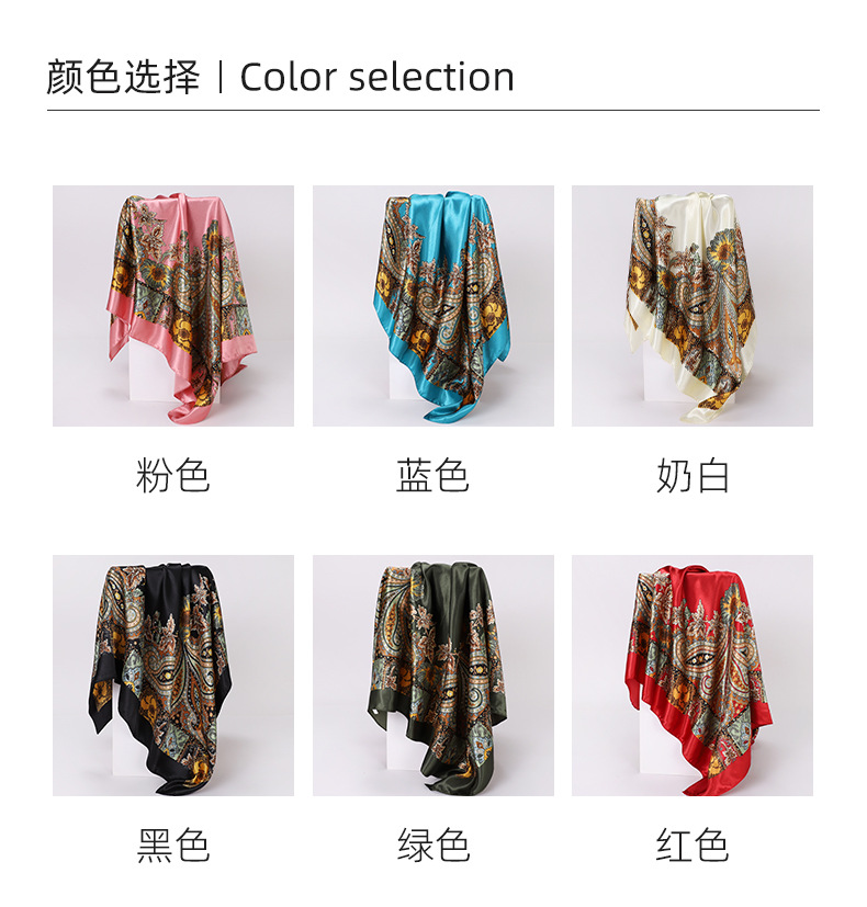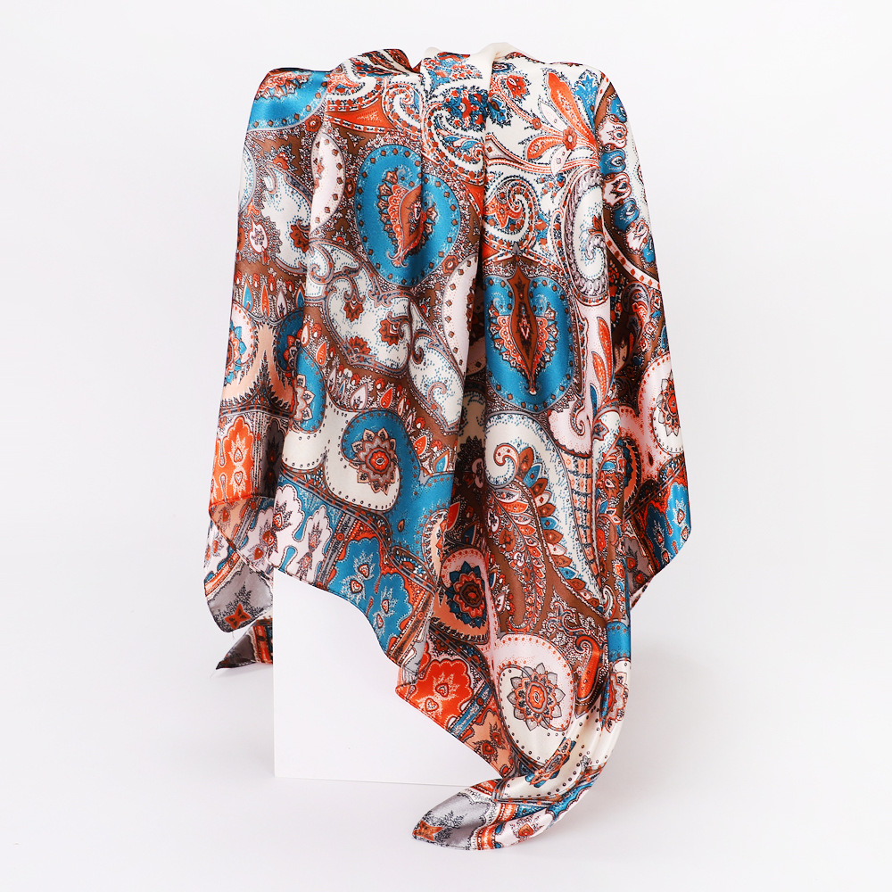 캐슈 너트 프린트 스카프 여성 유럽과 미국의 트렌드 올 매치 숄어 크로스 보더 컬러 스카프 90cm 스퀘어 스카프 도매