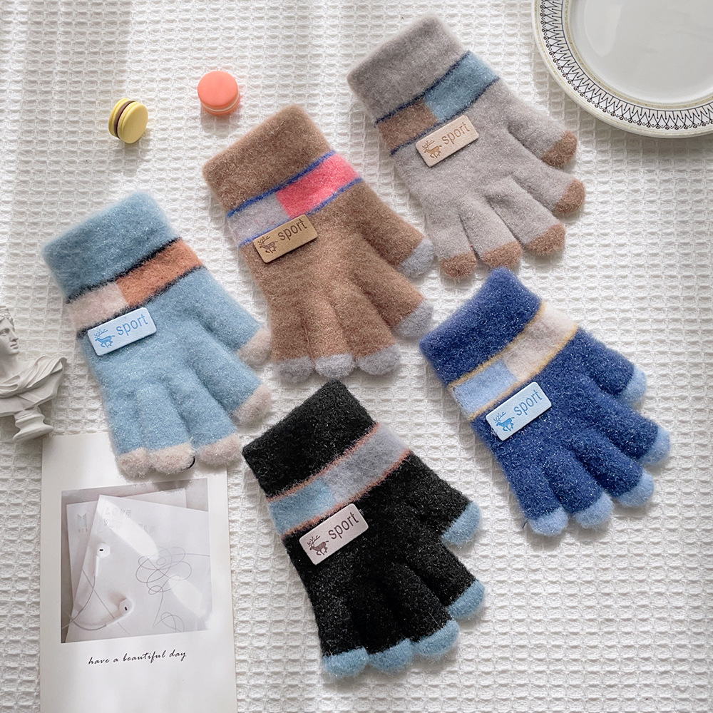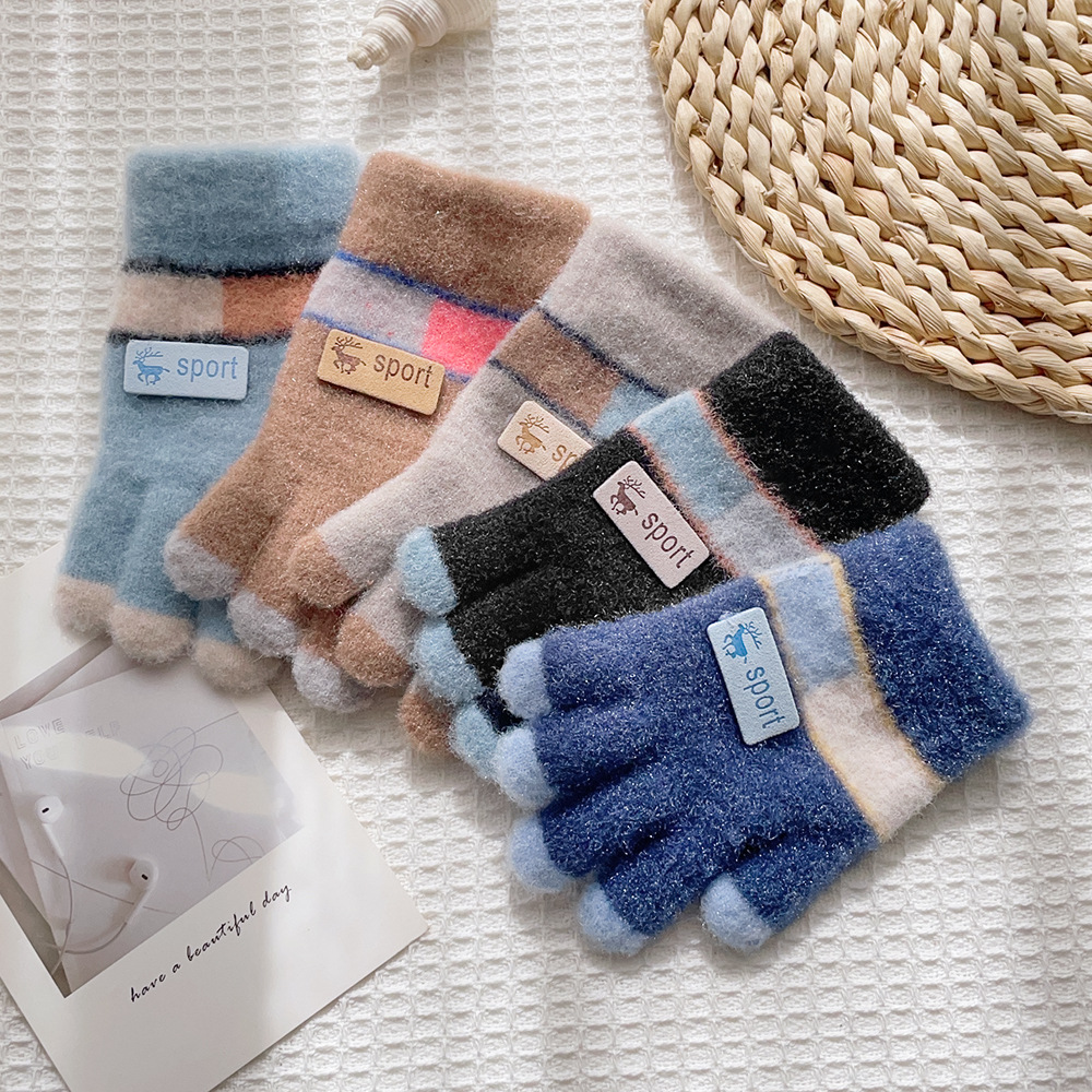 겨울 패션 학생 6-10 세 어린이 장갑 남녀 따뜻한 전체 손가락 장갑 이우 제조 업체 도매
