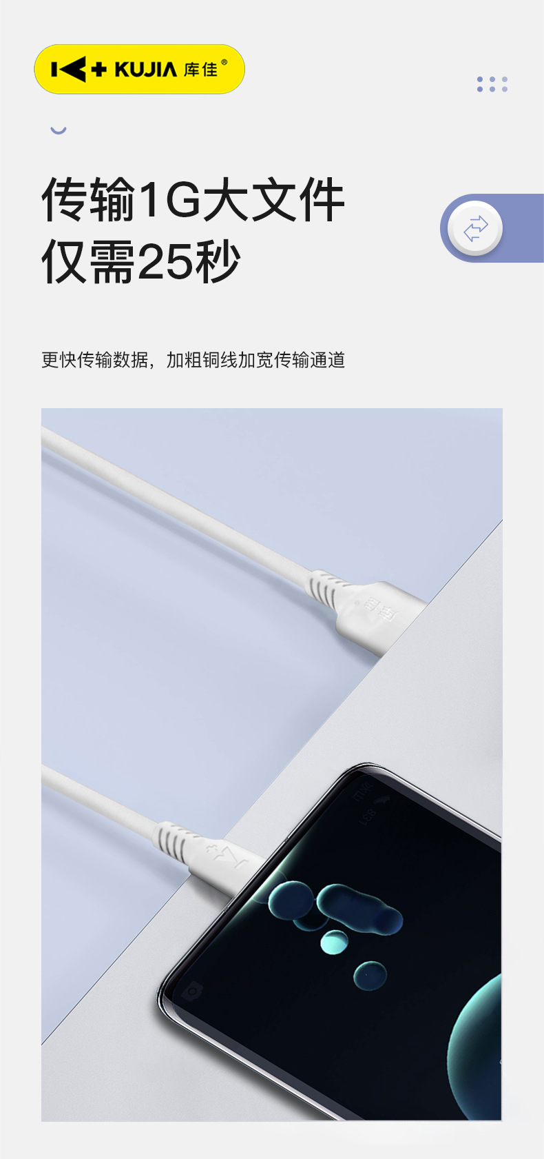 Kujia CC31 데이터 케이블 슈퍼 빠른 충전 안드로이드 화웨이 애플 빠른 충전 와이어 안티 벤딩 타입-c스토어 가기