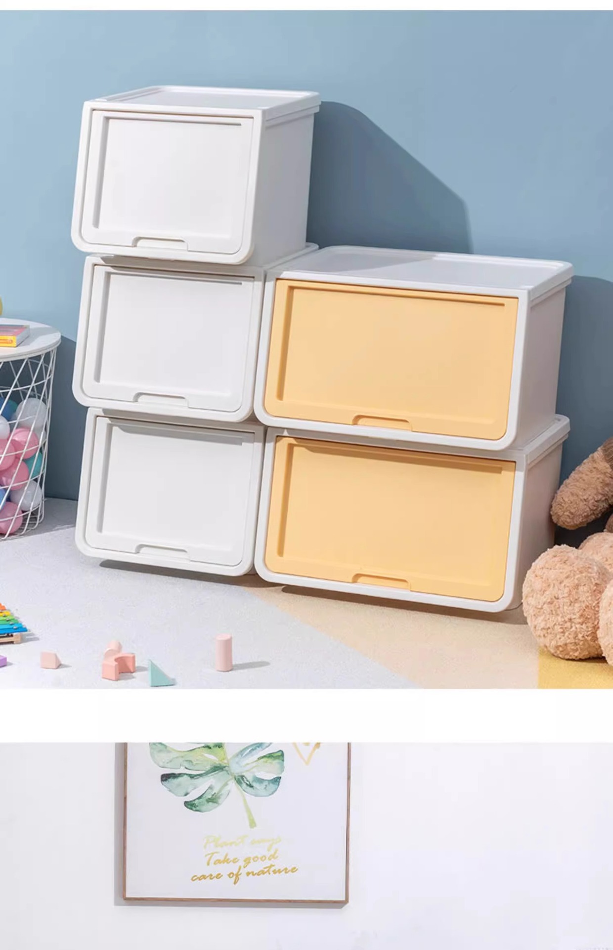 앨리스 홈 어린이 장난감 의류 보관 상자 측면 개방 플라스틱 대형 전면 개방 플립 보관 상자