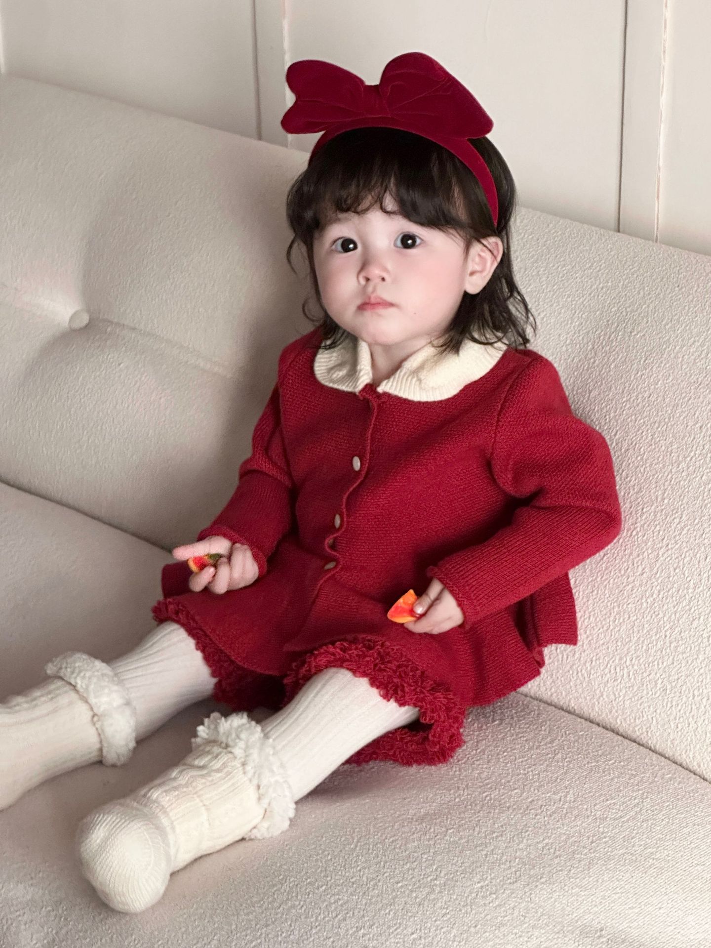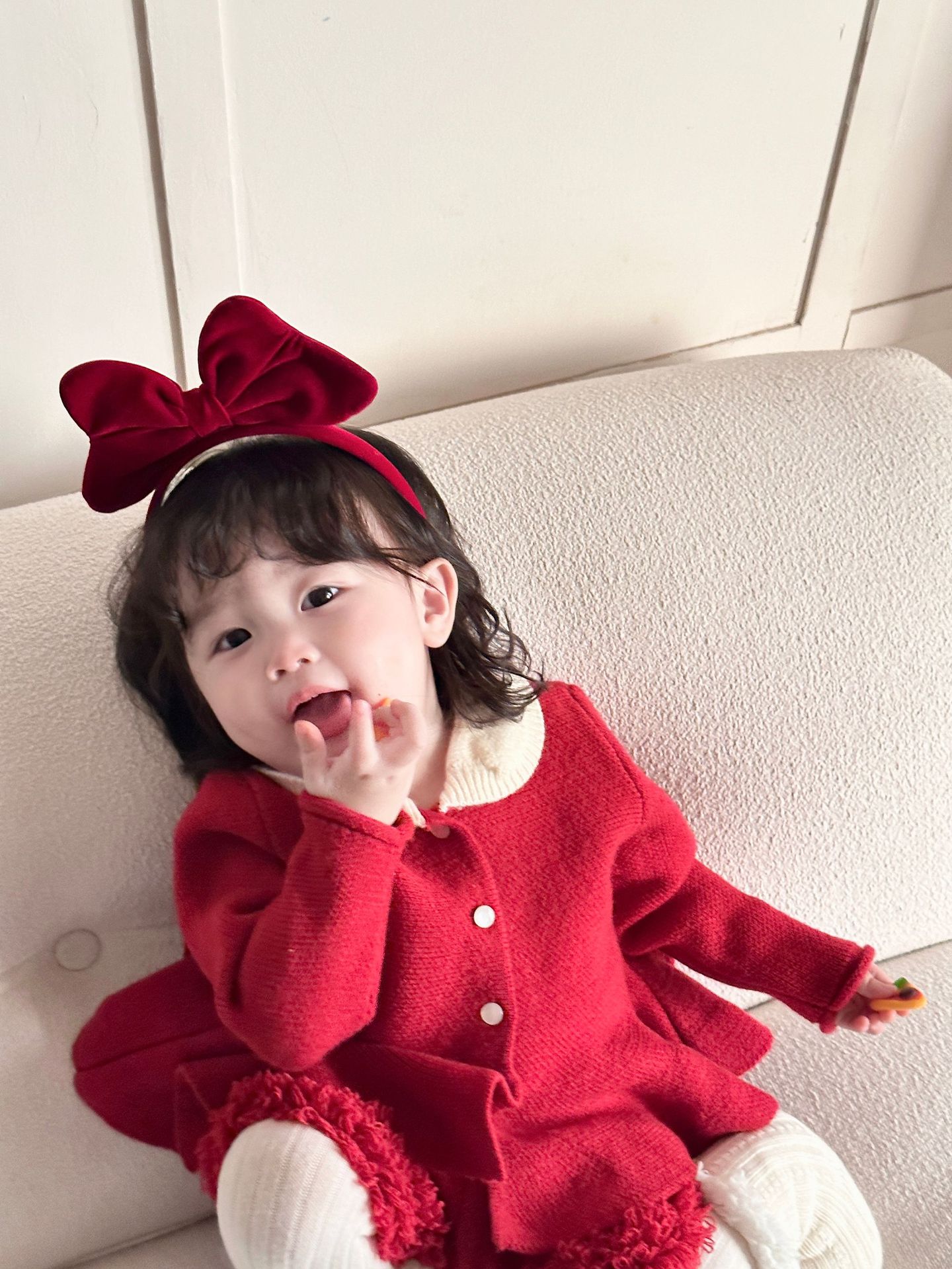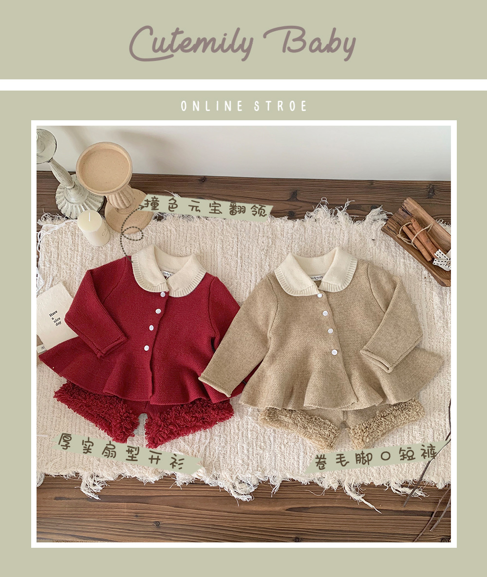 가을과 겨울 소녀 크리스마스 대비 옷깃 스웨터 세트 새해 의류 진자 재킷 + 마오 마오 반바지 2 피스 세트스토어 가기
