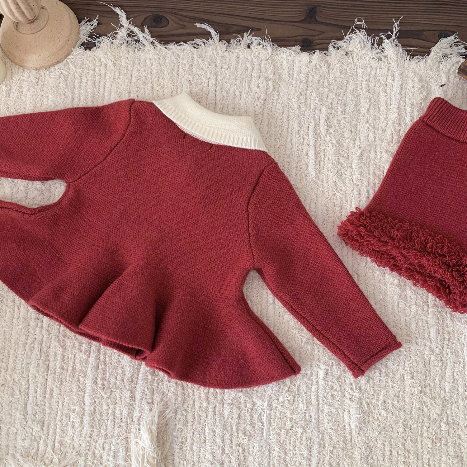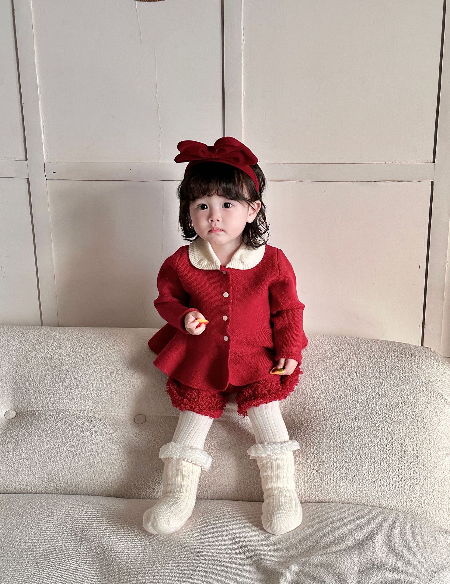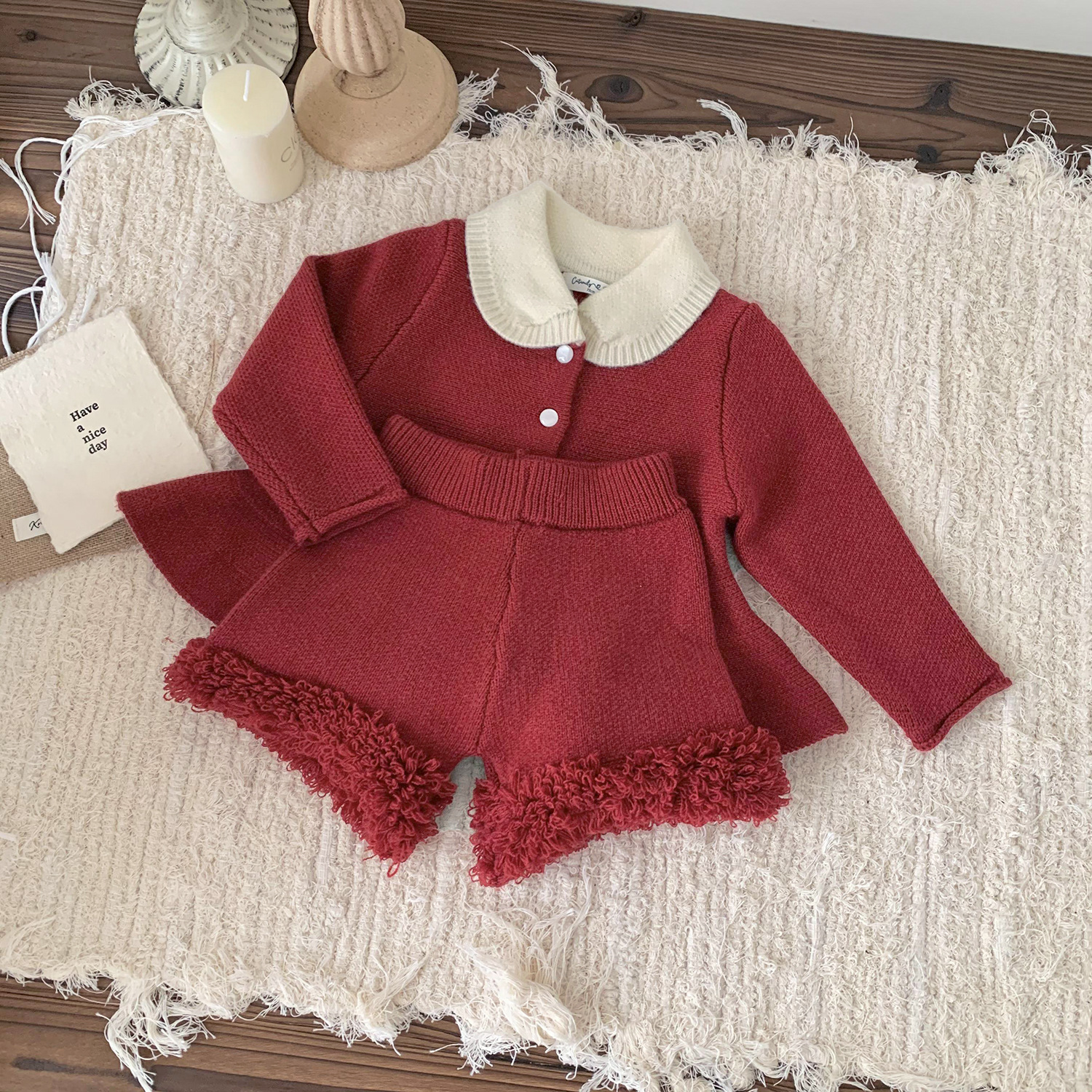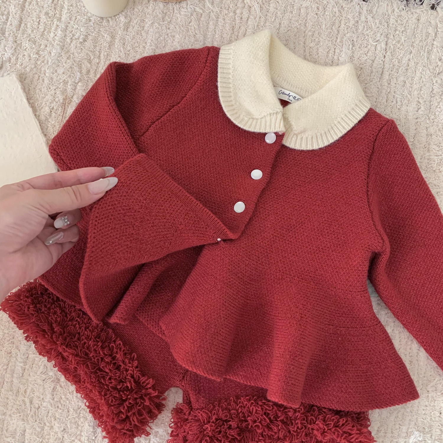 가을과 겨울 소녀 크리스마스 대비 옷깃 스웨터 세트 새해 의류 진자 재킷 + 마오 마오 반바지 2 피스 세트