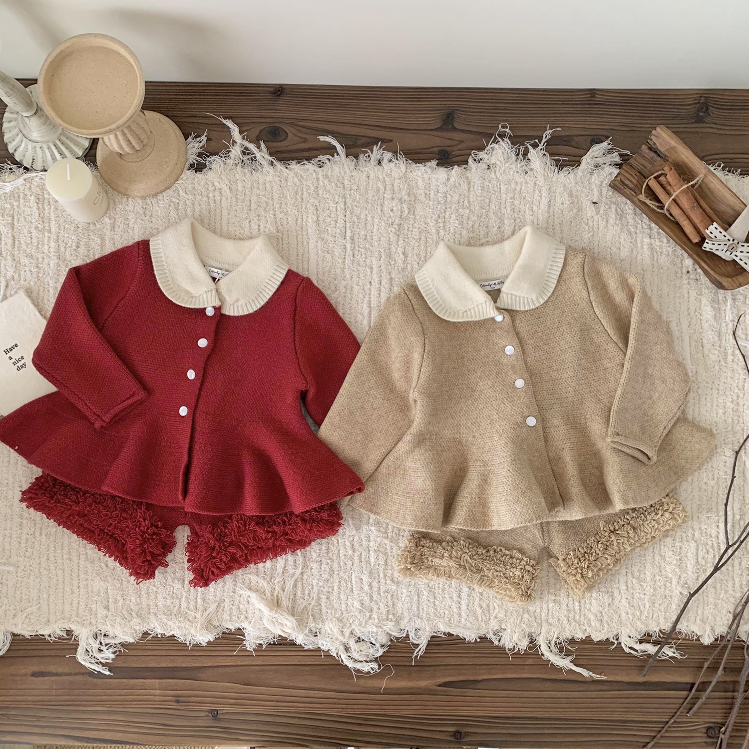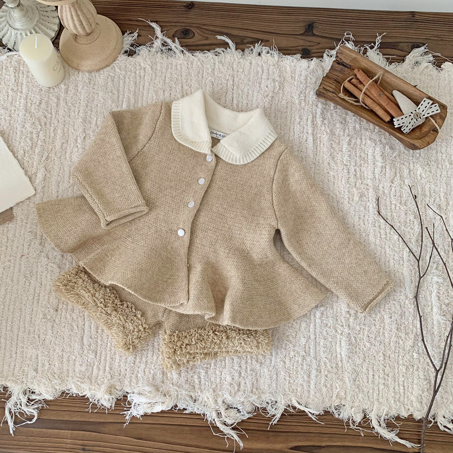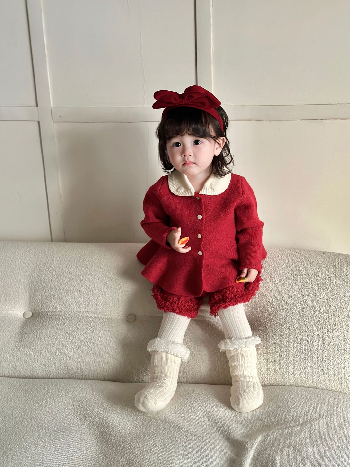 가을과 겨울 소녀 크리스마스 대비 옷깃 스웨터 세트 새해 의류 진자 재킷 + 마오 마오 반바지 2 피스 세트