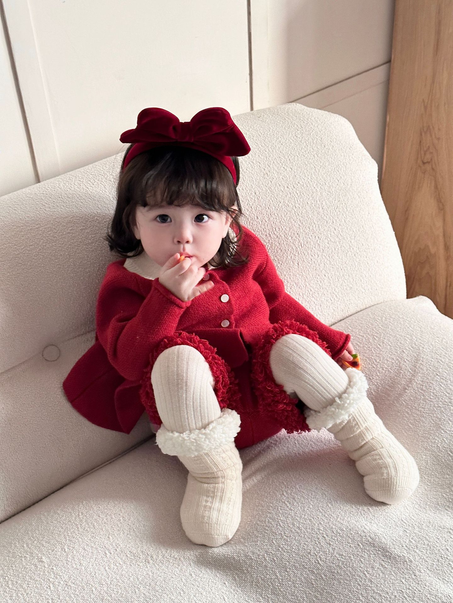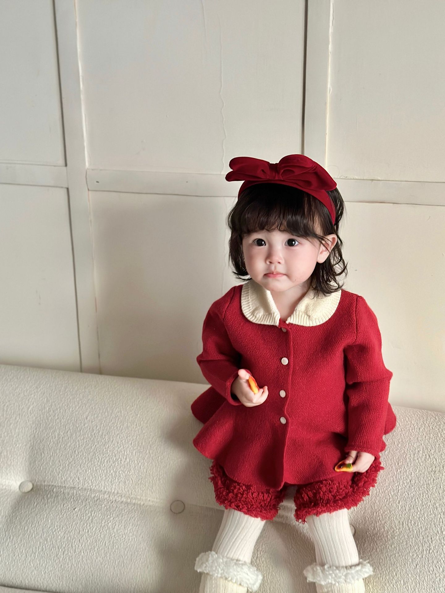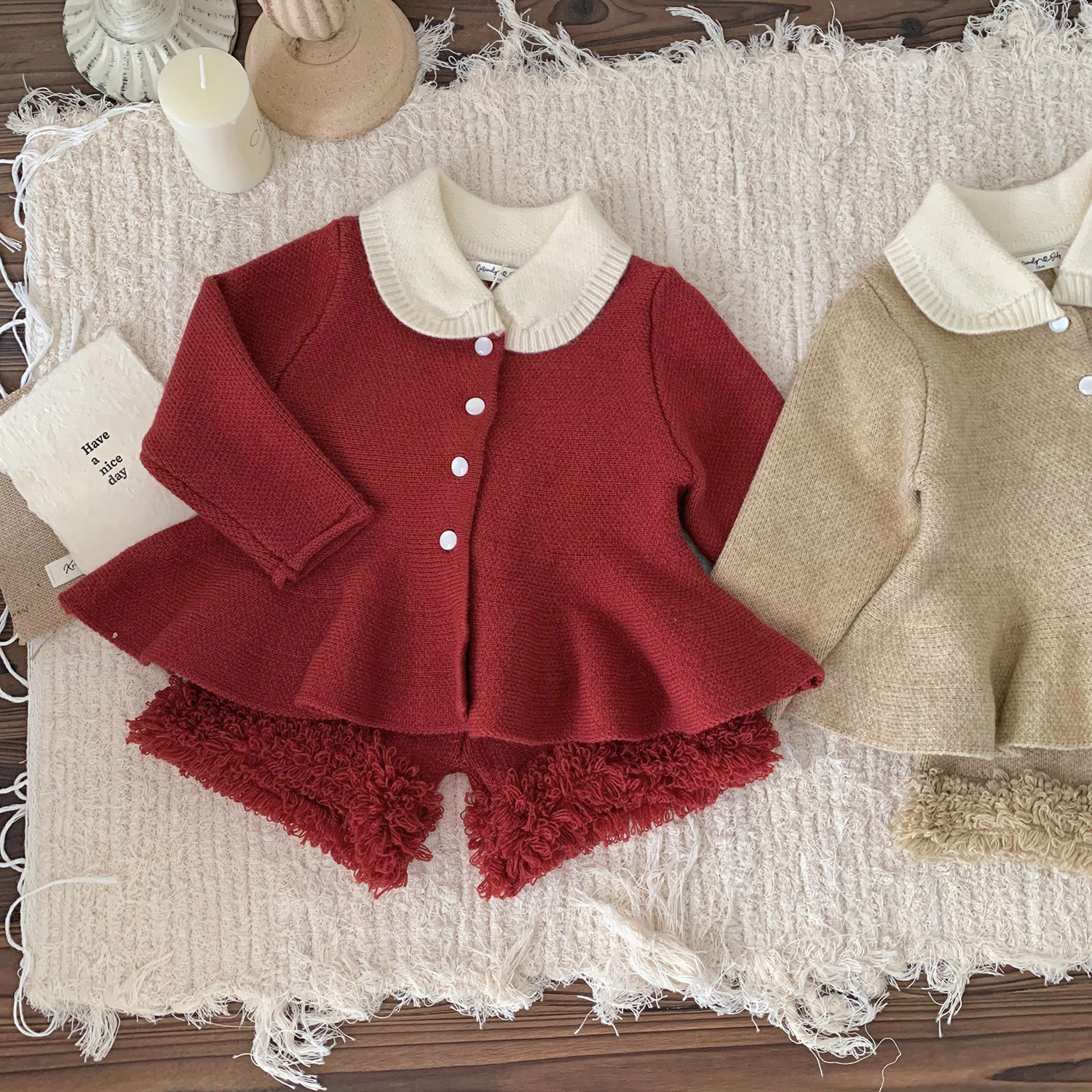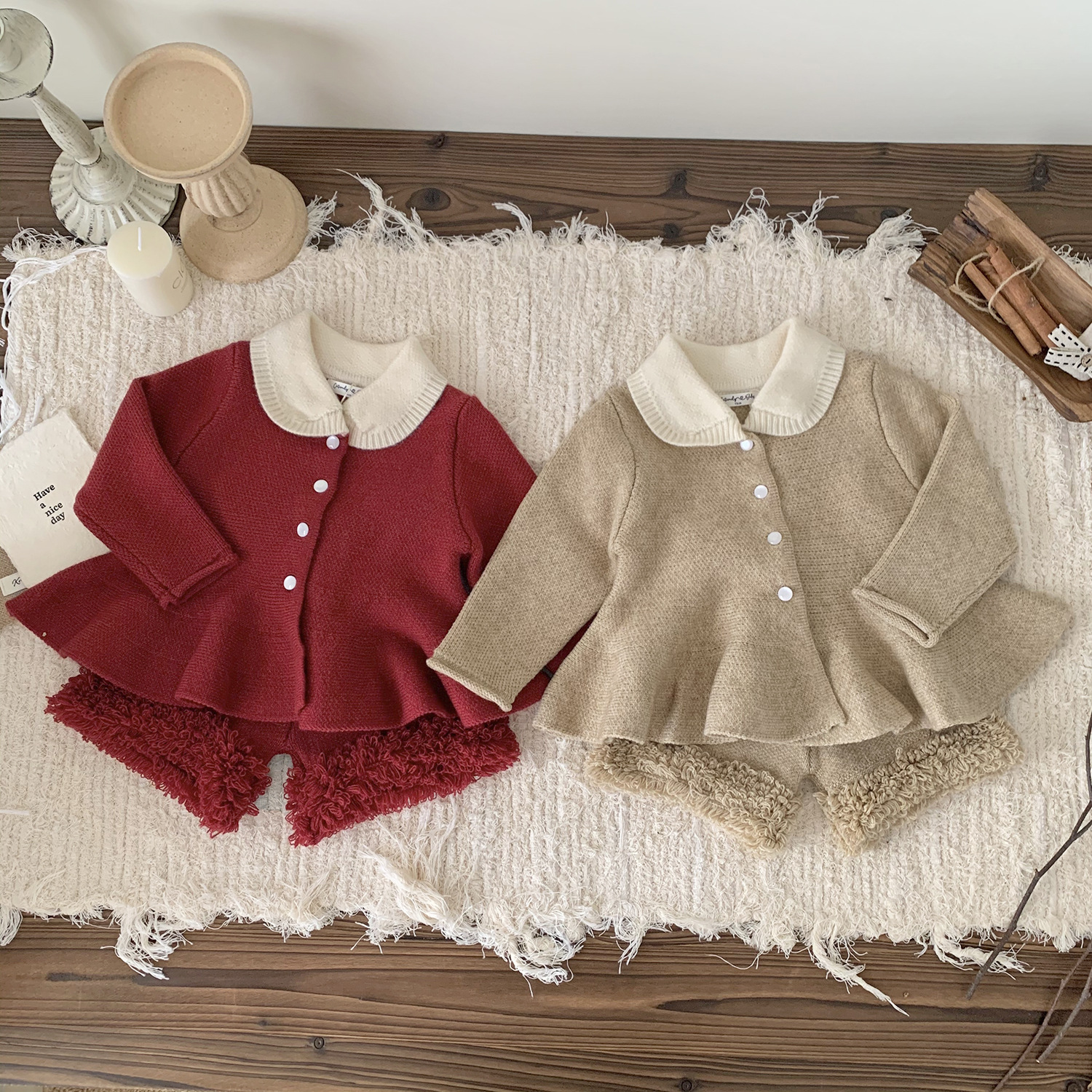 가을과 겨울 소녀 크리스마스 대비 옷깃 스웨터 세트 새해 의류 진자 재킷 + 마오 마오 반바지 2 피스 세트