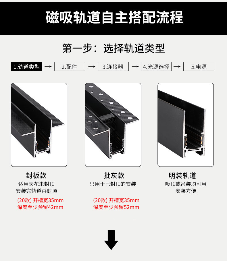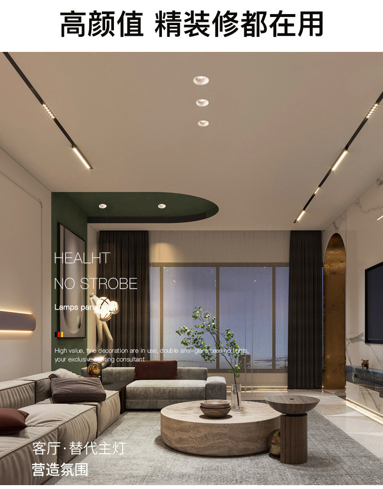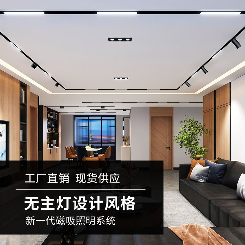 LED 자기 흡수 트랙 라이트 임베디드 오픈 마운트 비 메인 라이트 거실 가구 48v 내장 자기 흡수 라이트 중산 램프스토어 가기