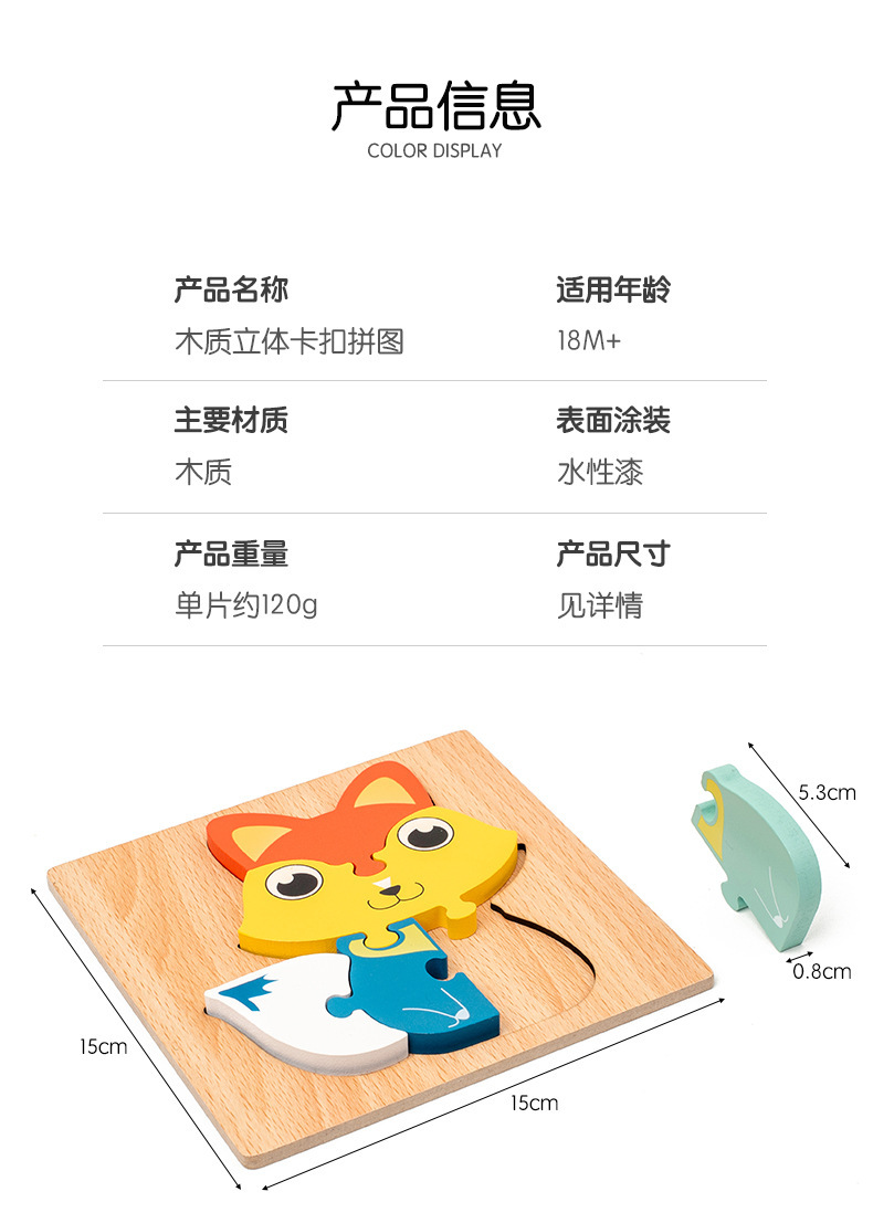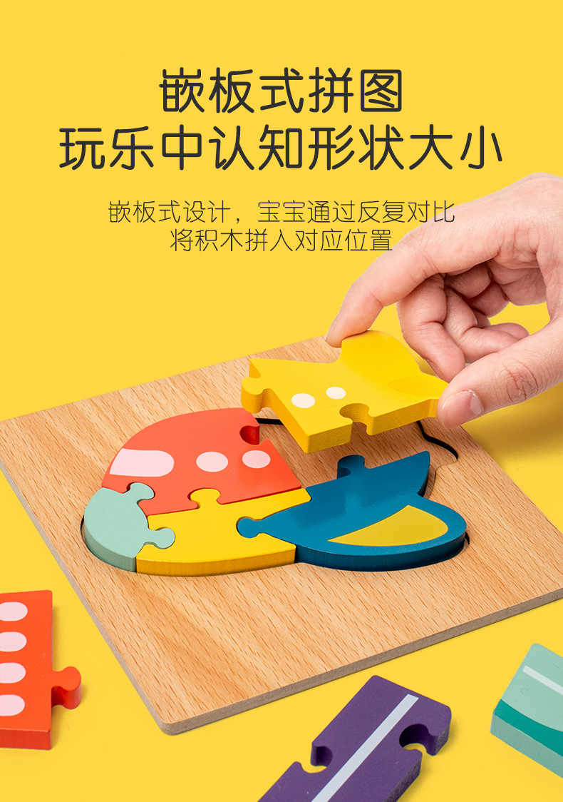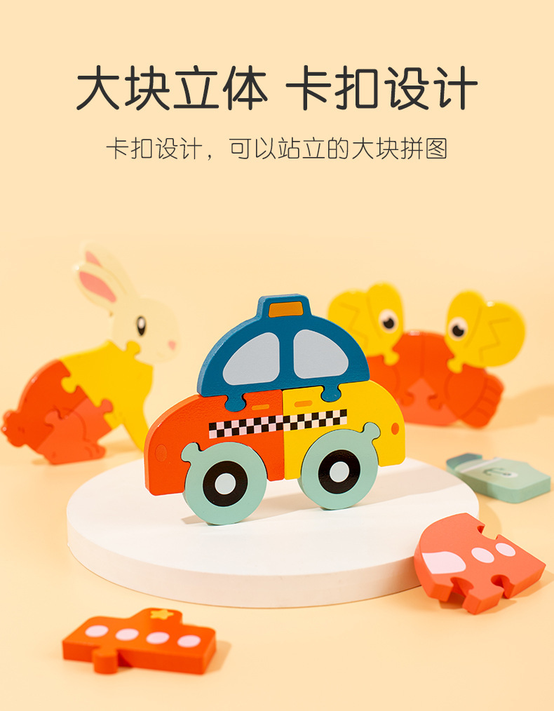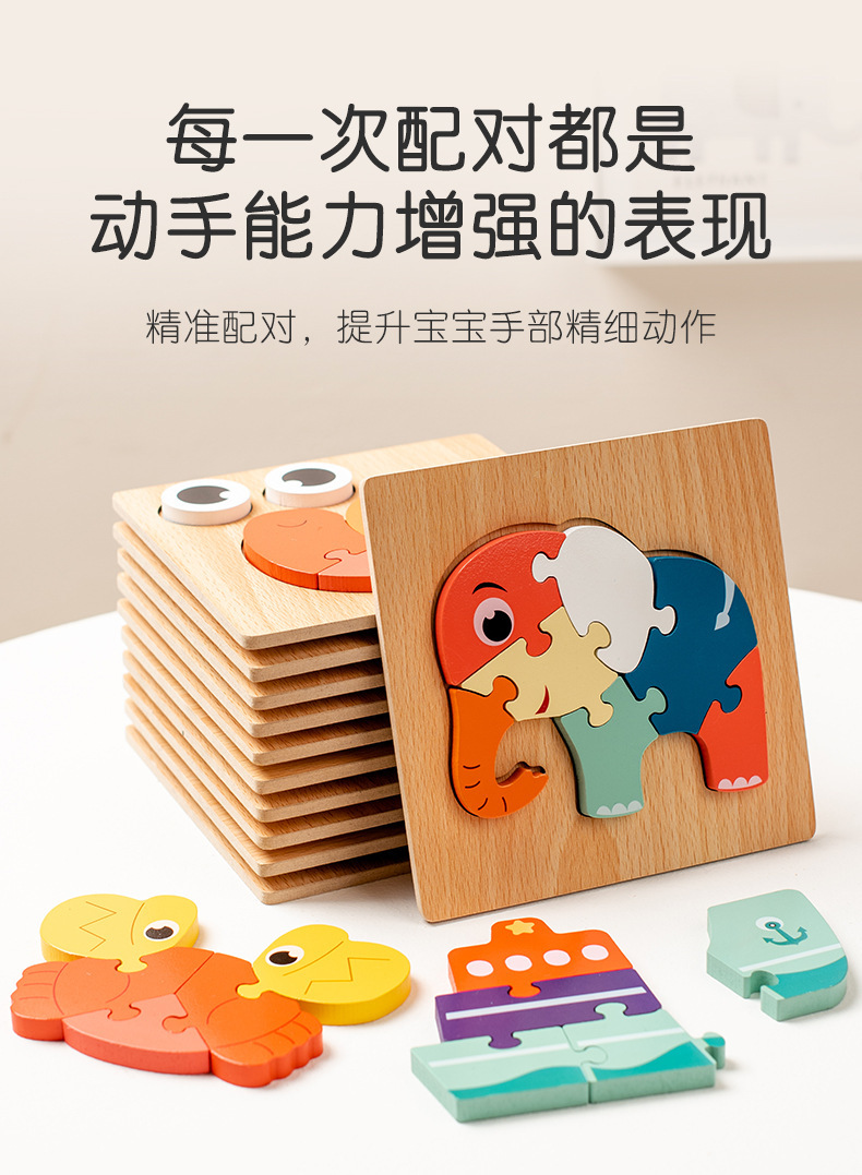 Weiwei 호랑이 나무 놀이 입체 동물 퍼즐 1-3 세 유아 조기 교육 퍼즐 만화 빌딩 블록 장난감 퍼즐
