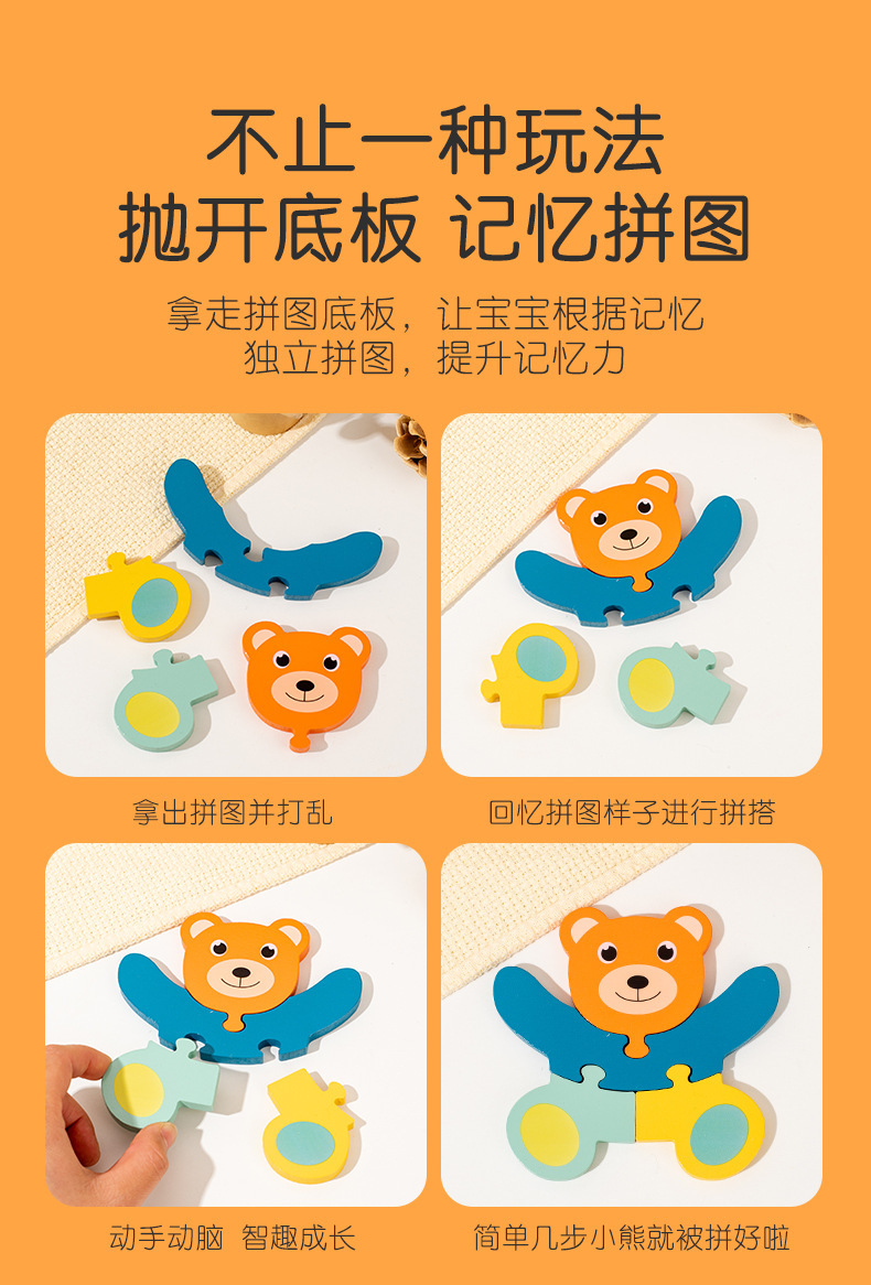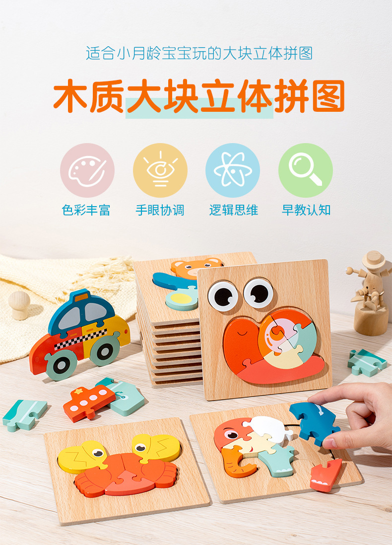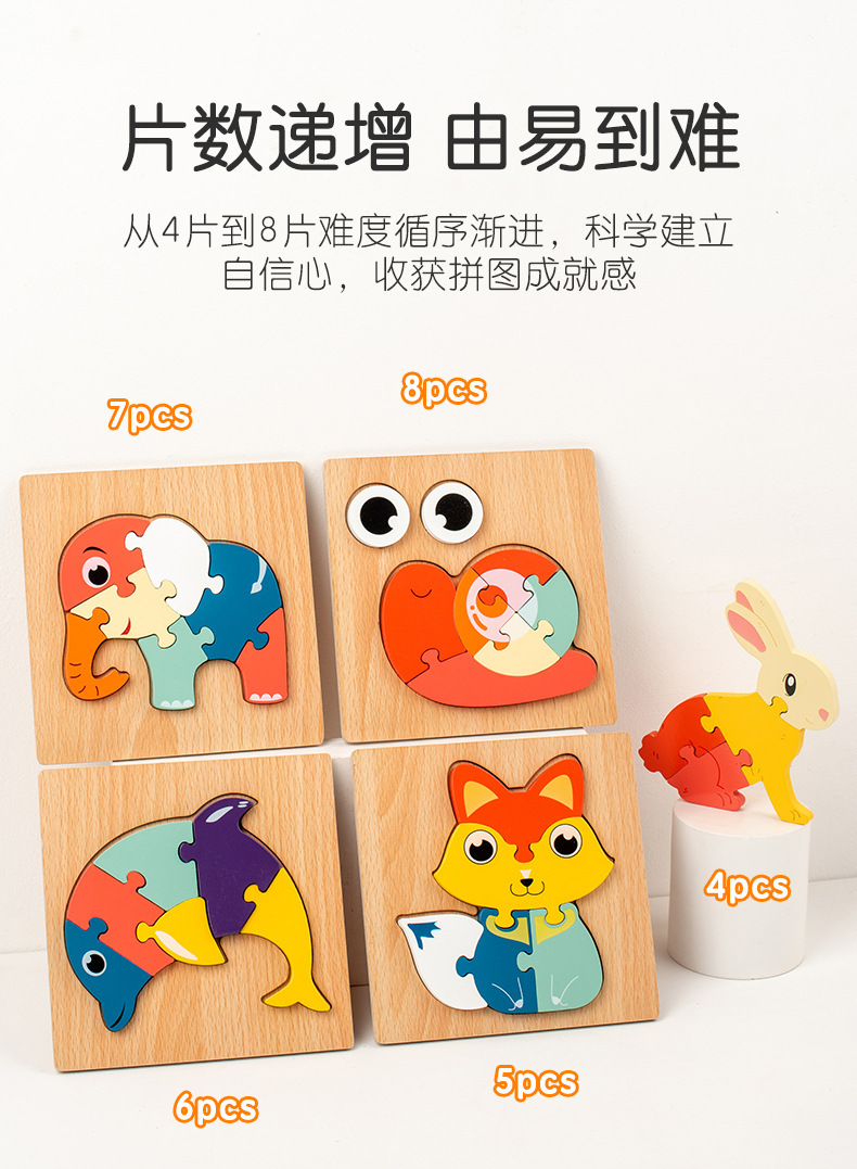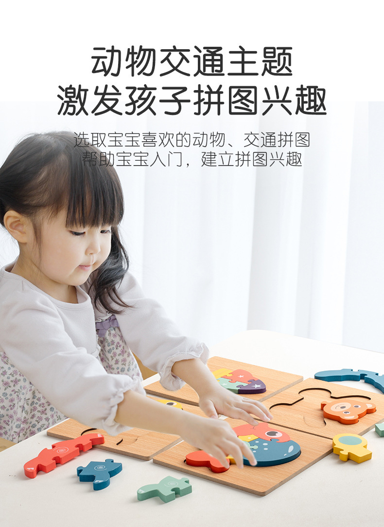 Weiwei 호랑이 나무 놀이 입체 동물 퍼즐 1-3 세 유아 조기 교육 퍼즐 만화 빌딩 블록 장난감 퍼즐스토어 가기