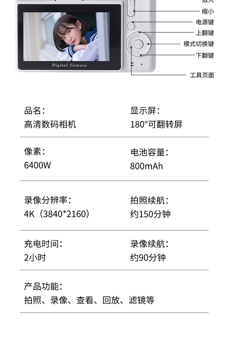 폭발 6400W 초 고화질 디지털 카메라 3.0 "셀프 타이머 플립 스크린 학생 캠퍼스 여행