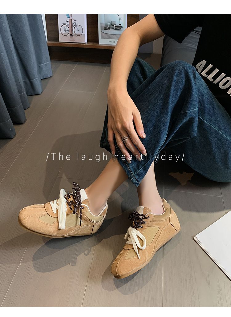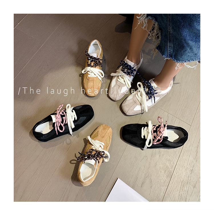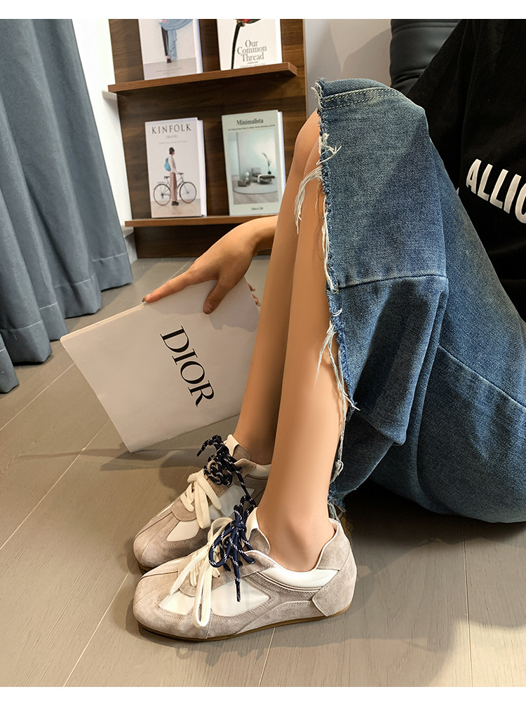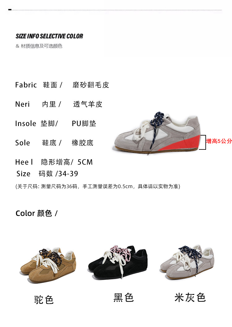 보이지 않는 키높이 5cm 카멜레온 신발끈 다용도 스포츠 캐주얼 신발 이중 신발끈 레트로 아가트 트레이닝화 여성용