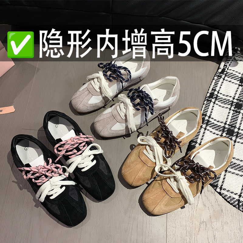 보이지 않는 키높이 5cm 카멜레온 신발끈 다용도 스포츠 캐주얼 신발 이중 신발끈 레트로 아가트 트레이닝화 여성용스토어 가기