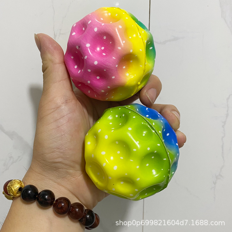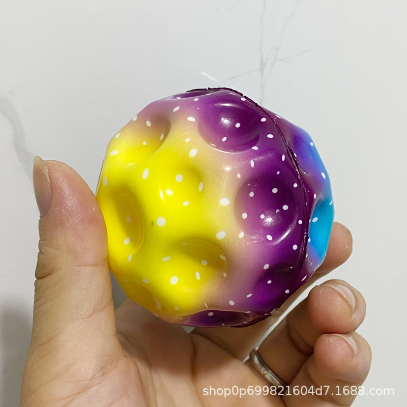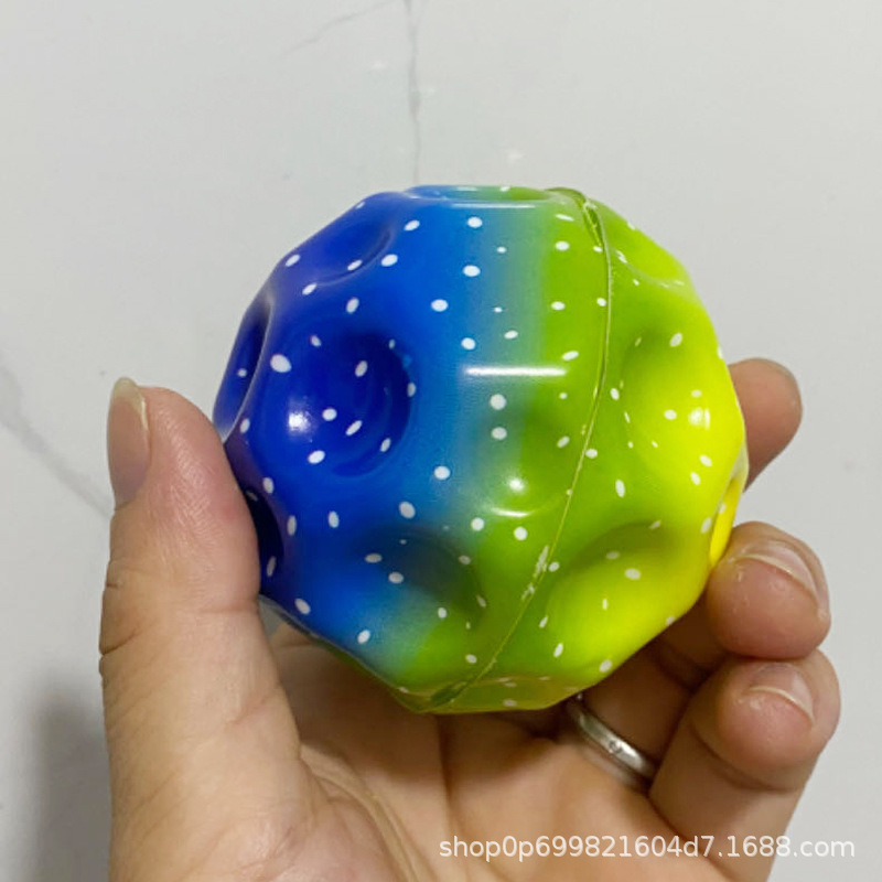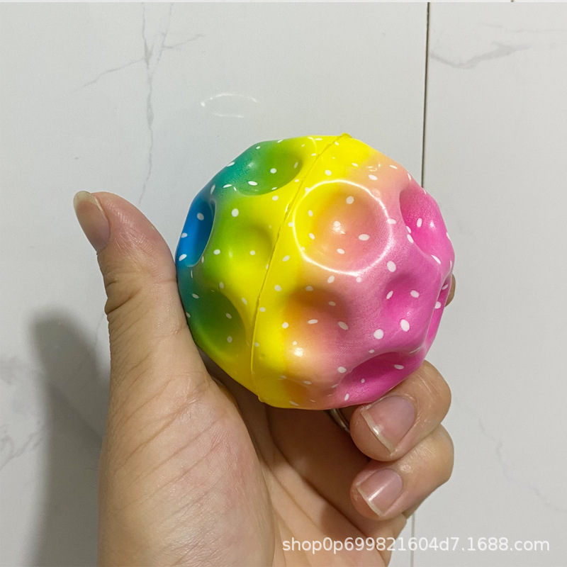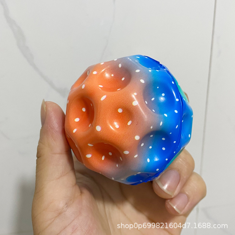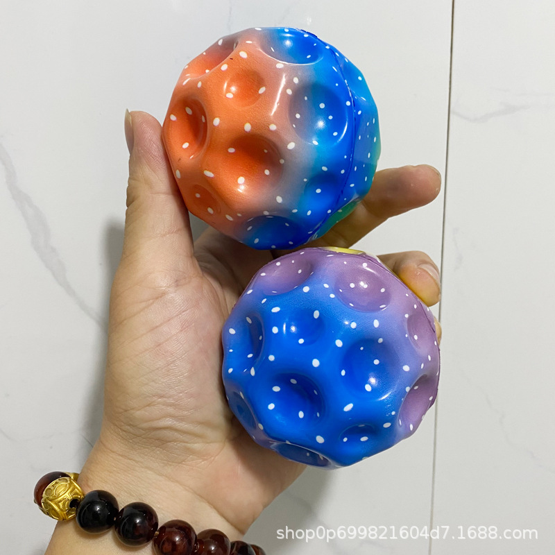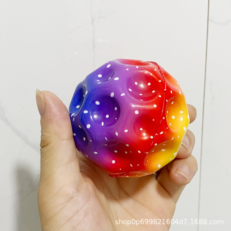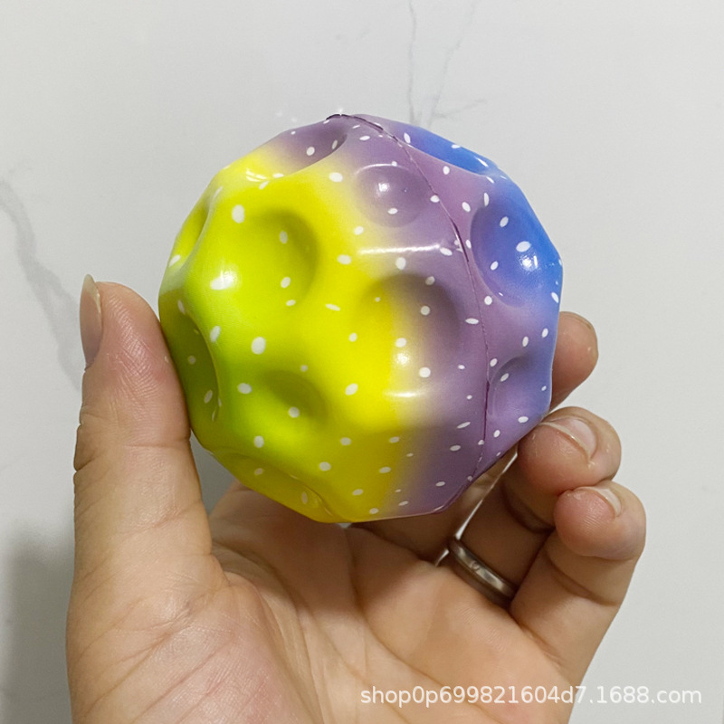 这个月亮坑陨石坑玩具球是直径7.2cm的,重量约50克,弹力超级好,采用环保PU聚酯氨材料,有CCC认证,能开发票,欢迎大家批发选购。