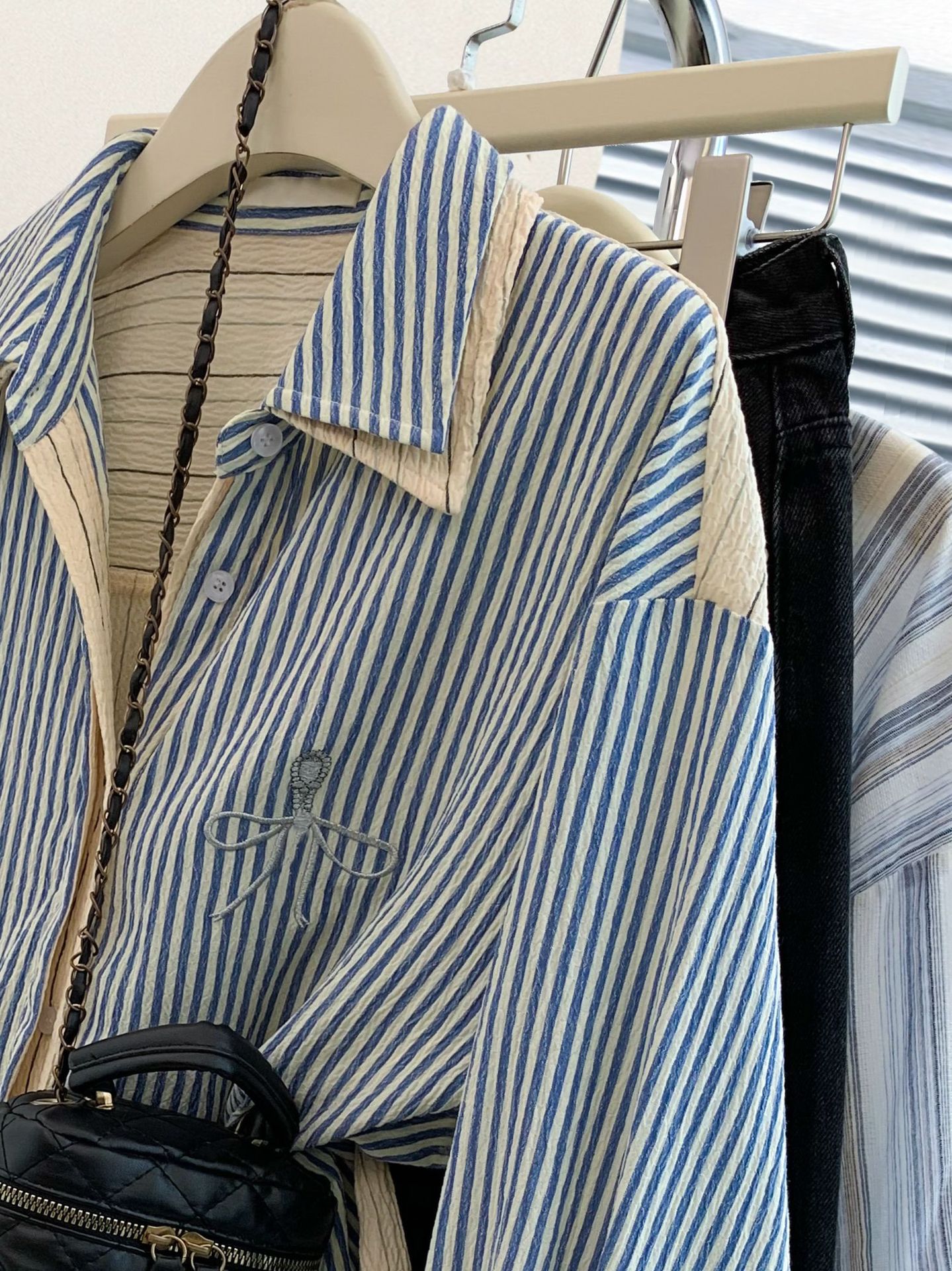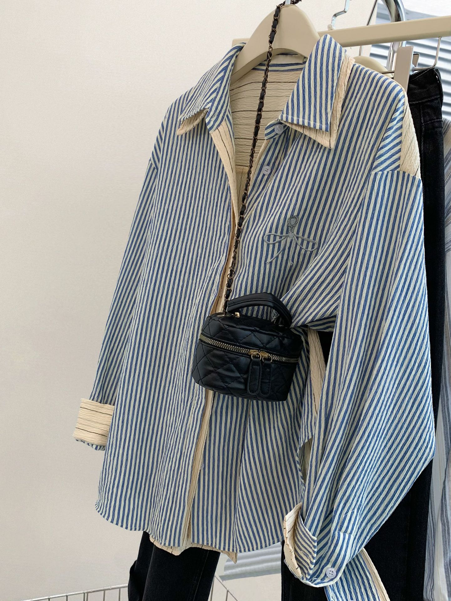 줄무늬 어깨 가짜 투피스 셔츠 재킷 여성 봄, 가을, 가을, 겨울 한국 하이 엔드 긴팔 셔츠 탑스토어 가기