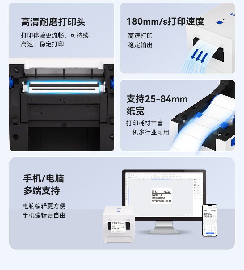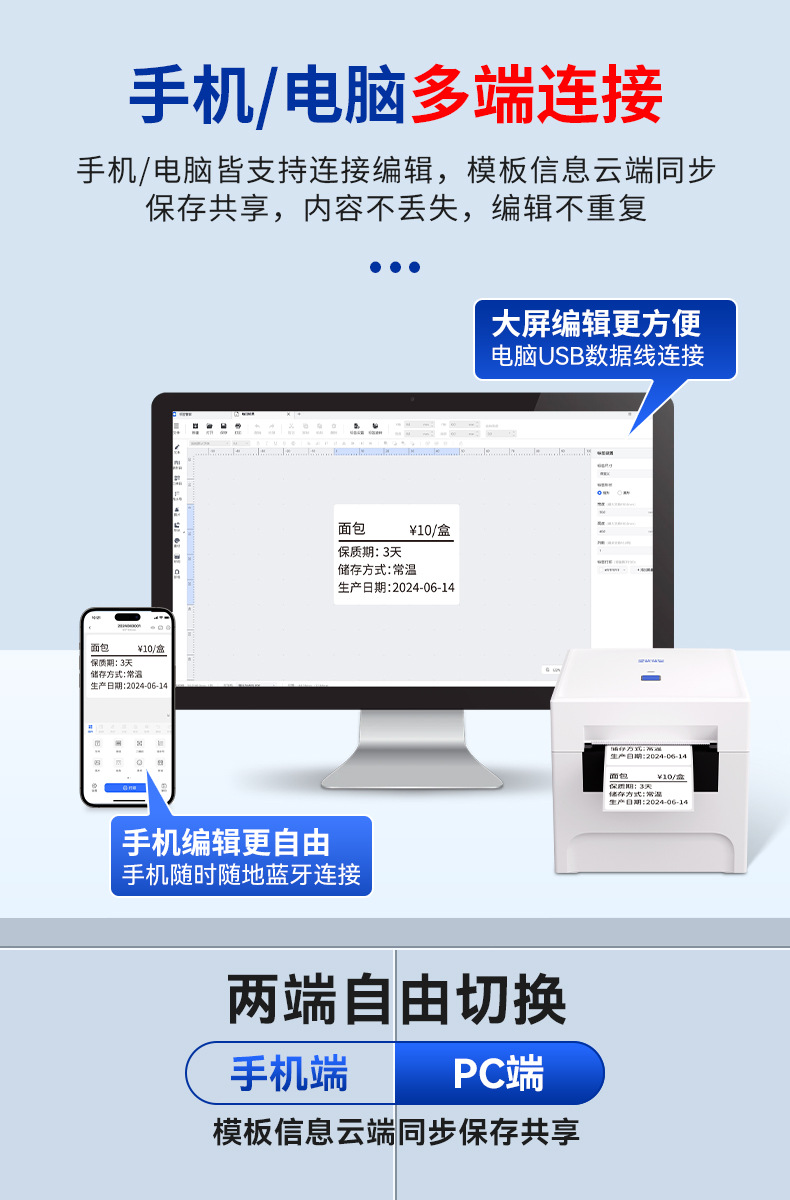 Qirui 열 라벨 프린터 식품 재료 가격 의류 태그 상인 슈퍼마켓 우유 차 블루투스 라벨링 기계