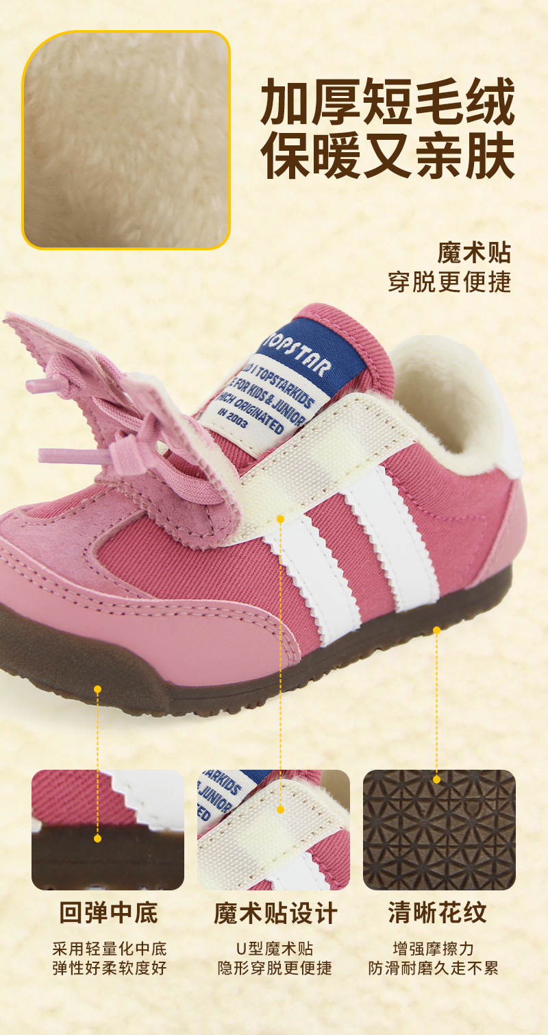 TOPSSTAR2024 겨울 새로운 부드러운 밑창 어린이 기모 포레스트 검프 신발 한국식 유치원 실내 신발스토어 가기