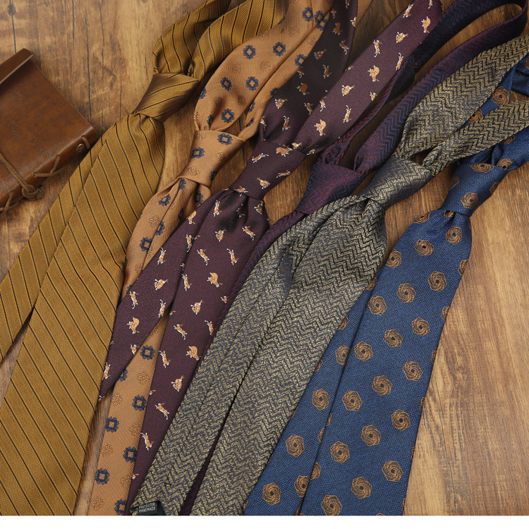 남자 타이 레트로 다크 레드 패턴 영국 8CM 원피스 전문 비즈니스 손 스트라이프 웨딩 스테이지 골드스토어 가기