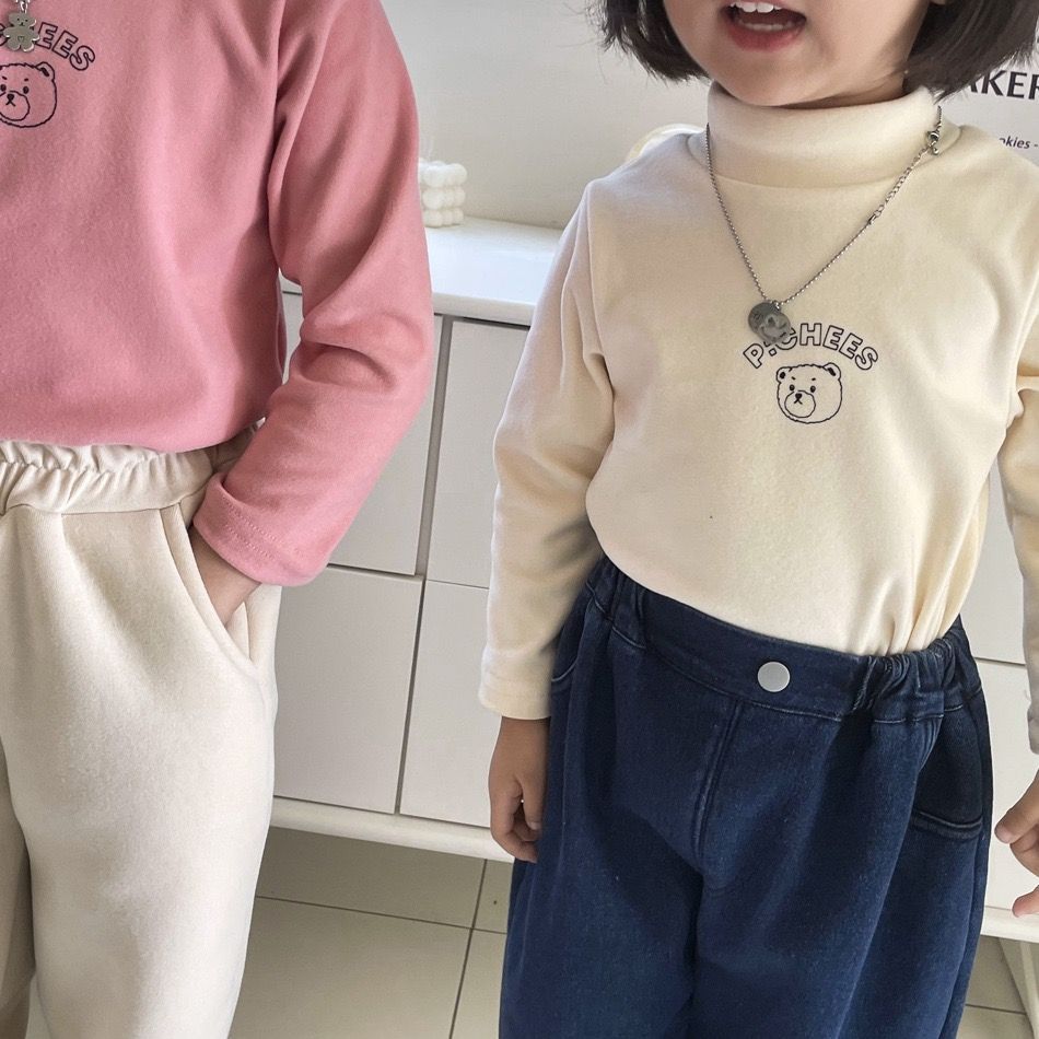 가을과 겨울에 소년 소녀를위한 어린이 양면 바닥 셔츠, 반 높은 칼라가 두꺼운 외국식 아기 겨울 의류 0160A013스토어 가기