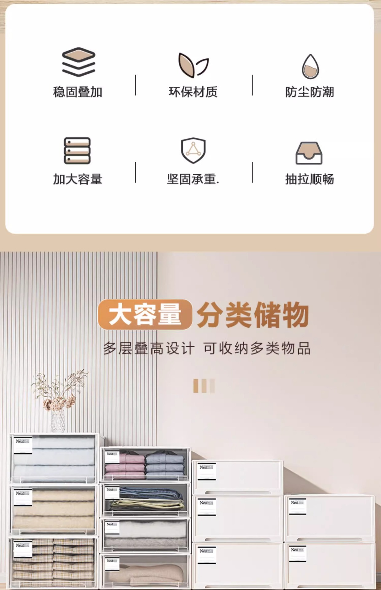 Xingyou 저장 상자 서랍 유형 플라스틱 대용량 속옷 보관 상자 옷 주최자 옷장 보관 상자