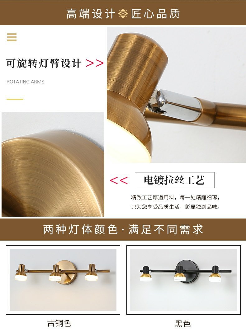 아메리칸 스타일 간단한 올 매치 미러 헤드 라이트 Led 욕실 욕실 거울 캐비닛 벽 램프 드레싱 테이블 메이크업 램프 펀치 무료스토어 가기