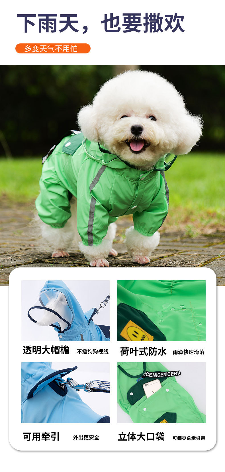 더펑펫라이프 도매 애완견 패션 방수 방수성 4다리 우비 테디 비숑 의류에 적합스토어 가기