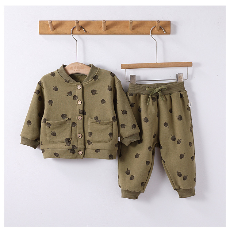 2025 유럽 및 미국 스타일 남아용 플리스 가을옷 유아용 분리형 세트 여아용 가을 겨울 바지 아기 가을 세트