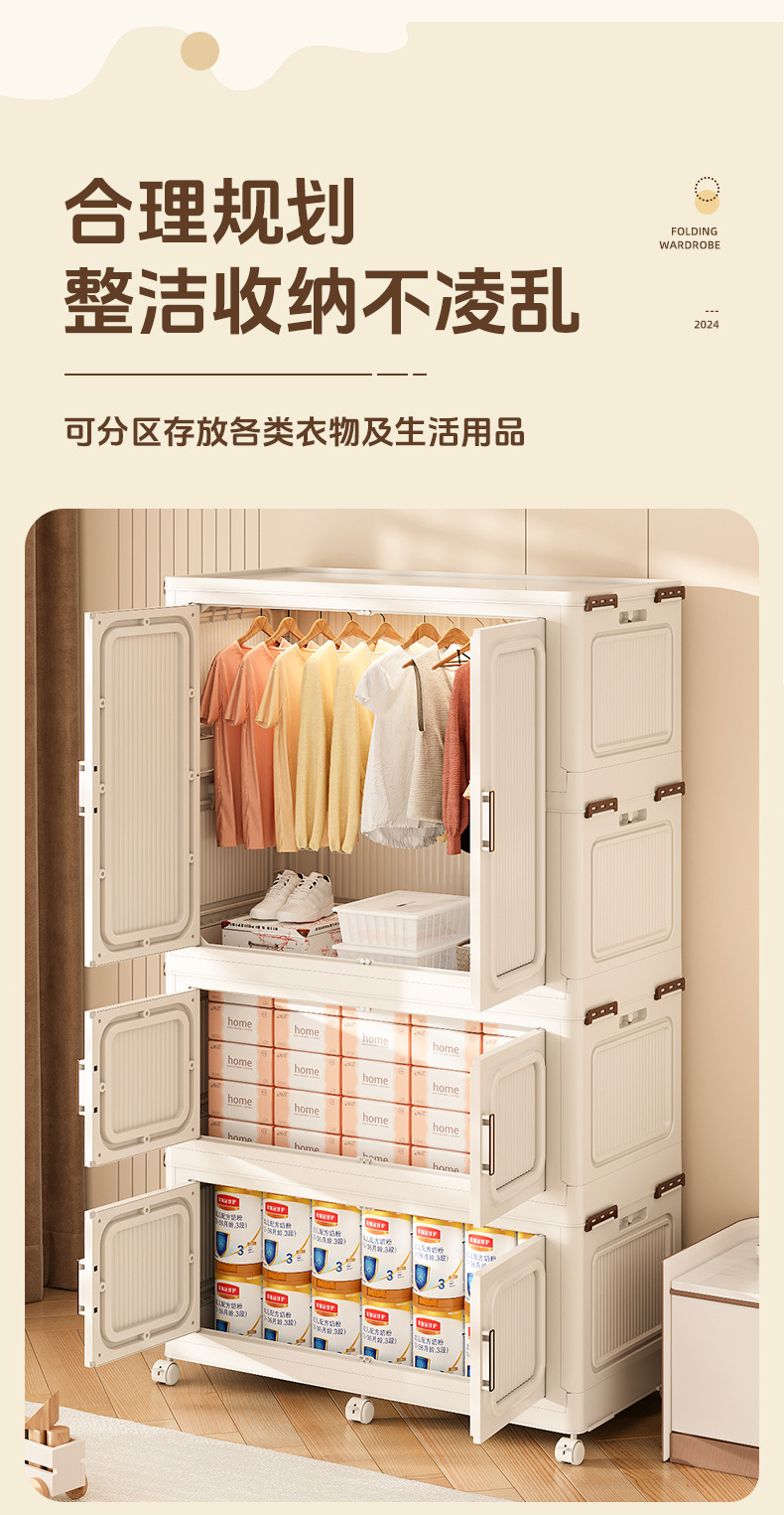 캐비닛 도어 보관 캐비닛이있는 대형 아기 옷의 다층 배치 어린이 옷장 접이식 보관 캐비닛