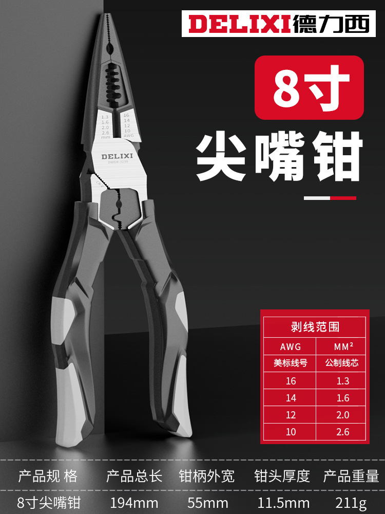 • Delixi 업그레이드 나인인원 [노력 절약 +70%] 8.5inch 니들 노즈 플라이어