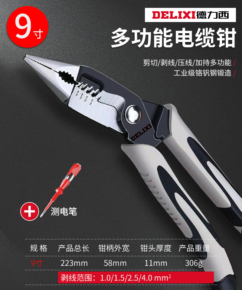 • [6가지 기능 세트] 9inch 케이블 플라이어 산업용 등급 + 전원 공급 펜