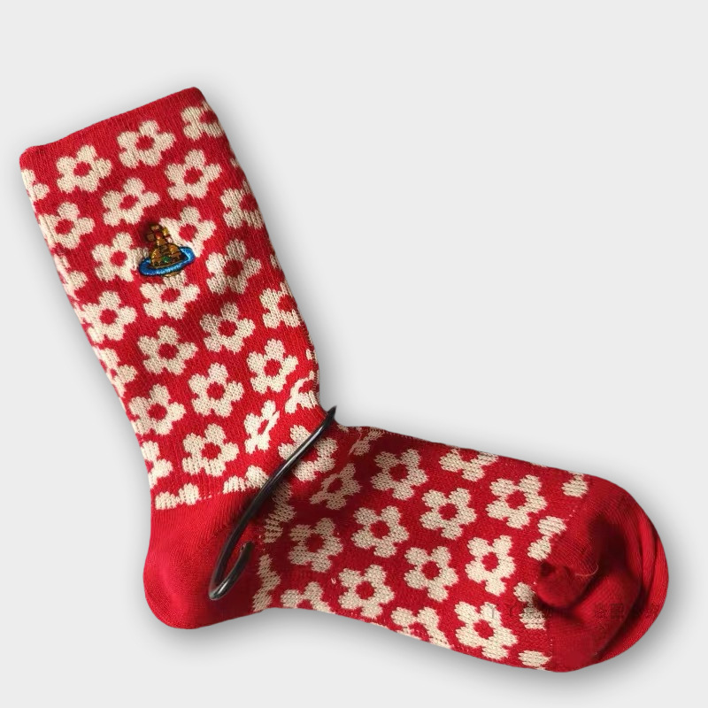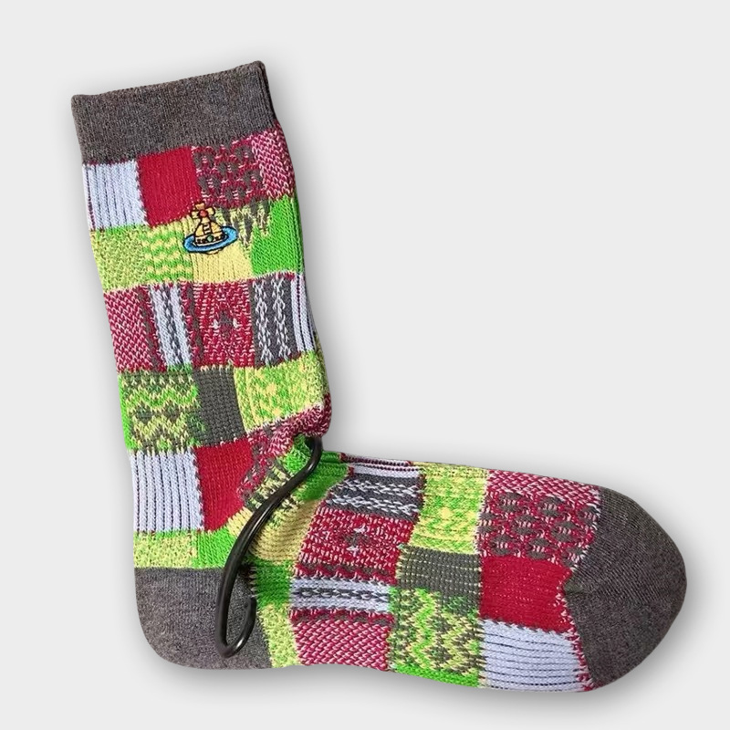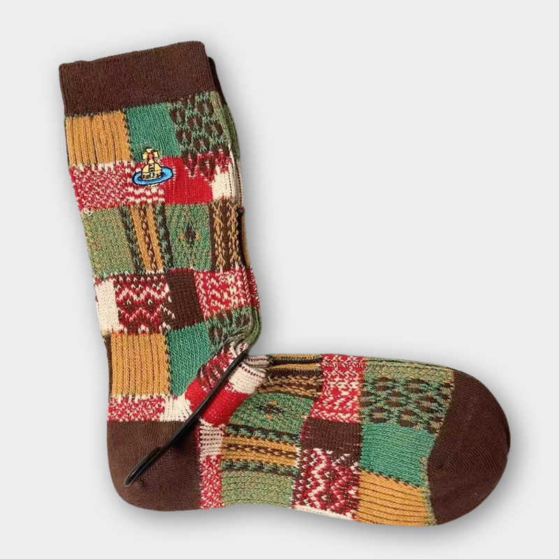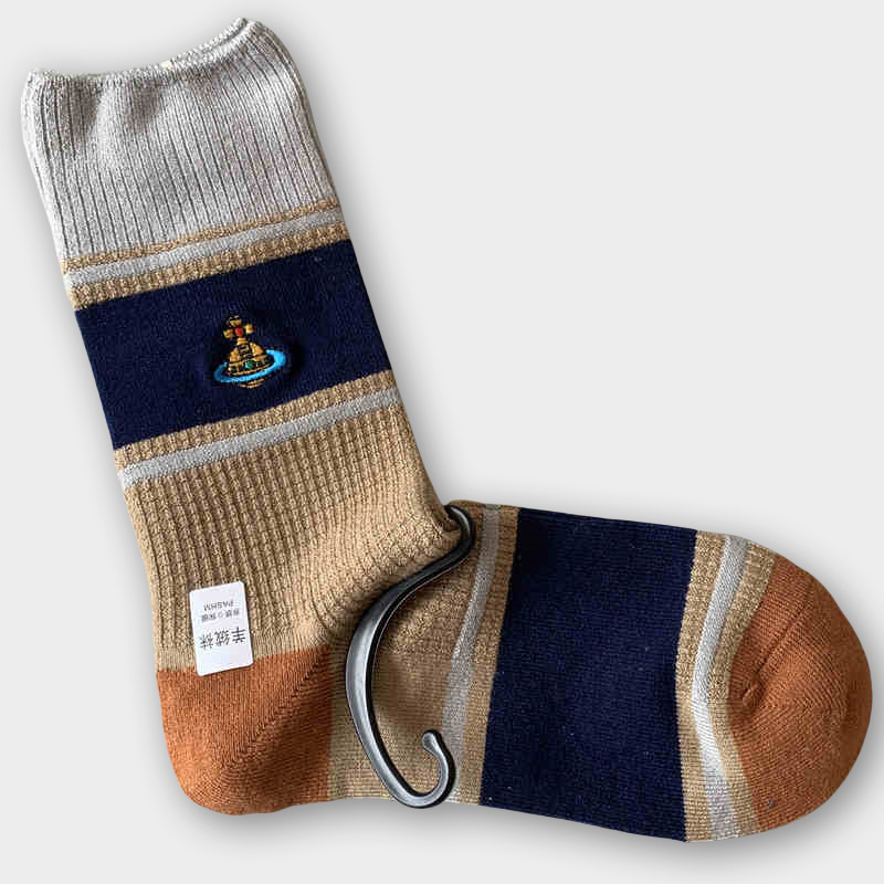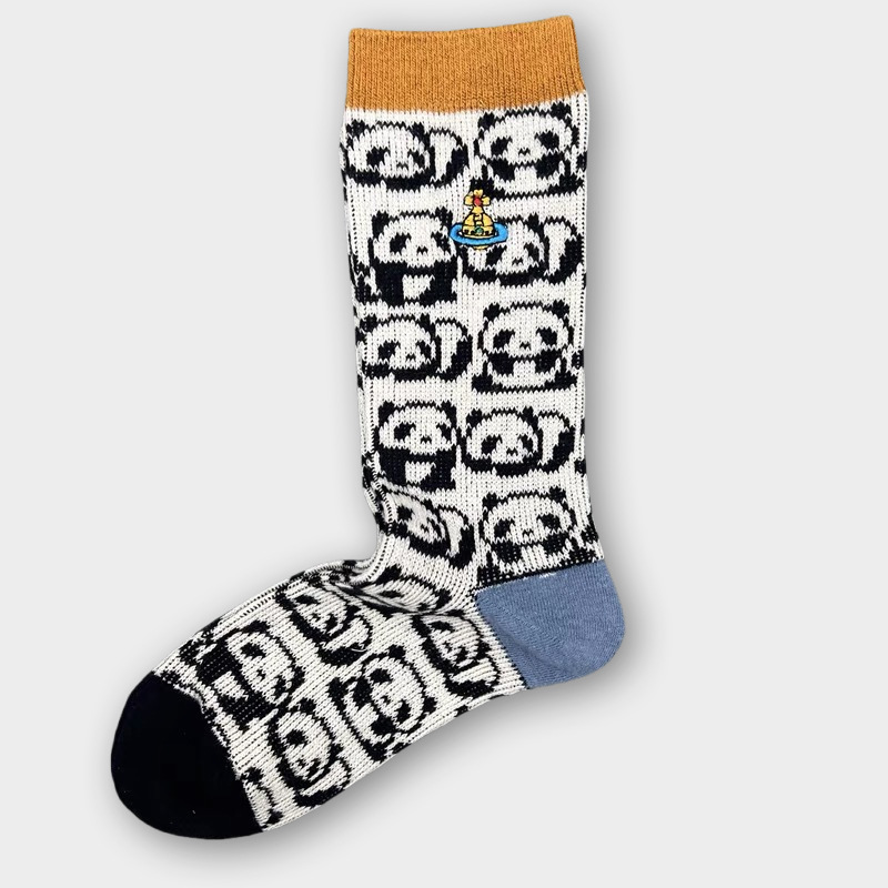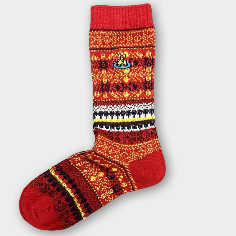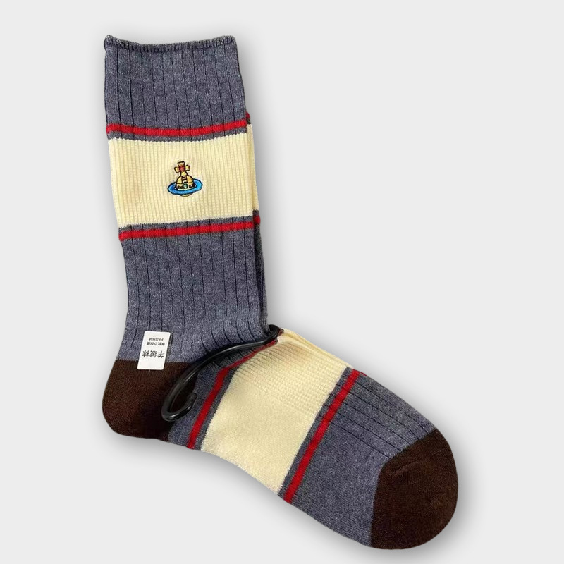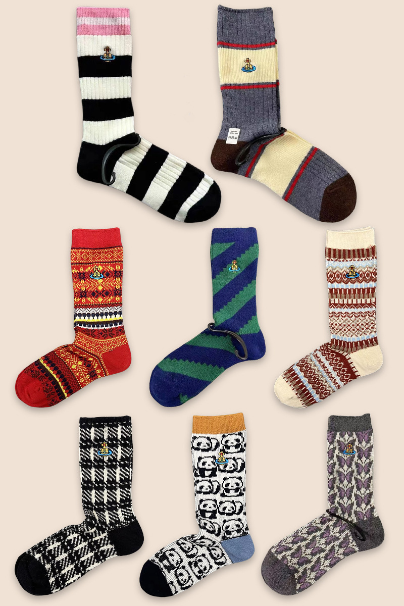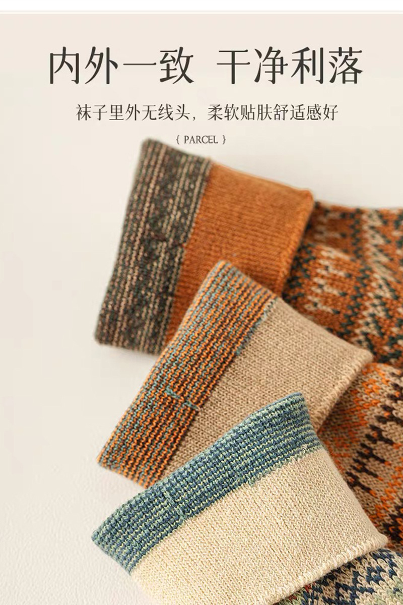 일본식 자수 여성 중목 양말 이중 바늘 두꺼운 보온 면 양말 레트로 스타일