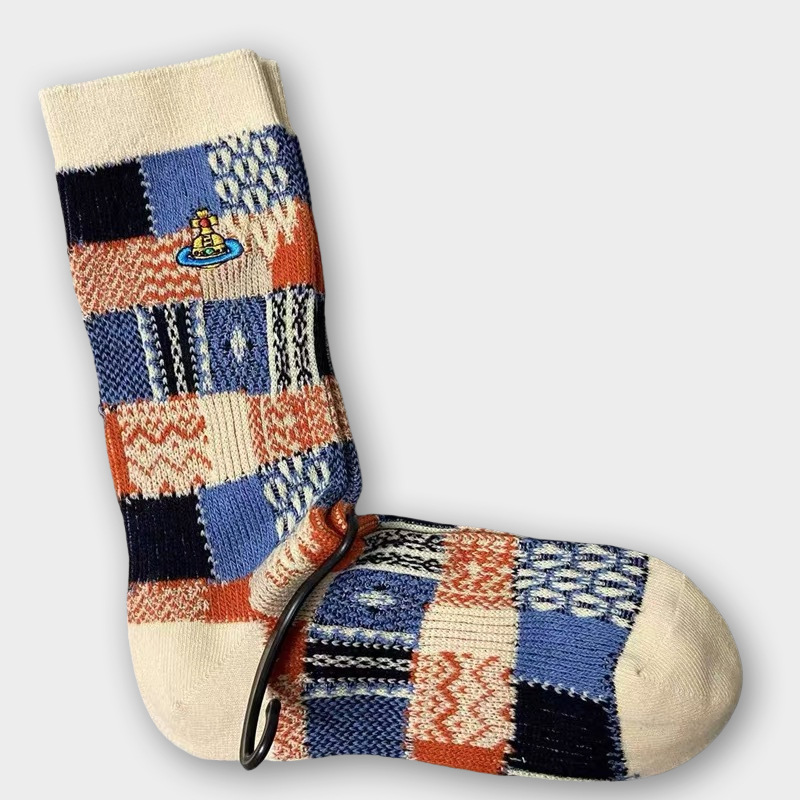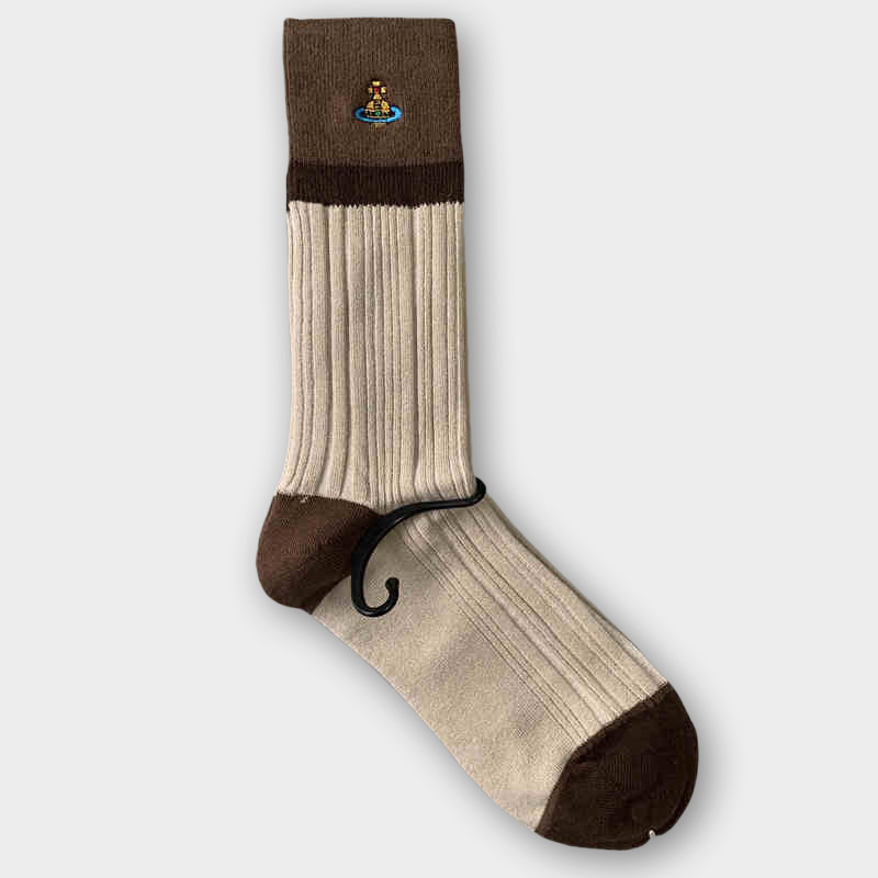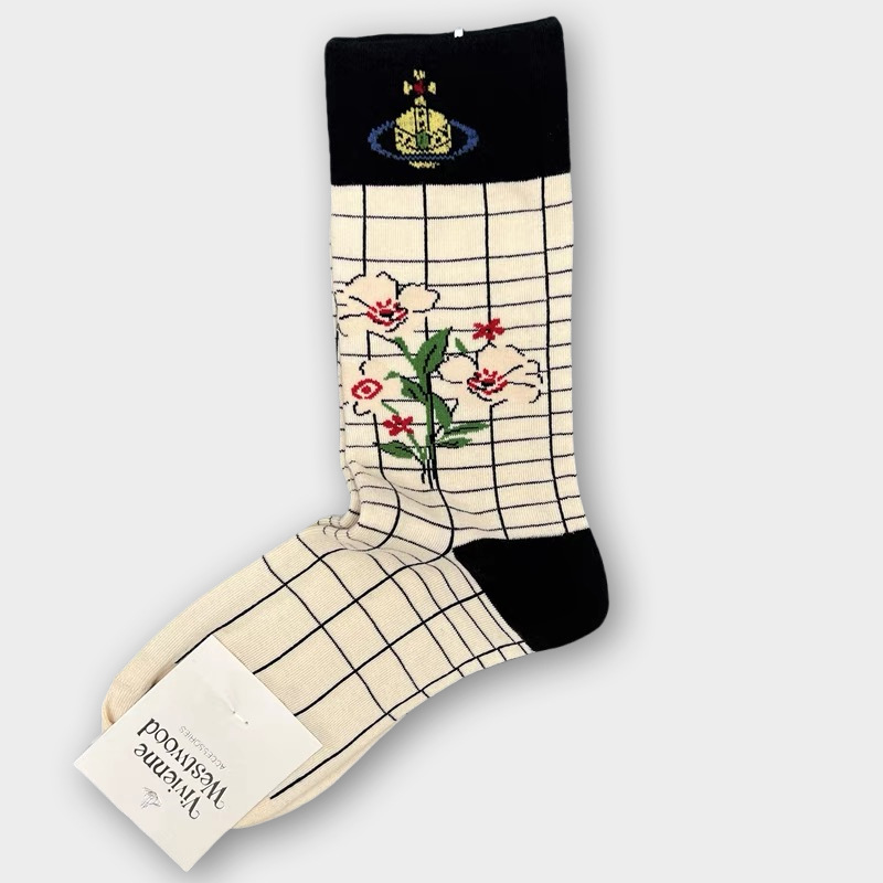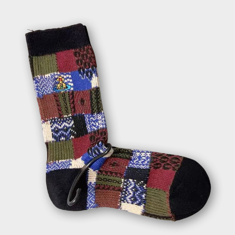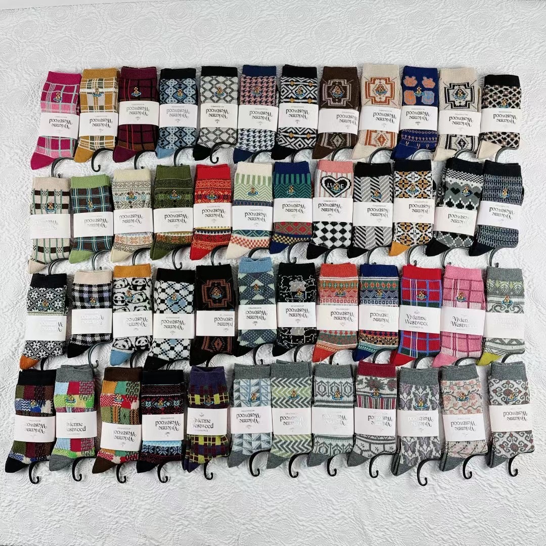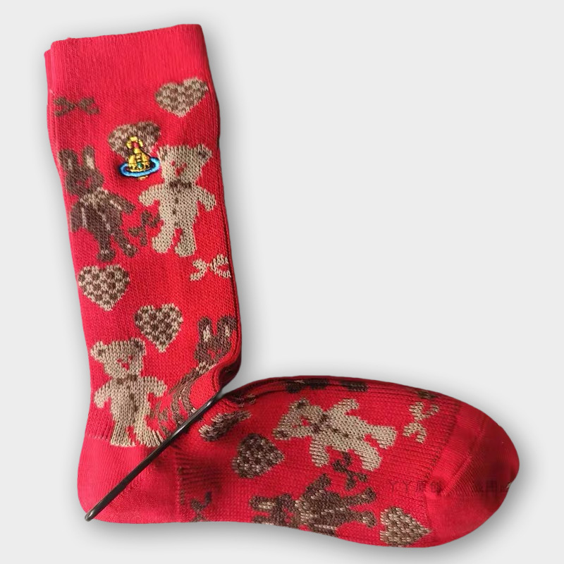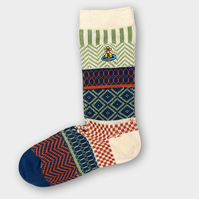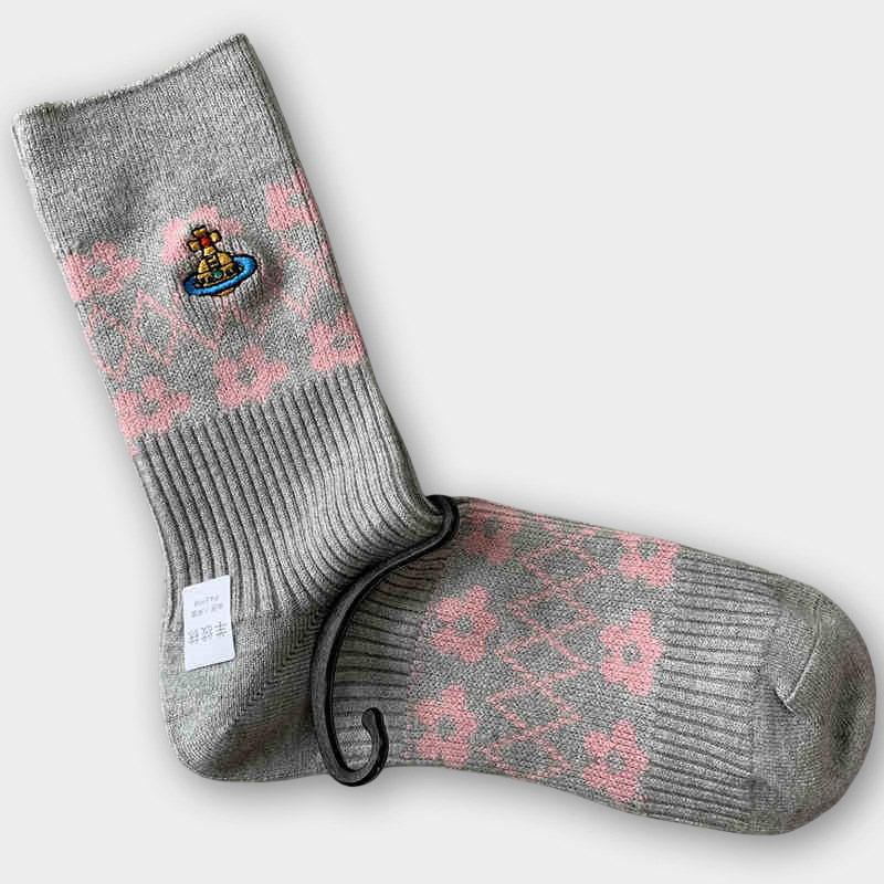 일본식 자수 여성 중목 양말 이중 바늘 두꺼운 보온 면 양말 레트로 스타일