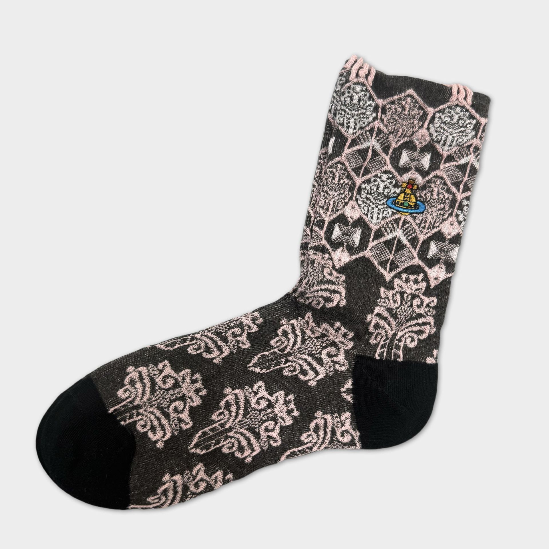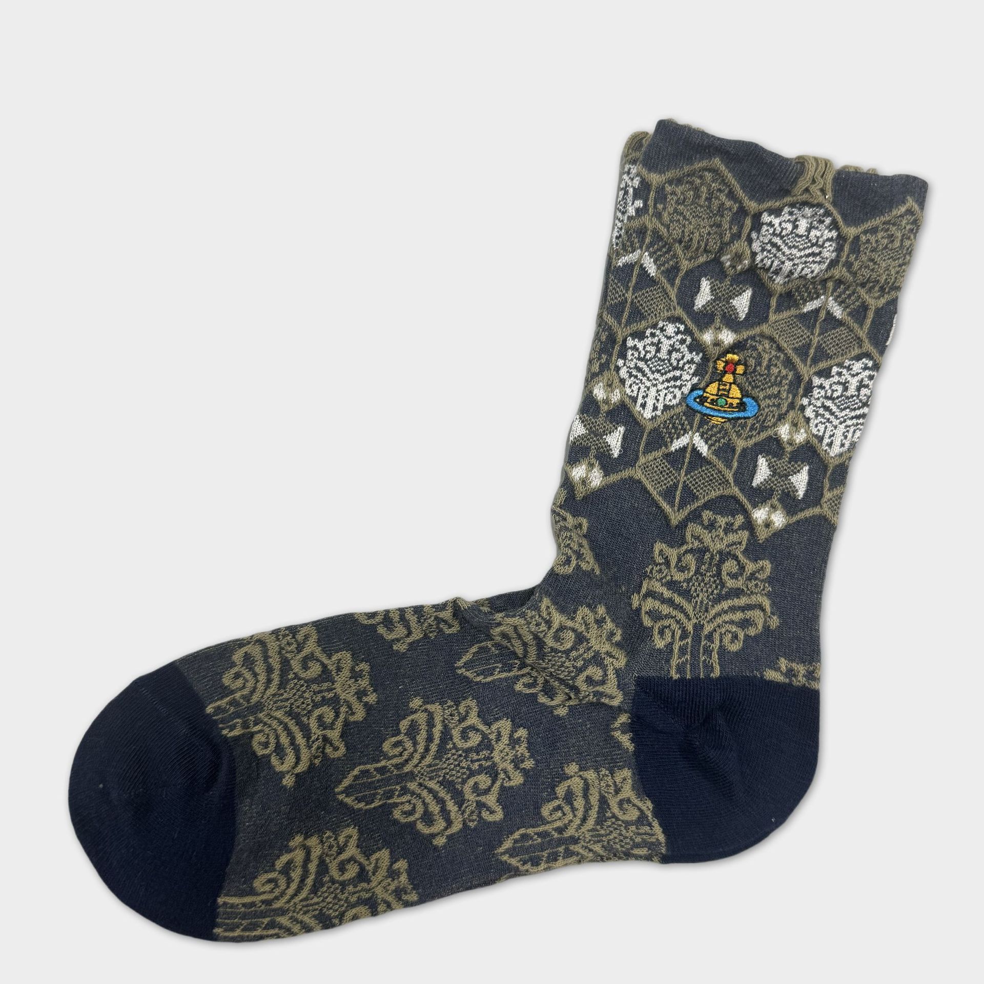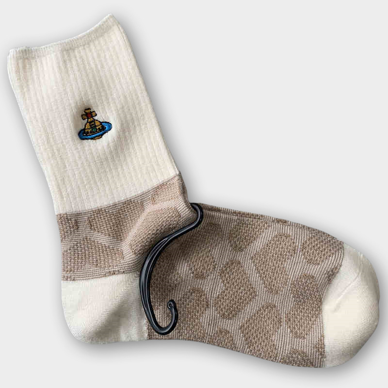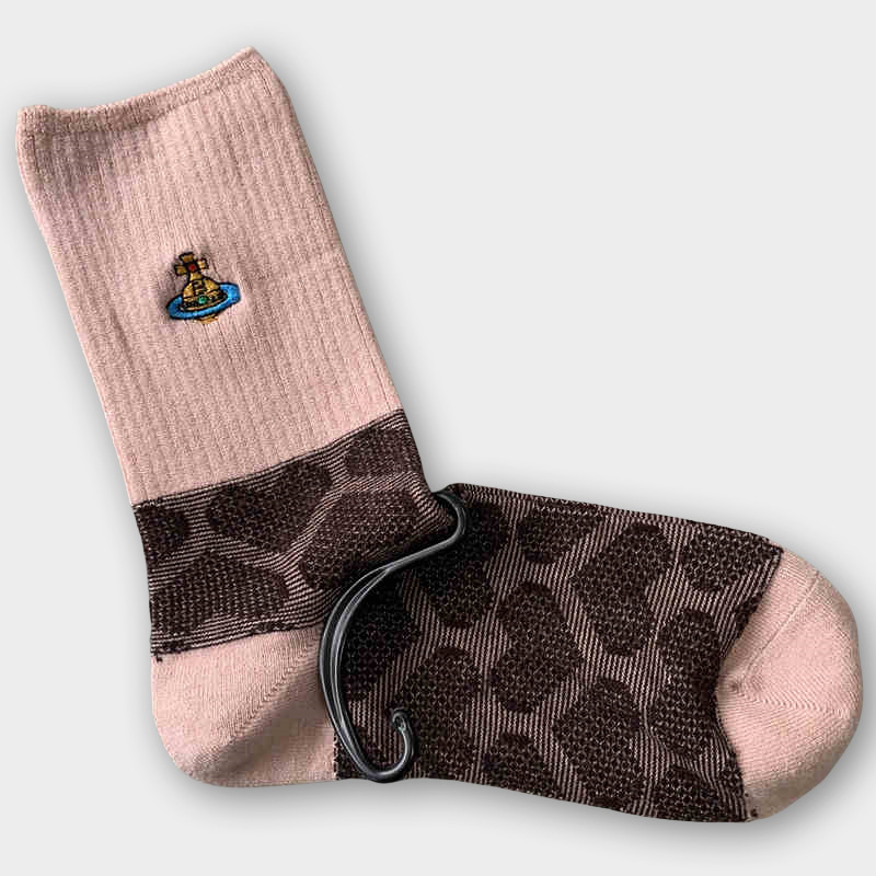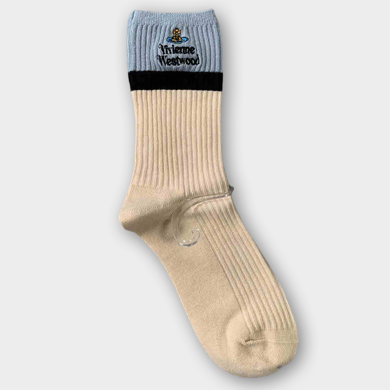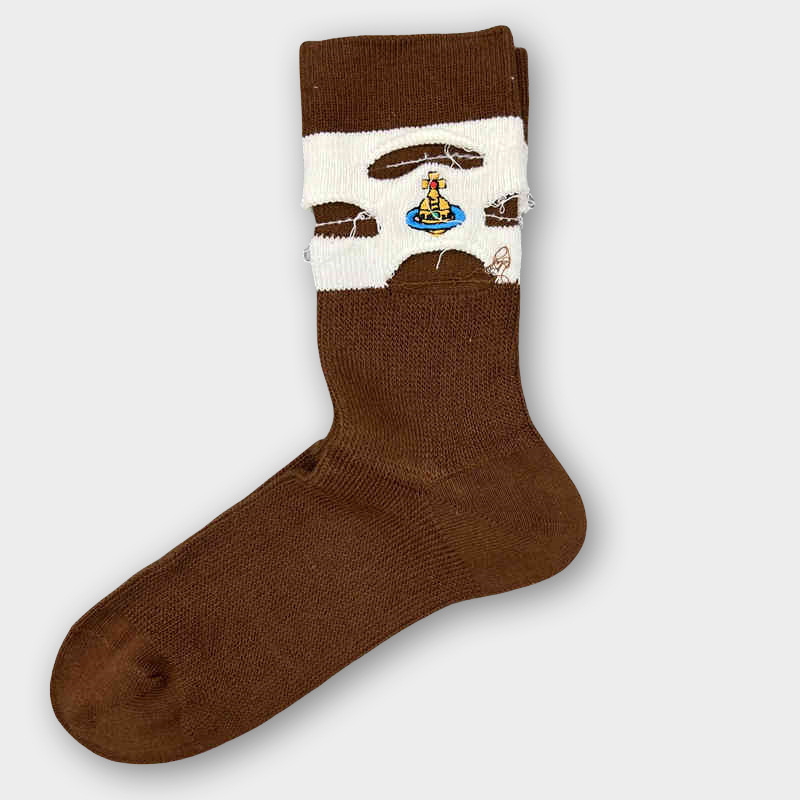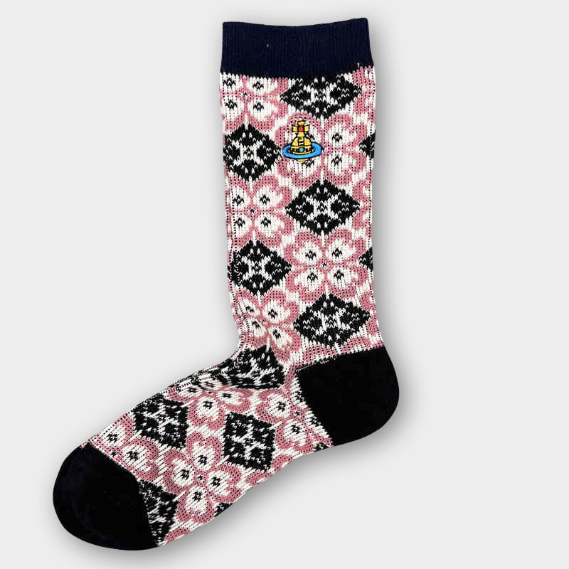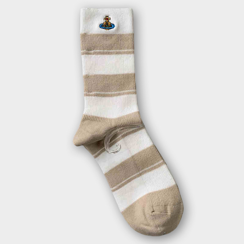 일본식 자수 여성 중목 양말 이중 바늘 두꺼운 보온 면 양말 레트로 스타일