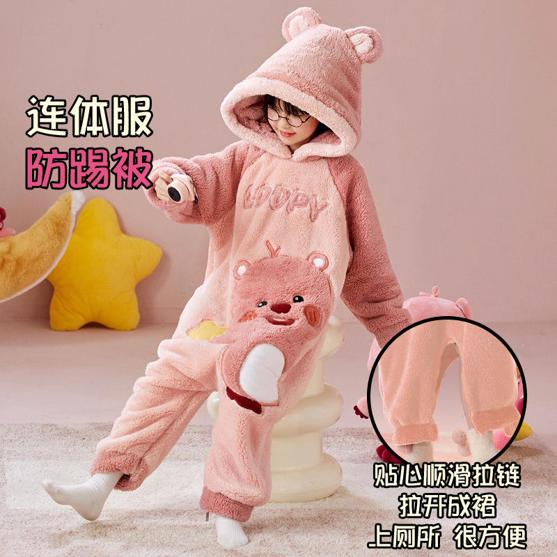 어린이 결합 된 잠옷 가을과 겨울 플란넬 소녀 아기 산호 양털 어머니-딸 부모-자식 침낭 홈 의류 12스토어 가기