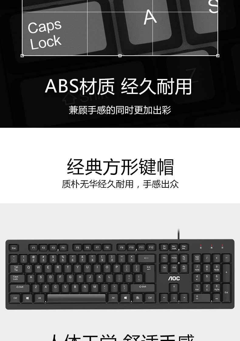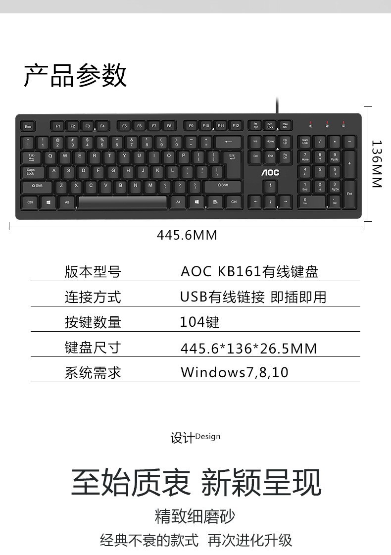 TPV AOC KB161 유선 단일 키보드 USB 단위 사무실 올인원 데스크톱 비즈니스 오피스 키보드 도매스토어 가기