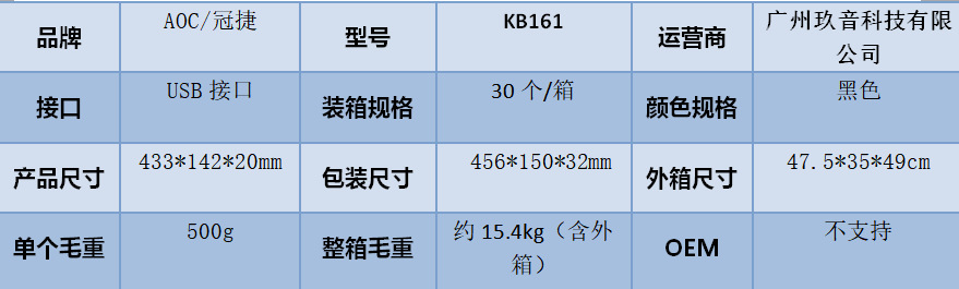 TPV AOC KB161 유선 단일 키보드 USB 단위 사무실 올인원 데스크톱 비즈니스 오피스 키보드 도매
