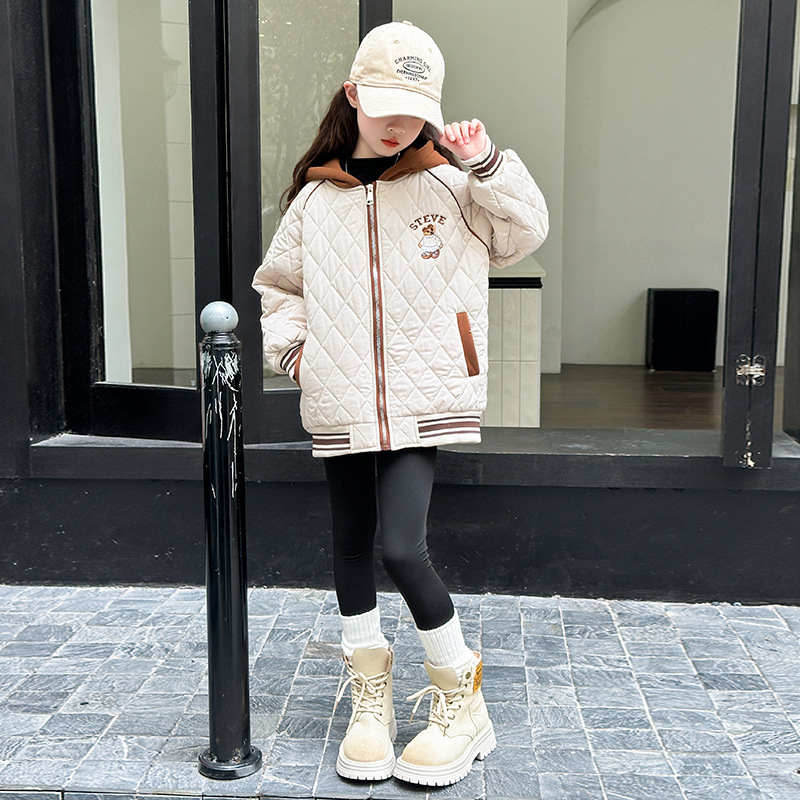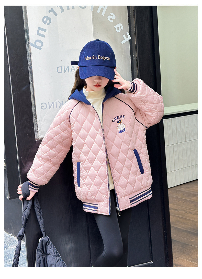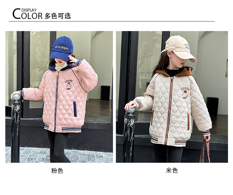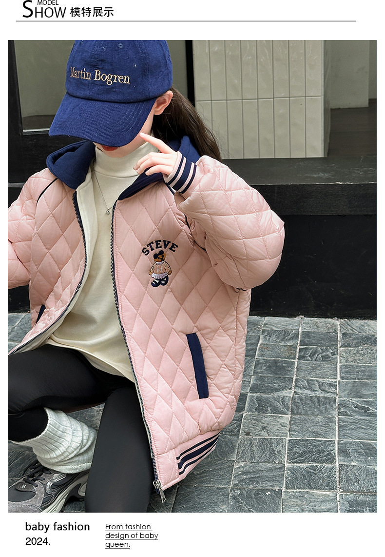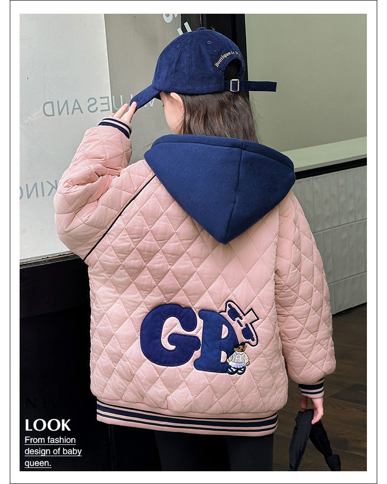소녀 플러스 벨벳 코트 가을과 겨울 어린이 야구 재킷면 패딩 코트 2024 새로운 서양식 중대형 아동면 패딩 재킷 겨울스토어 가기